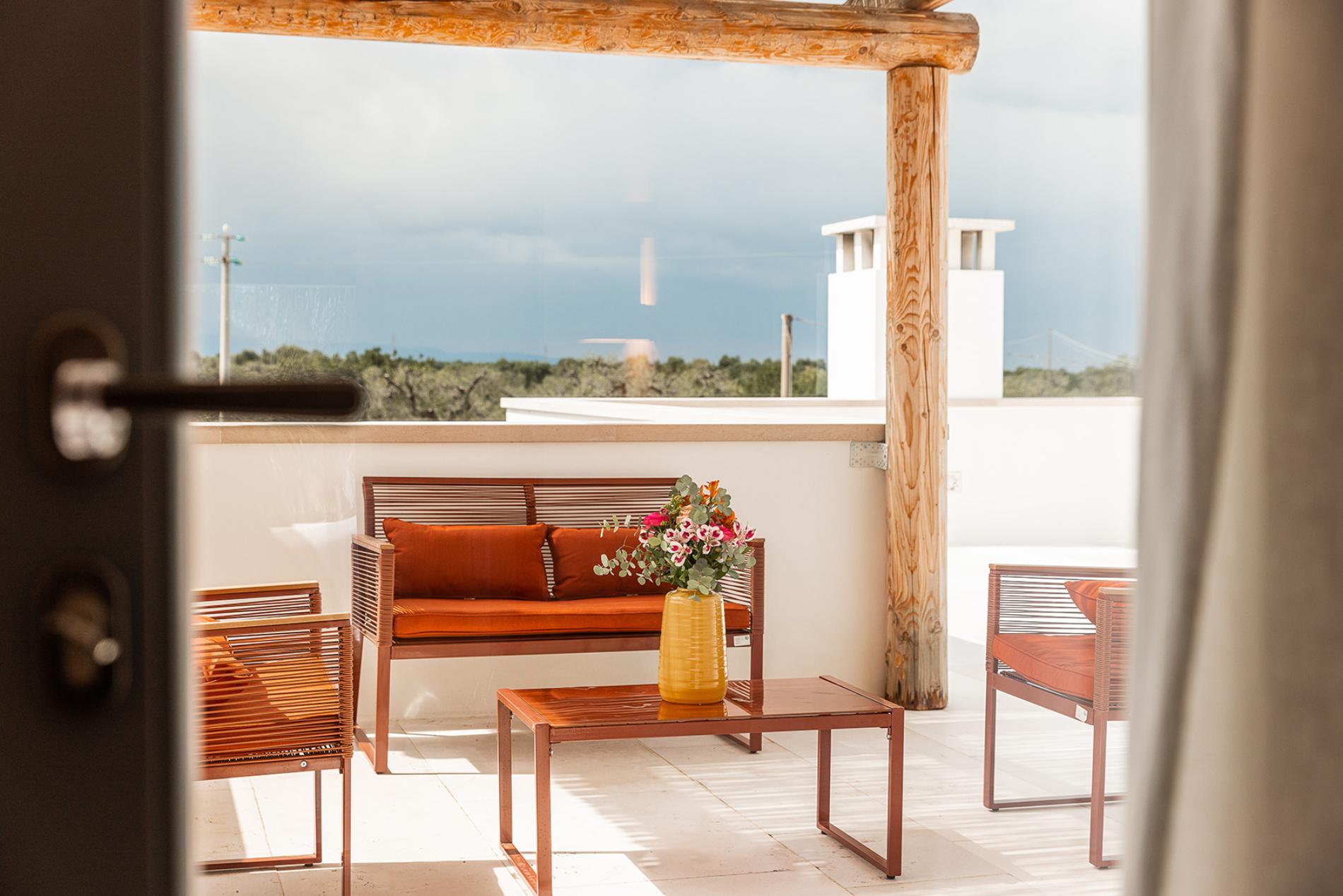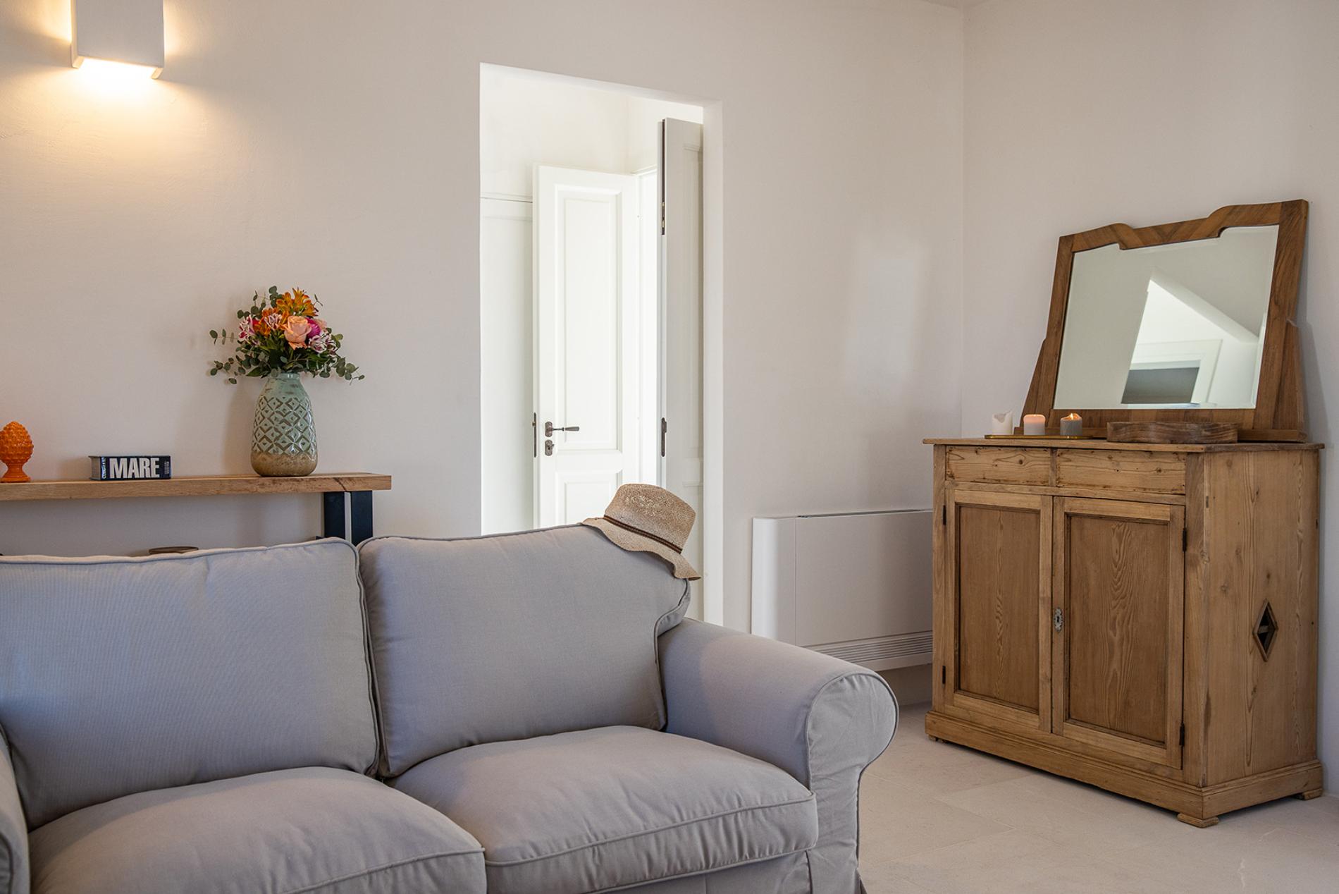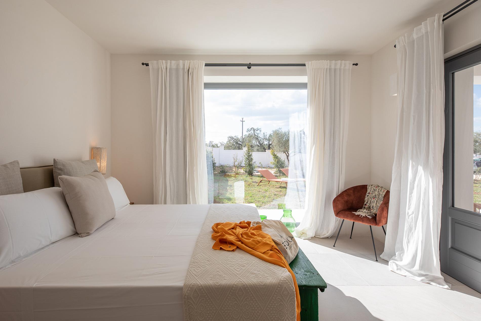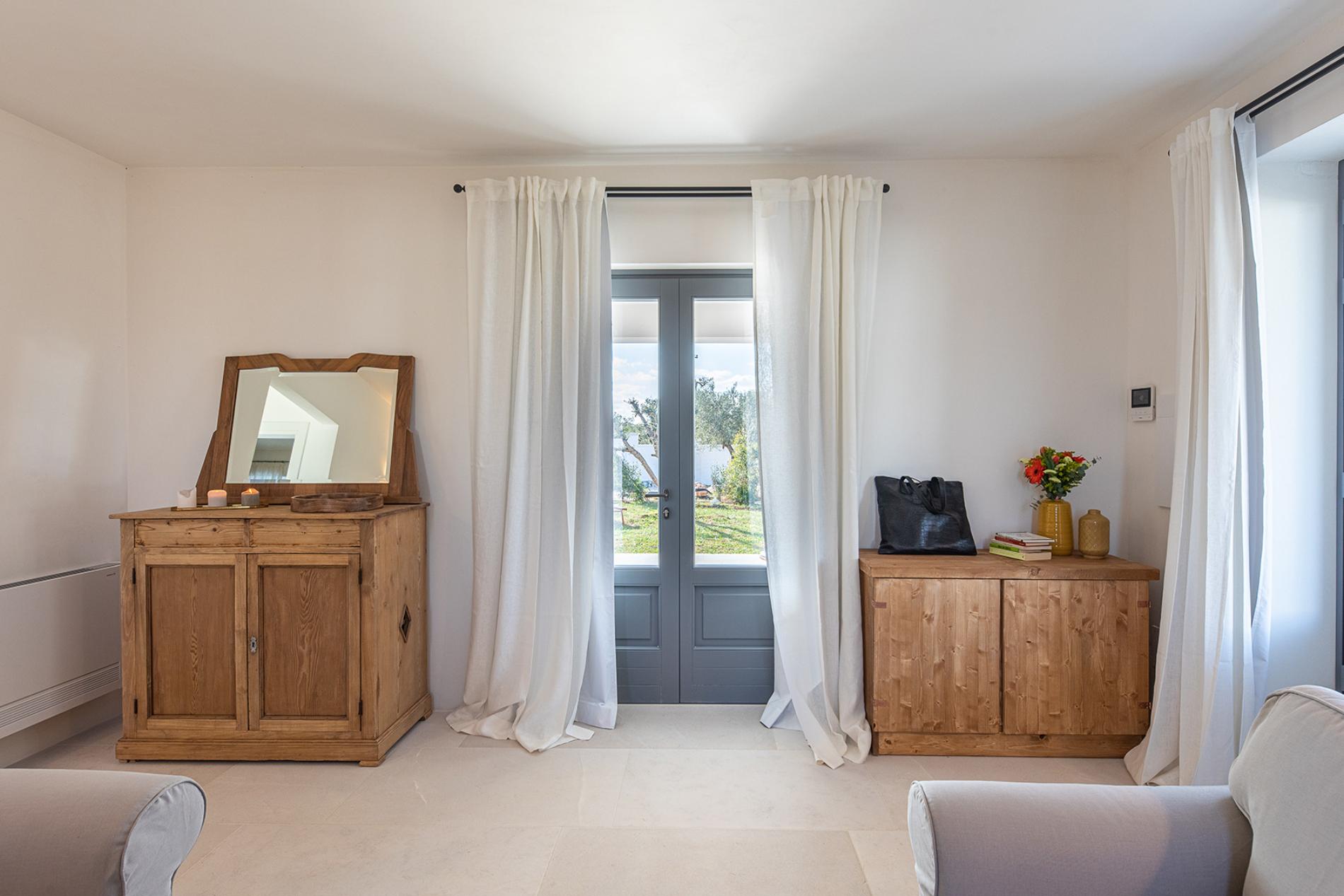 The Lamia room embodies the timeless elegance of Puglia. With its exposed tuff walls and original beamed ceilings, this room conveys a sense of authenticity and refinement.