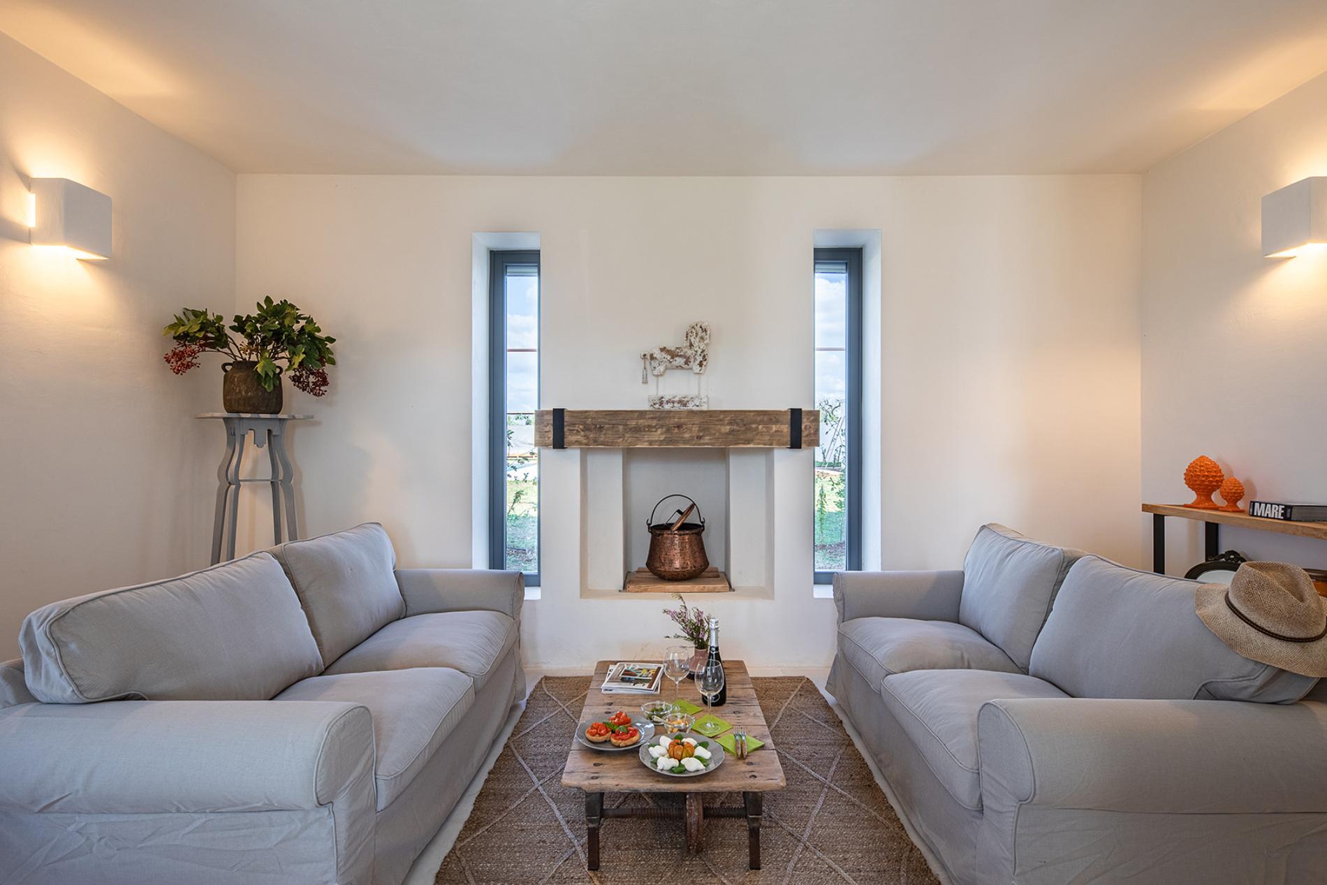 The kitchen, modern and very well equipped, is the ideal place to try your hand at preparing some of the many local recipes. The living area is the ideal place to relax and, who knows, light the beautiful fireplace on cool summer evenings.
