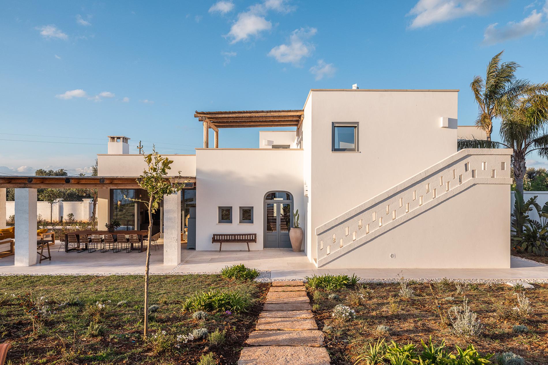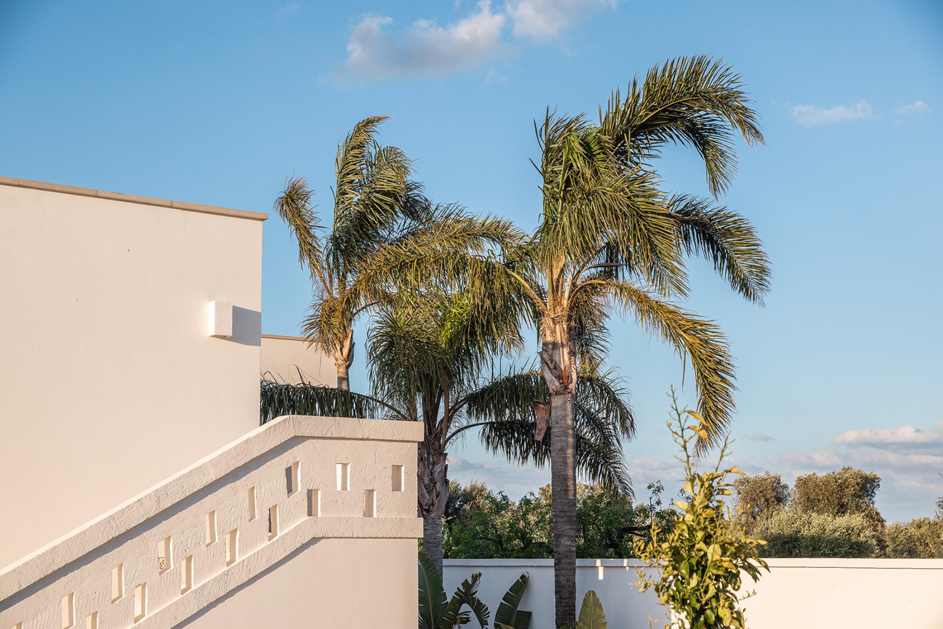 The white walls give the villa a Mediterranean and romantic atmosphere, especially when tinged with orange at sunset.