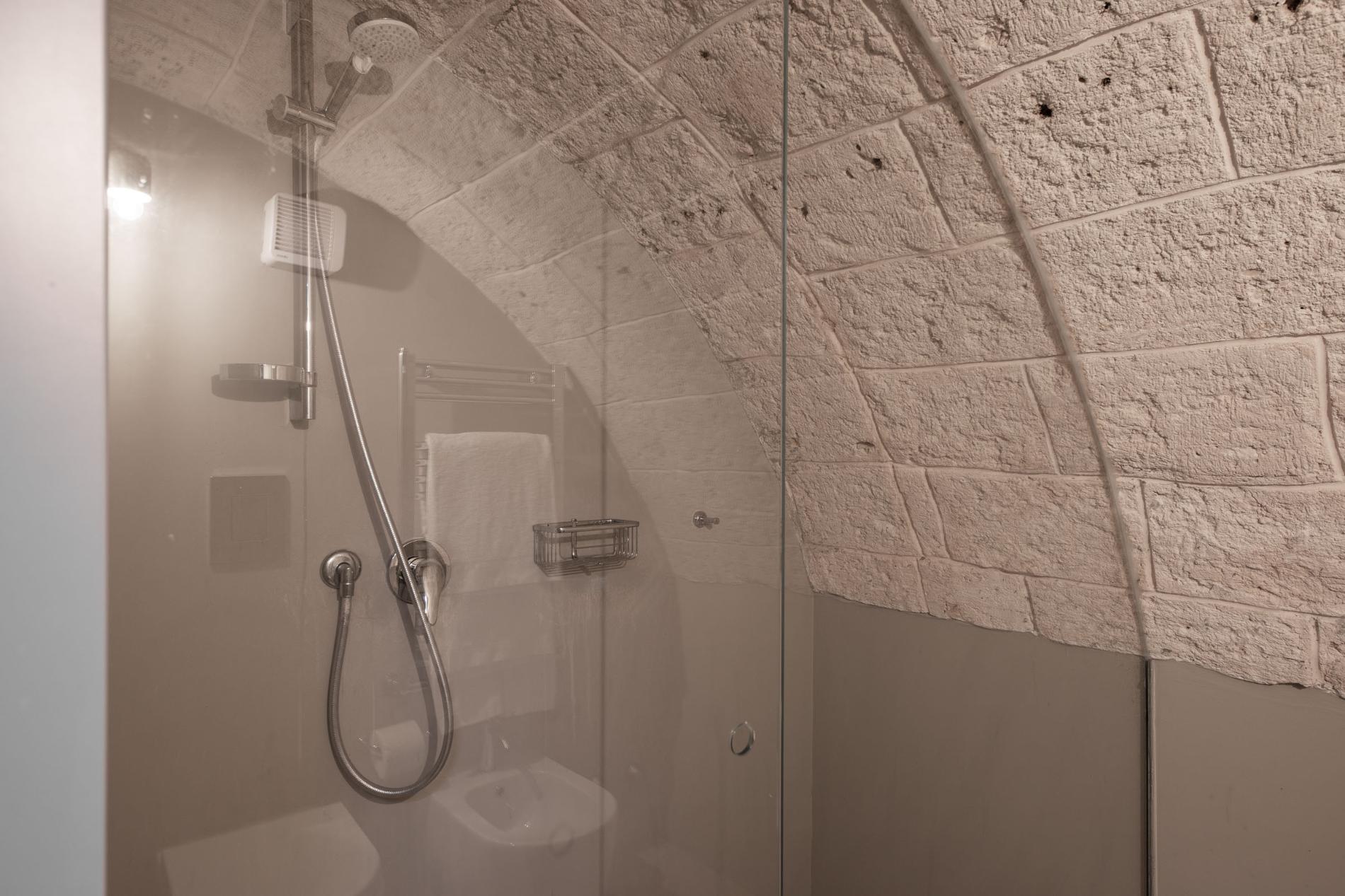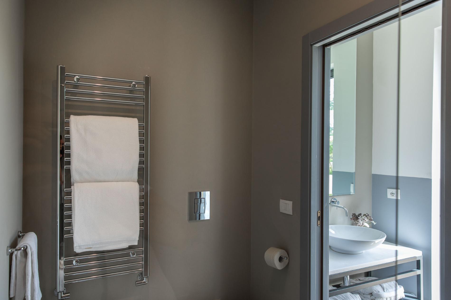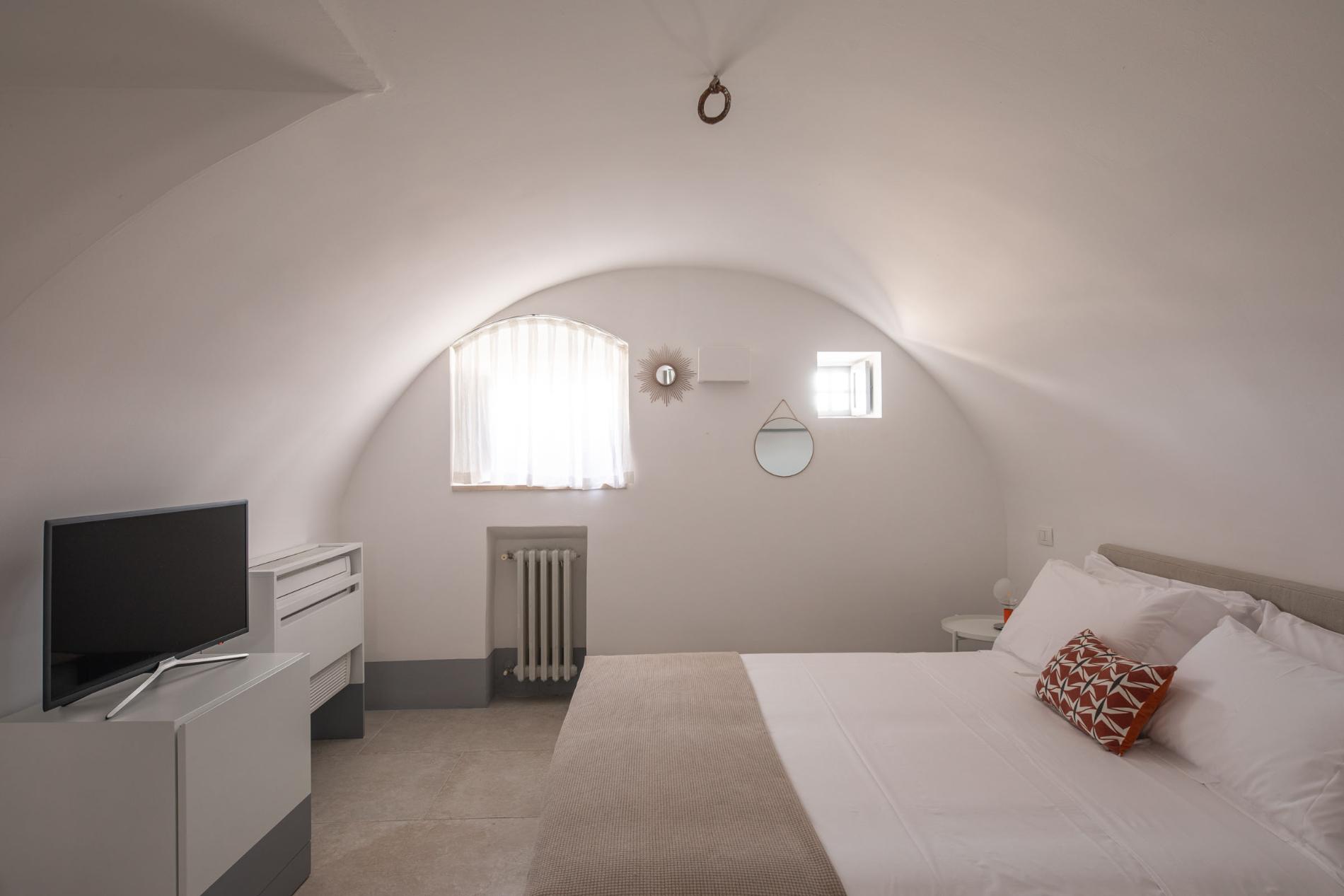 The Masseria has 14 bedrooms, all located in the central building while offering privacy, soundproofing, and ample space. Rooms are hypoallergenic featuring high-quality mattresses and pillows, as well as skin-friendly bedding, towels and linen. Each room offers a different view: garden view, orchard, countryside, and/or sea views.