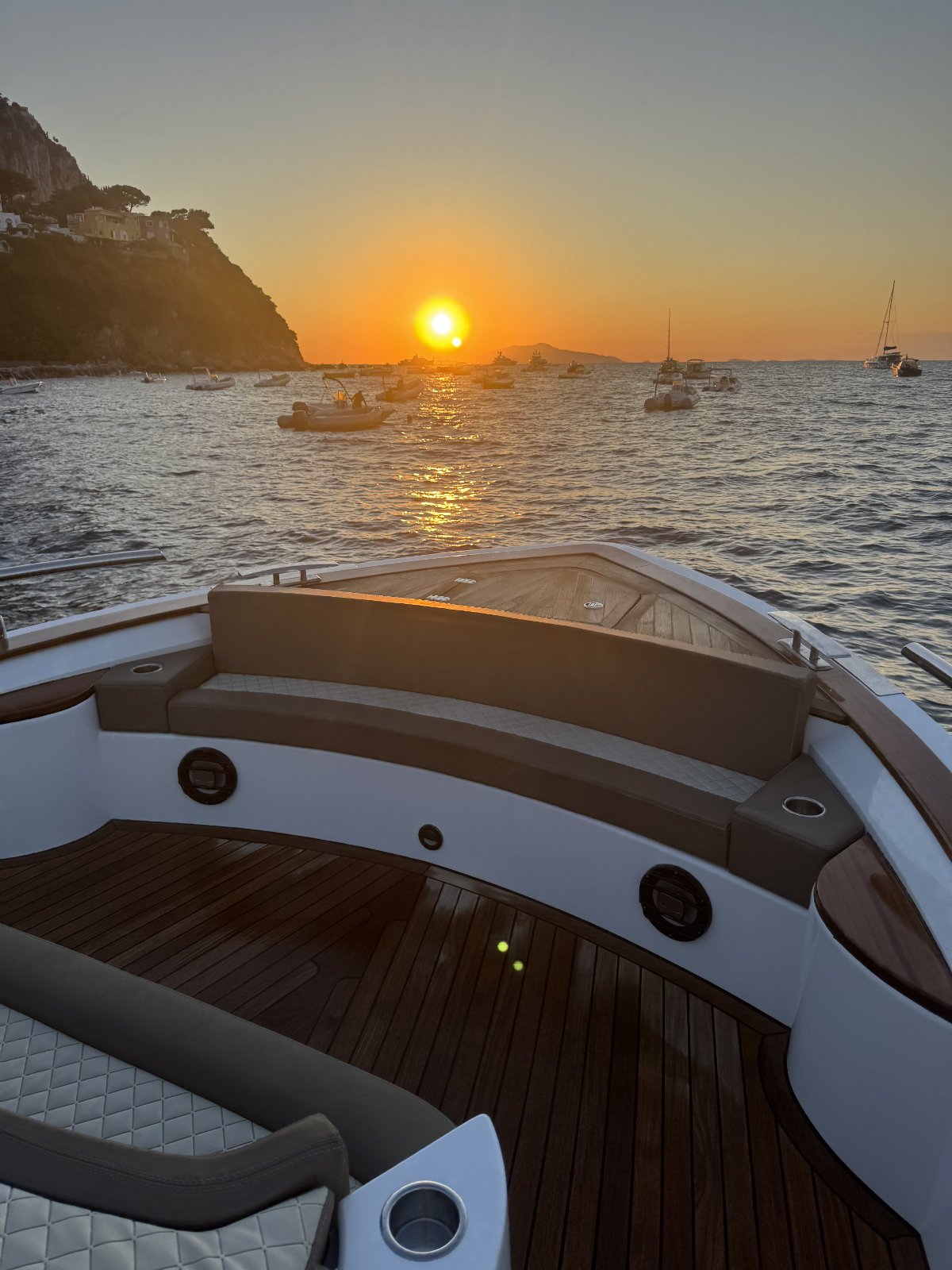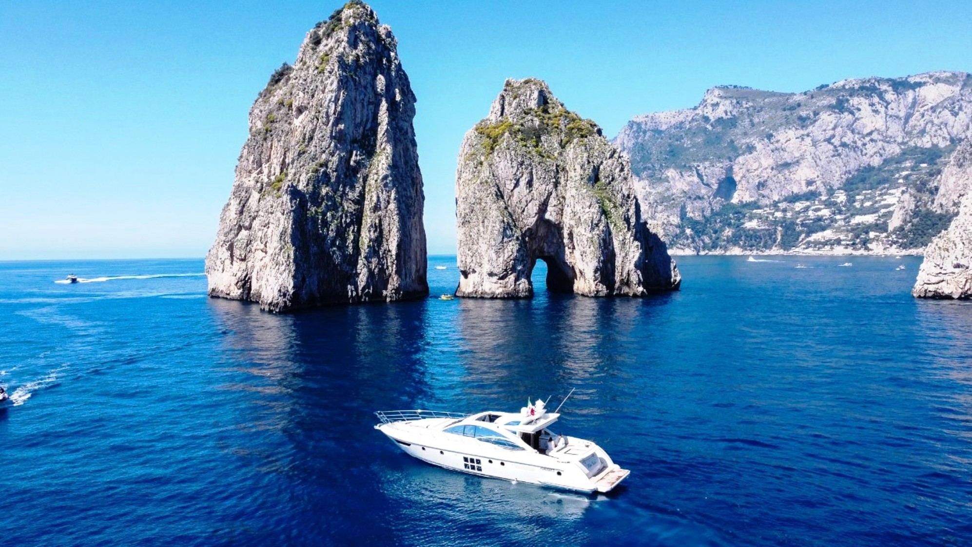 While navigating in circle around Capri you will enjoy the full majesty of the Island, discovering the Grottoes, the Faraglioni Rocks, the famous bays where the Mega Yachts are mooring.