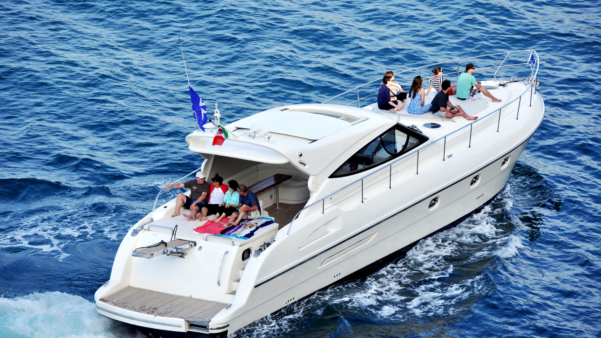 The The smallest yacht is 32 feets or 10 meters and the biggest Yacht of our fleet is 62 feets or 20 meter Azimut 62s