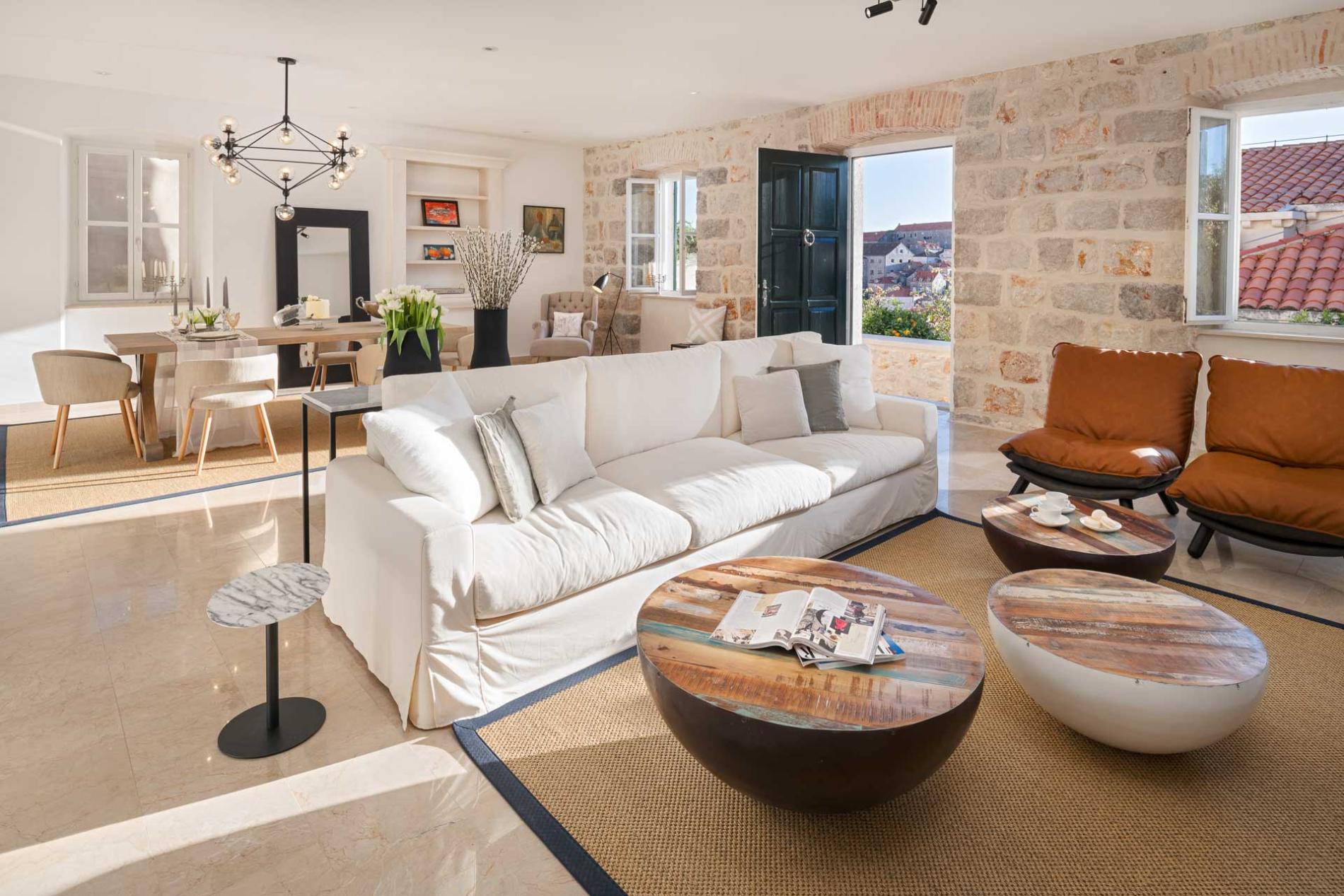 Villa Stradun spreads over four floors: the basement, the ground floor, first and the second floor. Consisting of 4 bedrooms, 4 bathrooms where of 3 of them en-suite, this Villa surrounded by powerful, centuries-old stone walls, offers complete privacy for its guests and is suitable accommodation for 8 persons.