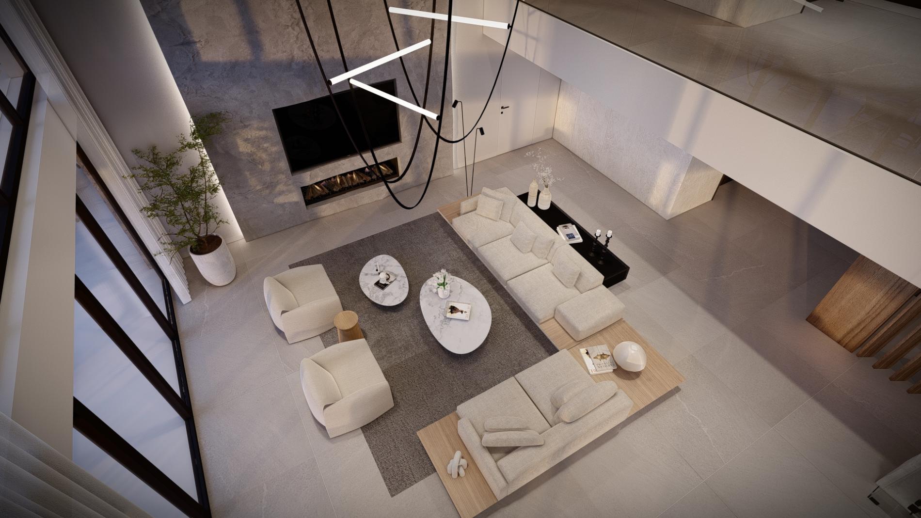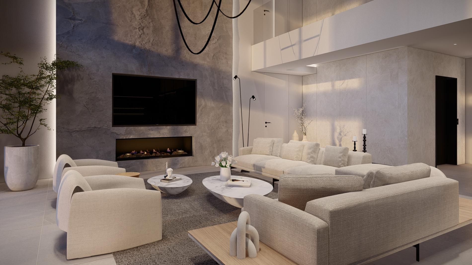 Open-concept living area with fireplace