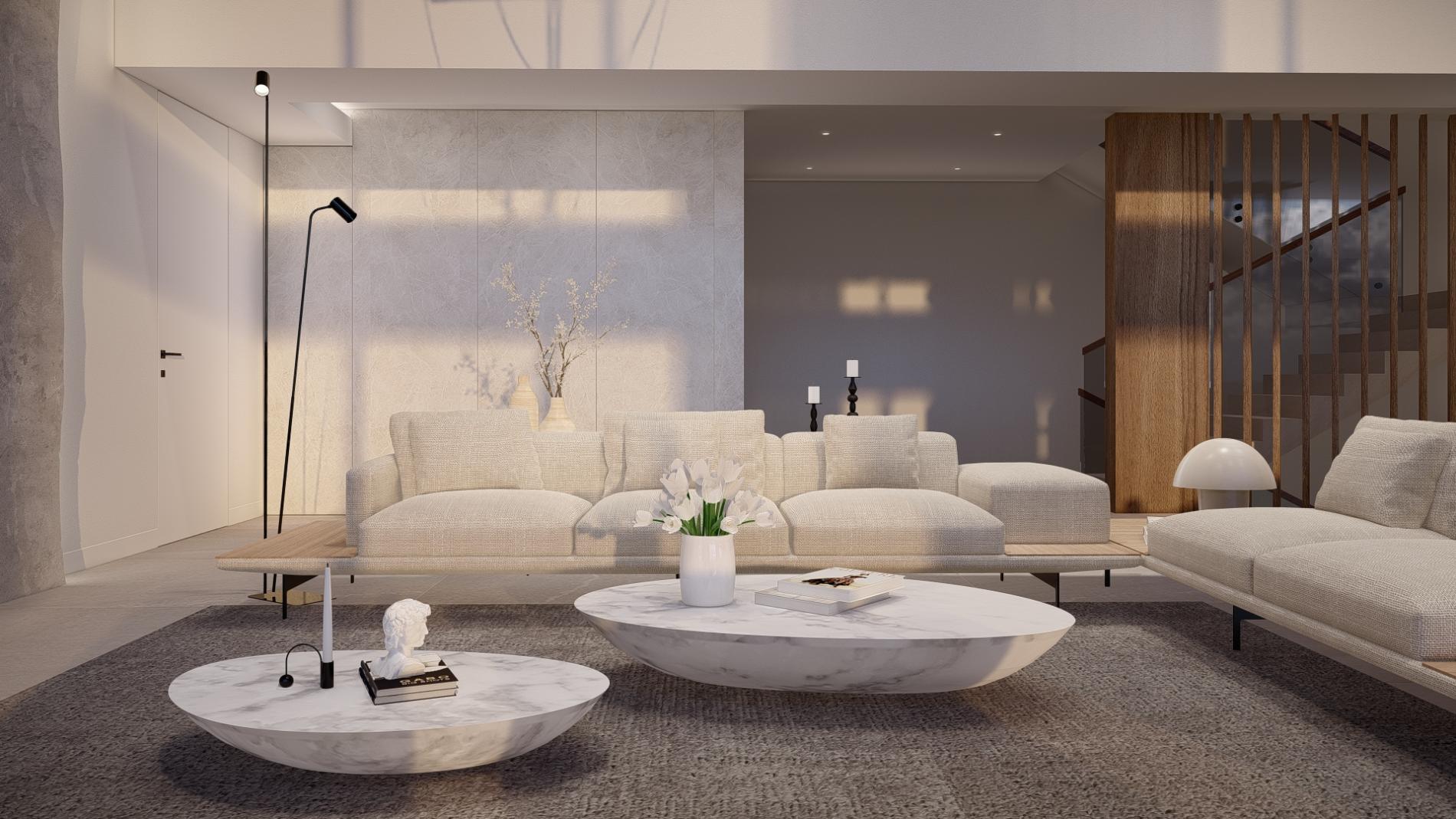 Varied seating options with coffee tables