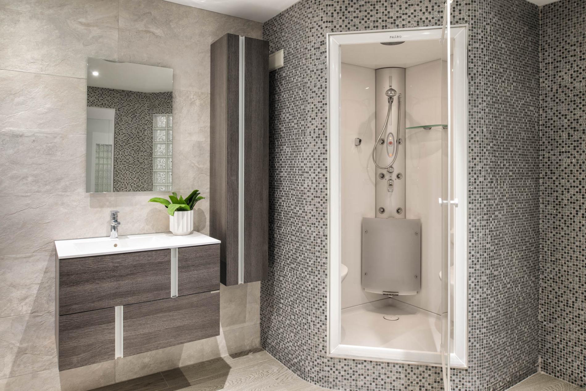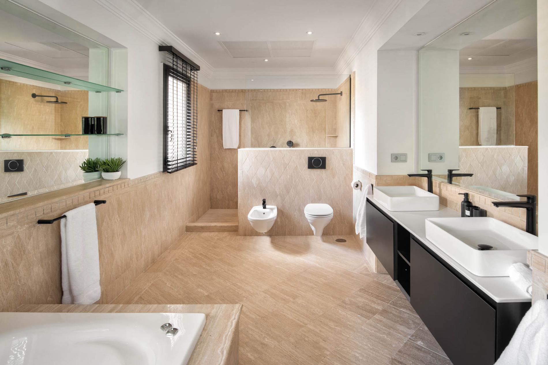 In the right wing of the ground floor, there are three ensuite bedrooms. The master bedroom, impeccably decorated like the rest of the house, has a large dressing room and a beautifully finished marble bathroom, as well as a private sundeck with more of those stunning mountain views. A small office completes this floor.