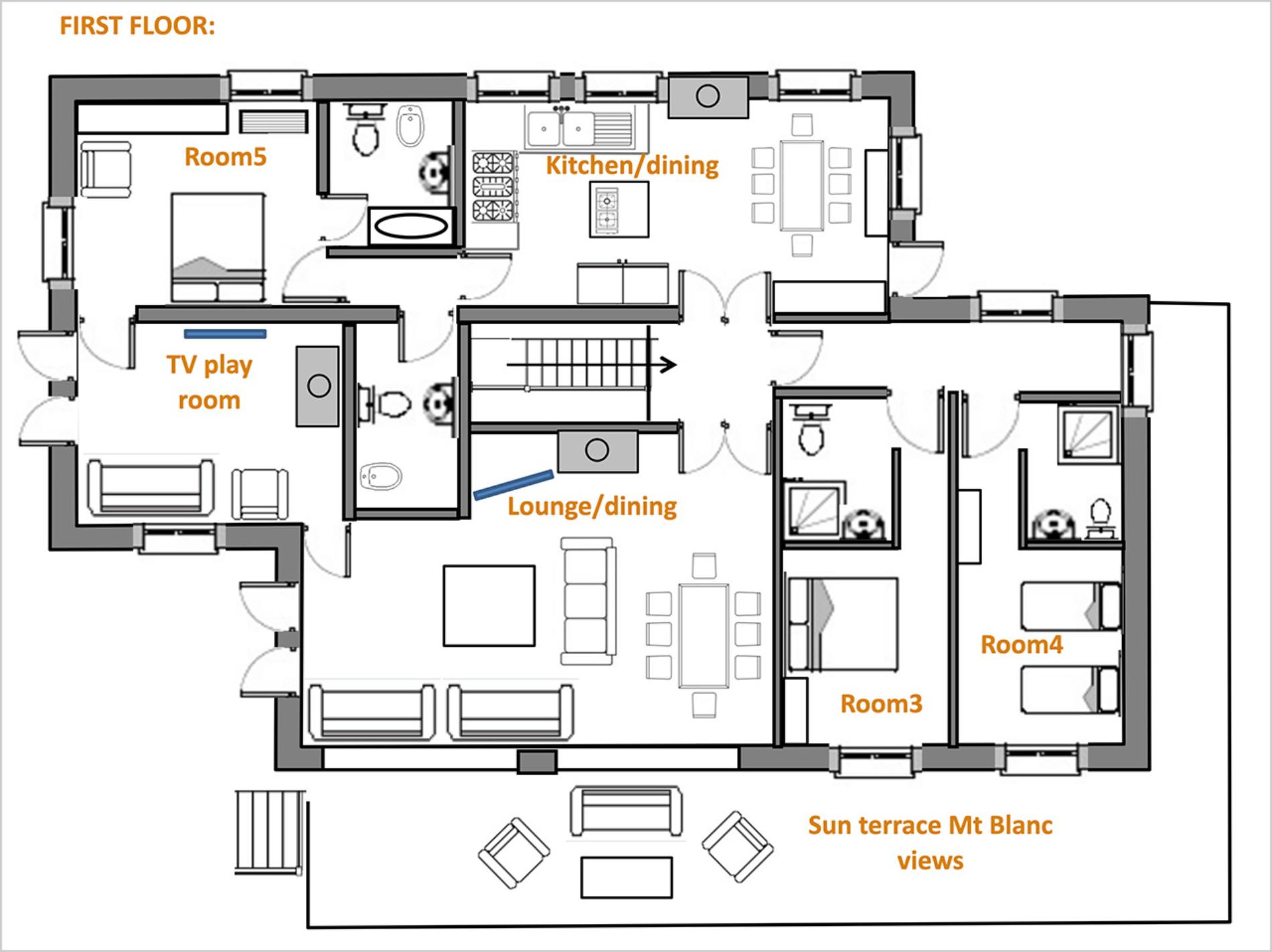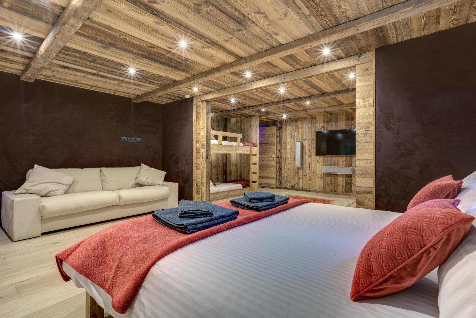 The chalet in total has 7 bedrooms and 7 bathrooms, separate WC’s and can sleep up to 12 people.