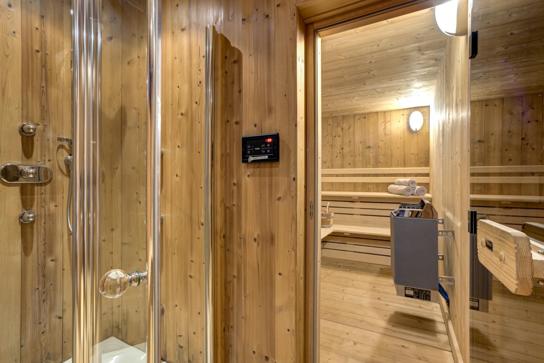 Sauna, shower and relaxation area.