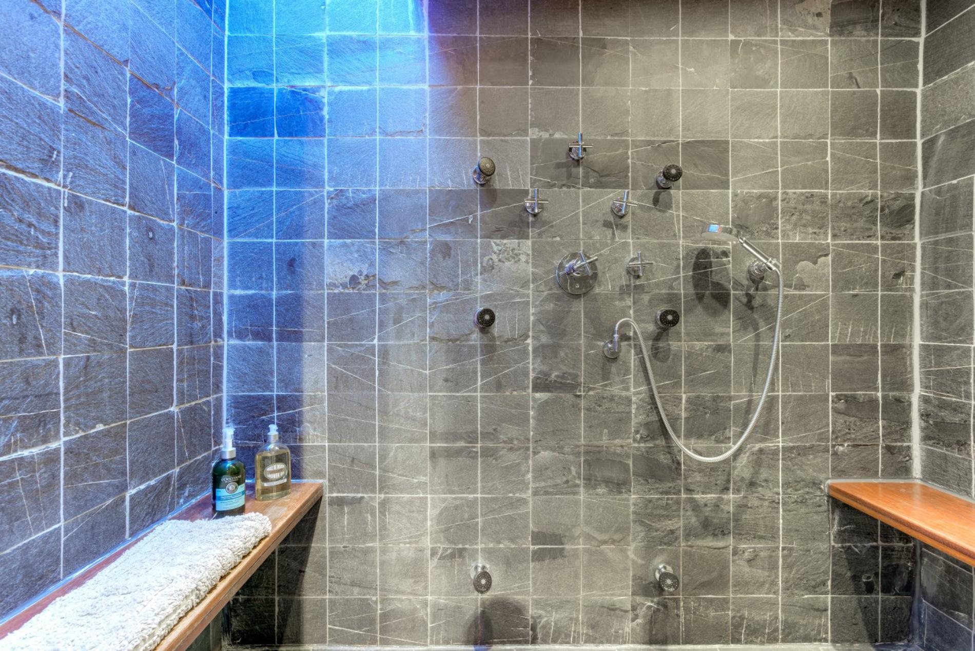 Outdoor hot tub, indoor sauna, steam shower room and open fire places.