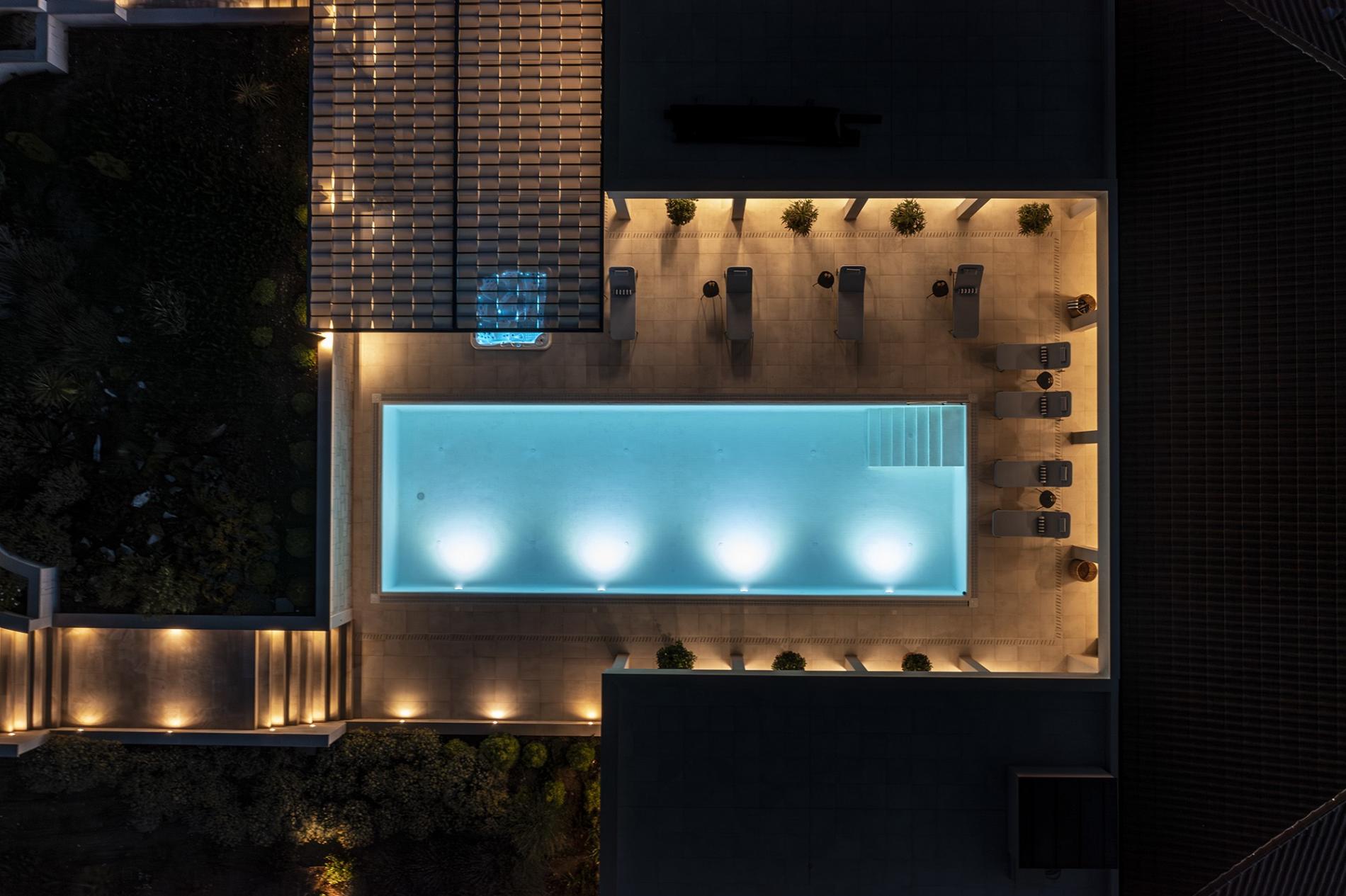 Gated property with landscaped gardens – 11 bedrooms – 2 Heated infinity pools – Outdoor Movie Theater – 2 Jacuzzis – 2 Gyms – 2 Saunas – 2 Media rooms/library – Massage/Meditation Pavilion – 2 Wine/Olive oil cellars – 2 Elevators – The Cloister – Private parking – Sustainable design – Live-in staff