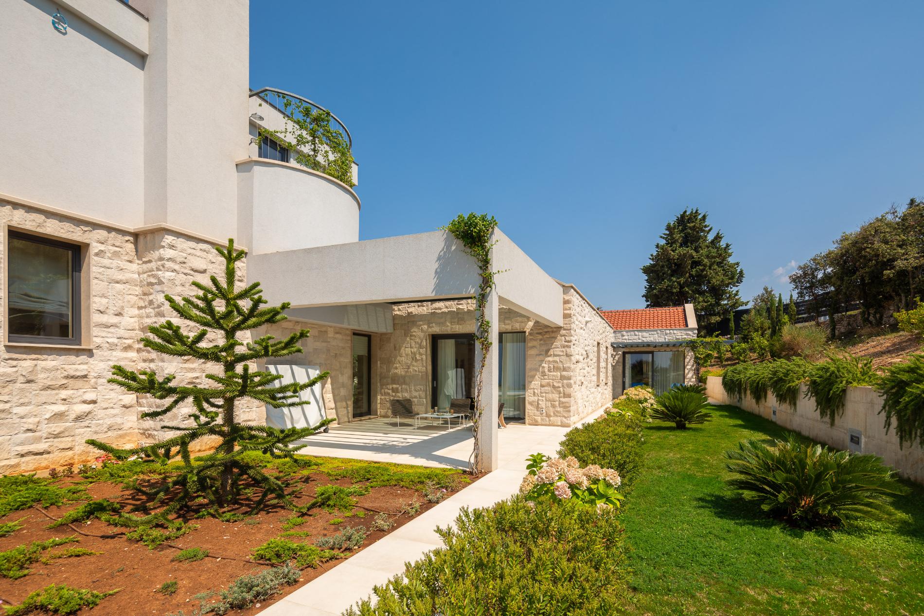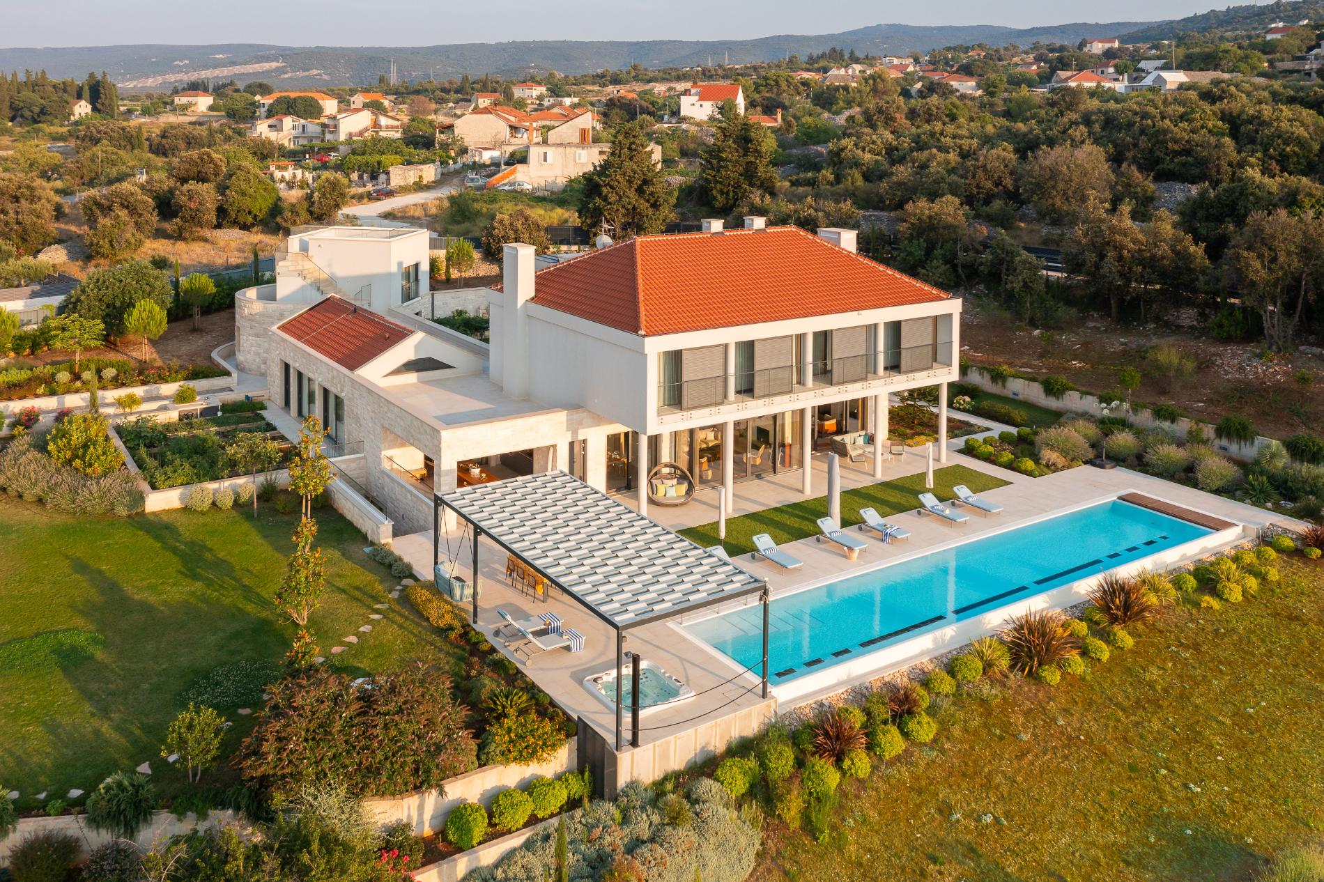 Tranquility Villas features two modern villas set in landscaped gardens on the beautiful island of Brač. Moreover, they sit on a four-hectare private compound, home to Brač’s largest botanical garden. The villas offer complete privacy, complemented by stunning views of Split and the surrounding mountains across the sea channel.