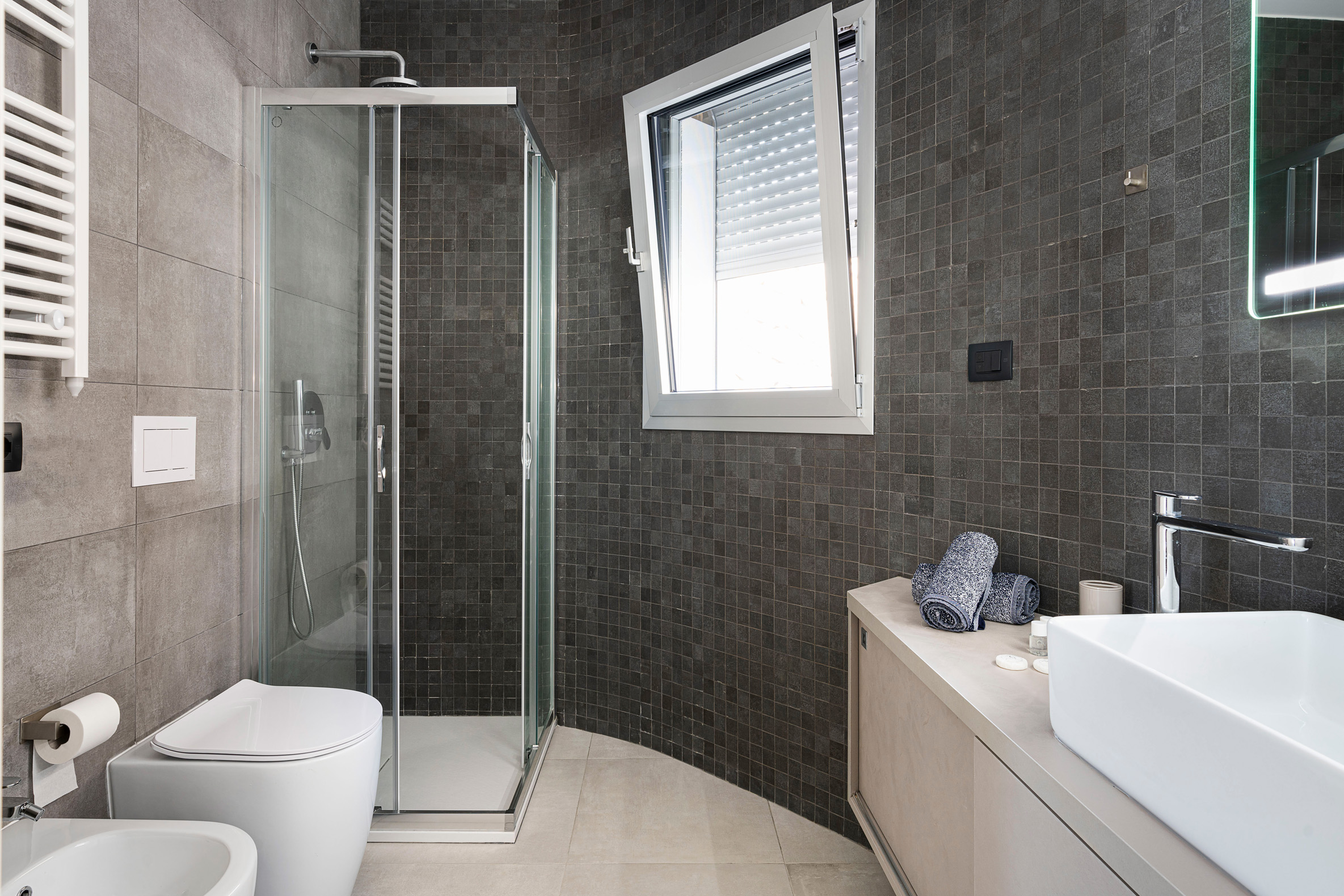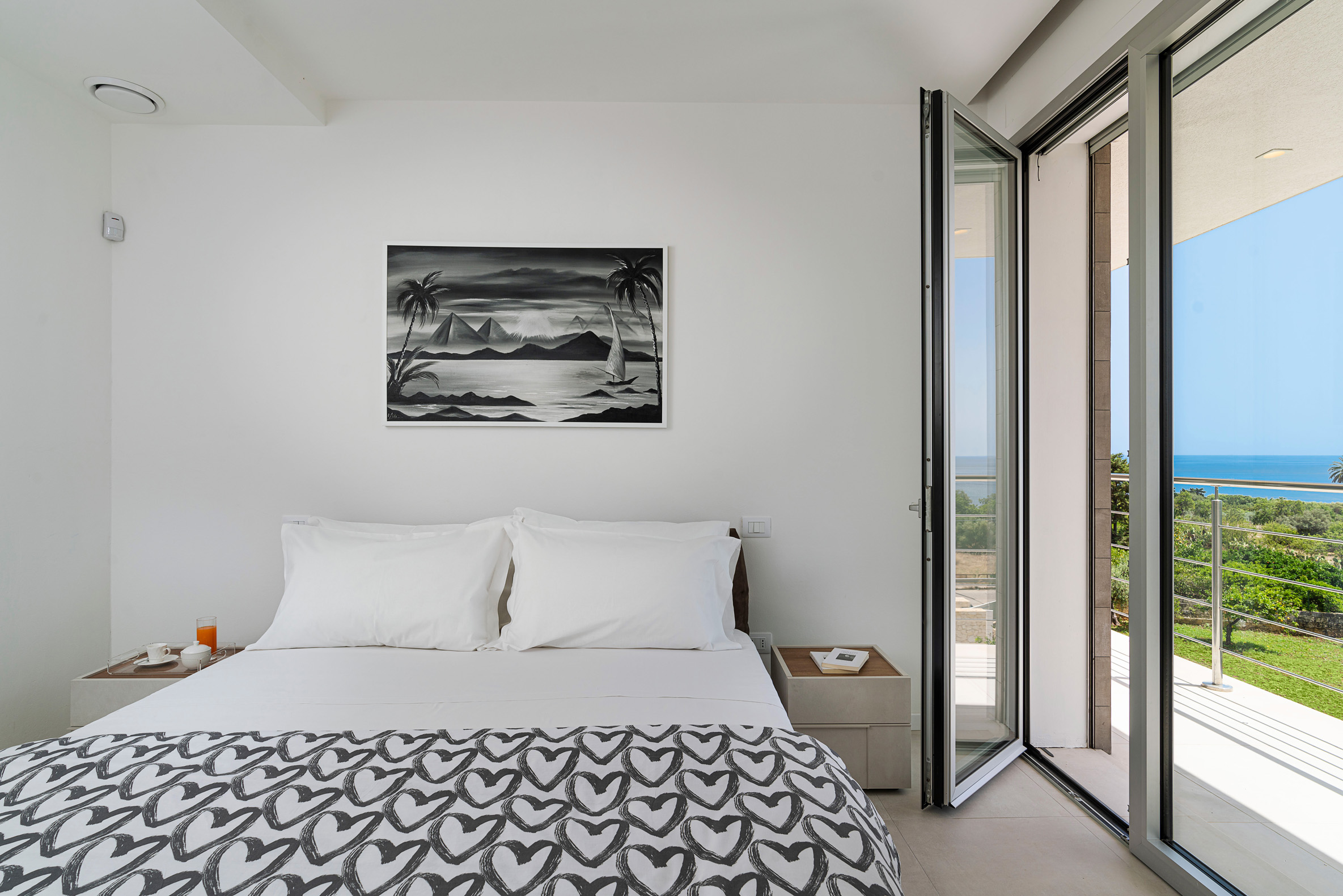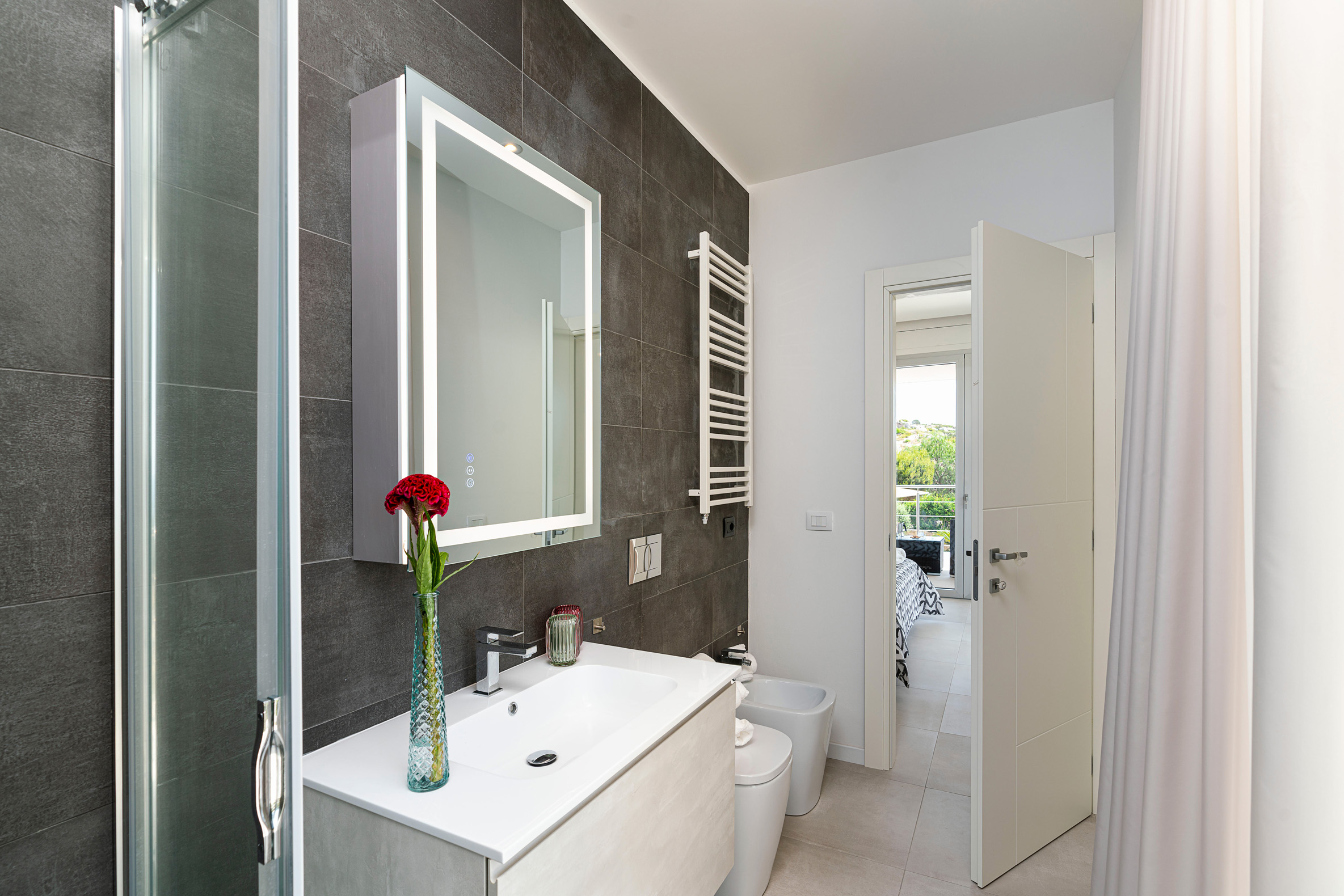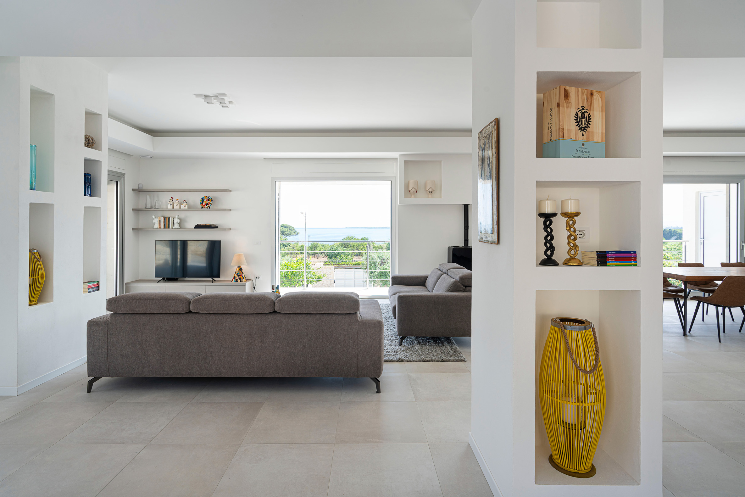 This contemporary style villa, newly built in 2022, boasts spacious interiors – with a surface area of over 400 square metres – and consists of a main house and two welcoming annexes. The exclusive saltwater swimming pool (chlorine-free) is heated. From the villa, that is just a few hundred meters from the cliffs and wonderful sea of the Plemmirio marine area, can be reached in a few minutes’ drive the evocative historic centre of Ortigia. In the vicinity can be visited the baroque towns of the Noto Valley, the nature reserves of Cavagrande del Cassibile and Vendicari, but also Catania, Mount Etna and Taormina.