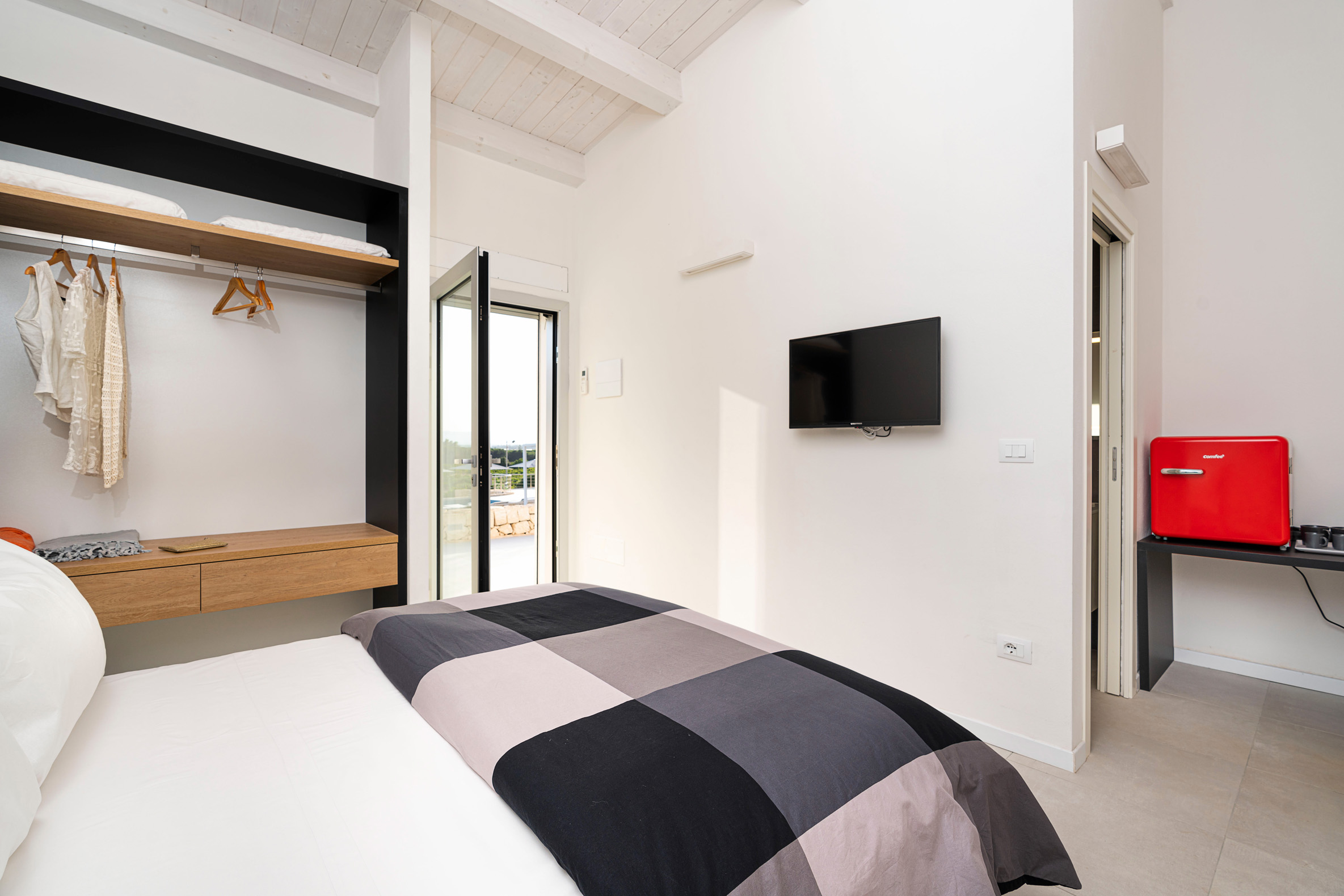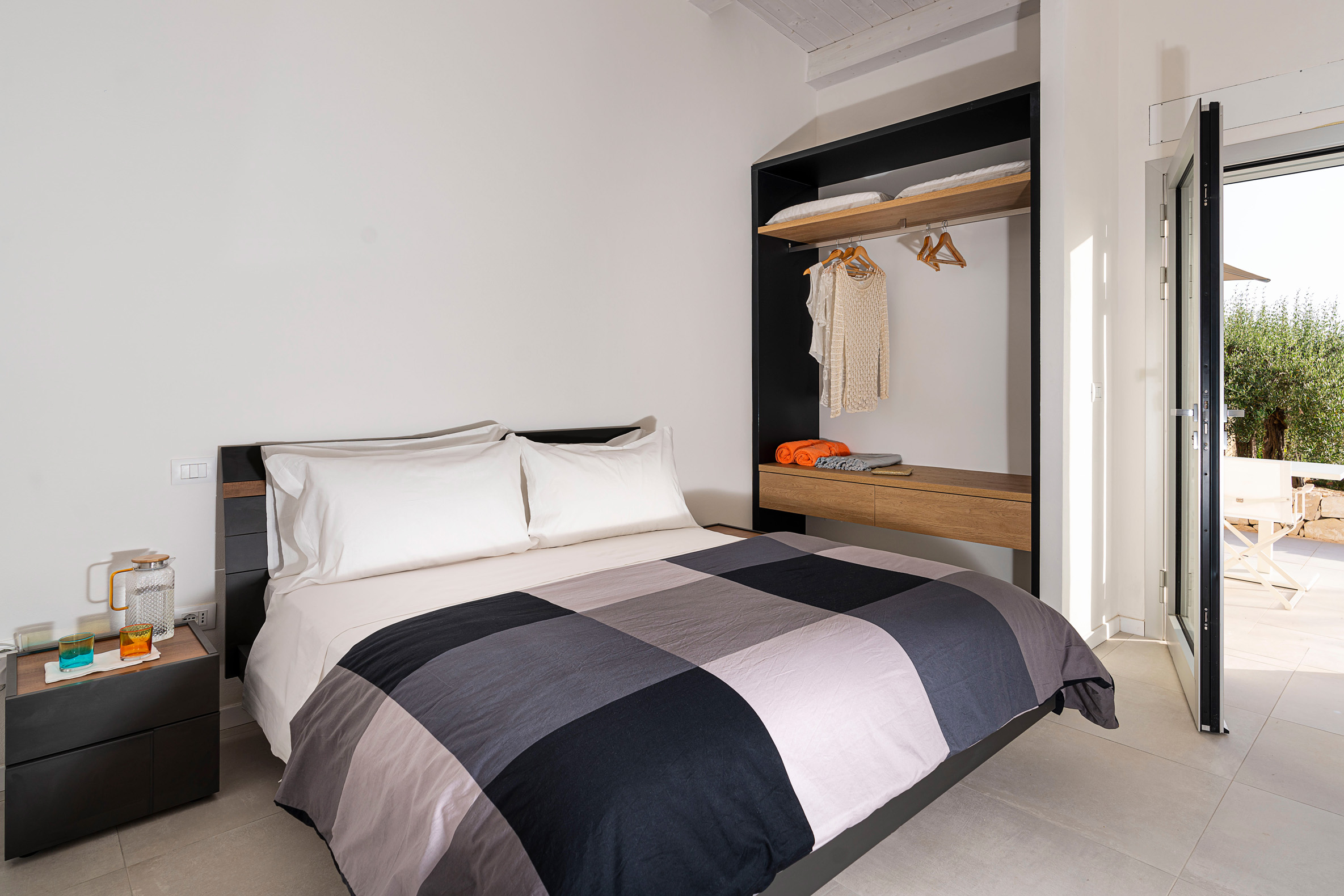 On the ground floor, independent from the rest of the house and accessed only from outside, are a living area with dining room and kitchen, a double bedroom and a bathroom. The two annexes host respectively the fifth and sixth bedroom with patio, minibar and en-suite bathroom. This fully air-conditioned villa is equipped with Wi-Fi, safe, 2 dishwashers, washer-drier and outdoor kitchen.