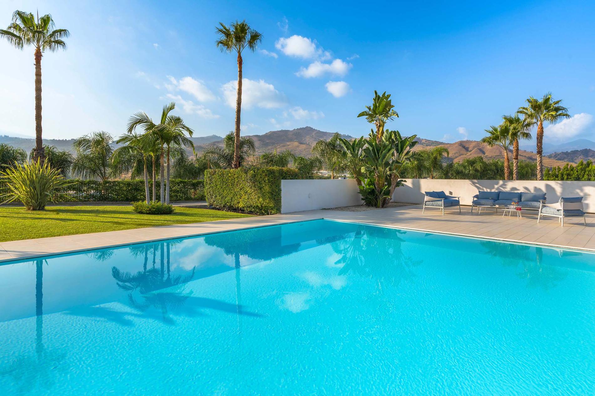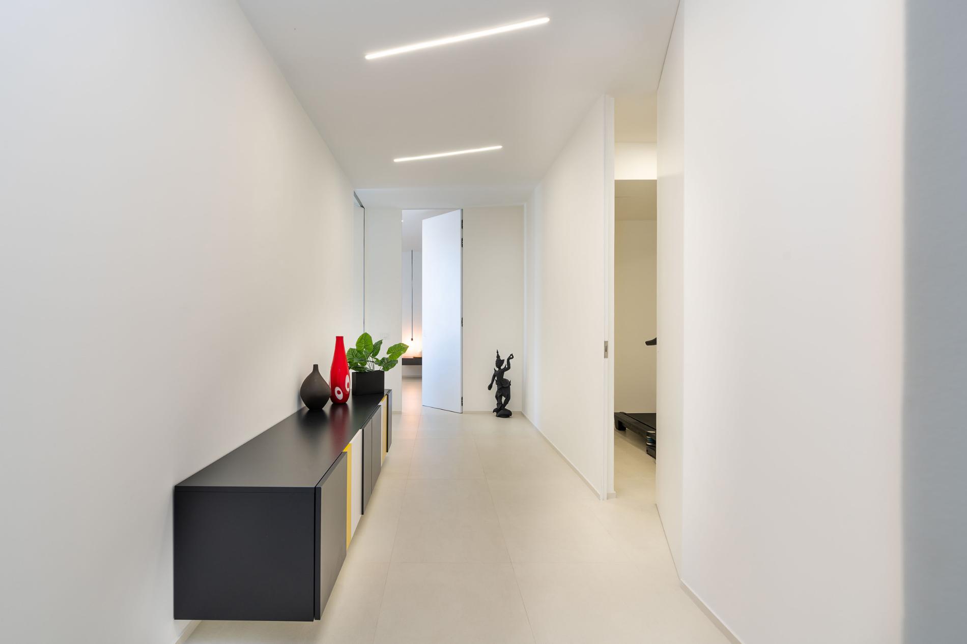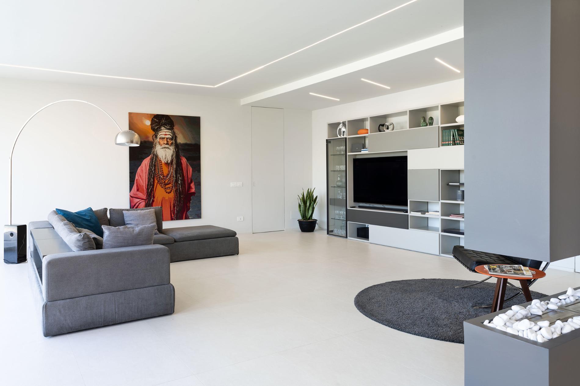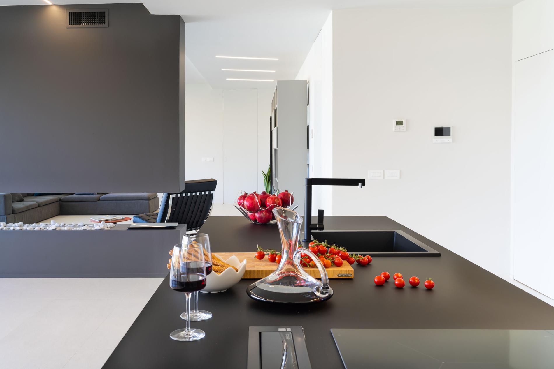 Set on two levels, this exclusive, newly built contemporary villa features bright, cosy interiors with large glass doors open onto the garden and the surrounding landscape.