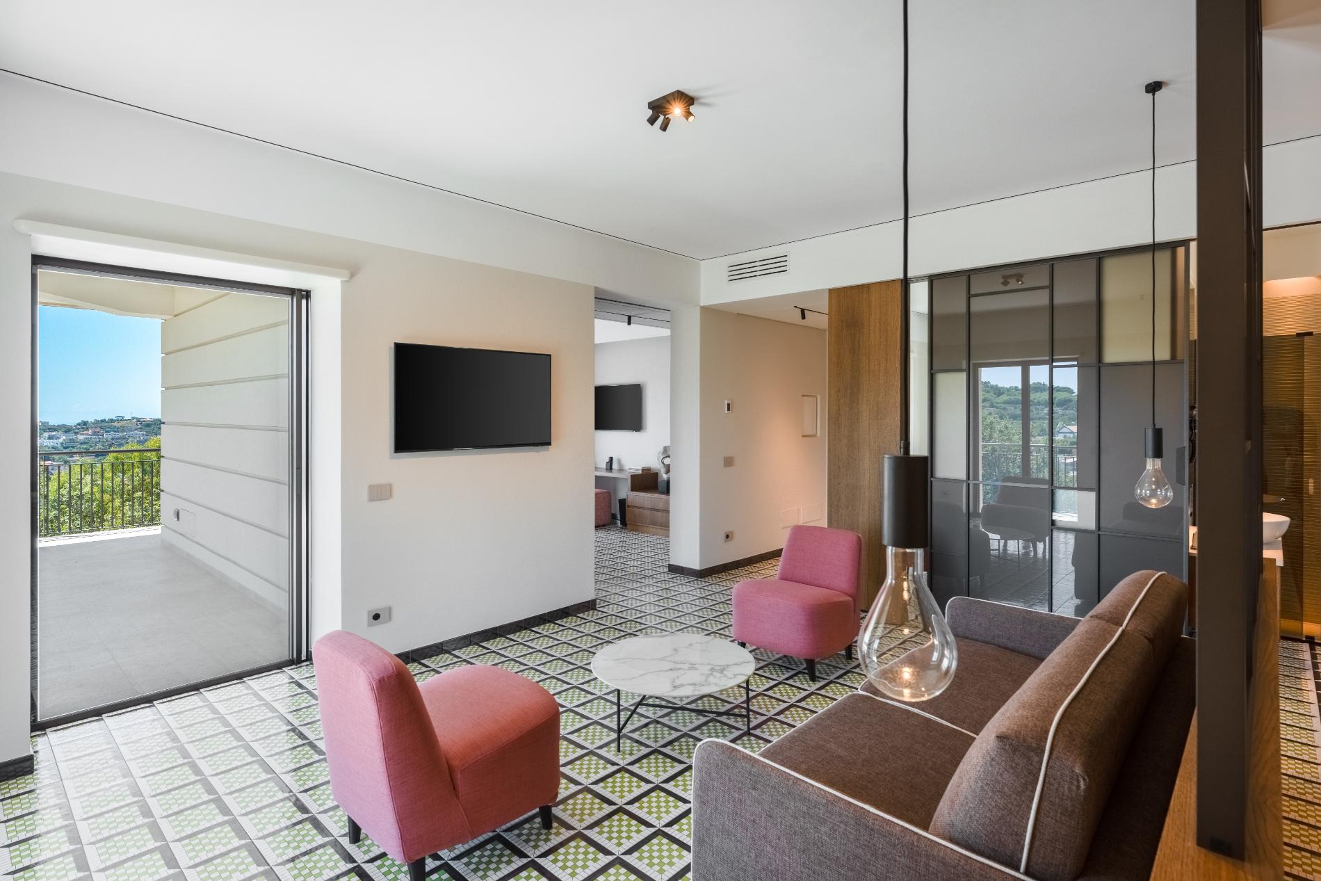 The property is completed by a splendid terrace equipped with sun loungers and an outdoor shower, where you can do yoga at sunset or sunrise while admiring the island of Capri right in front of you.