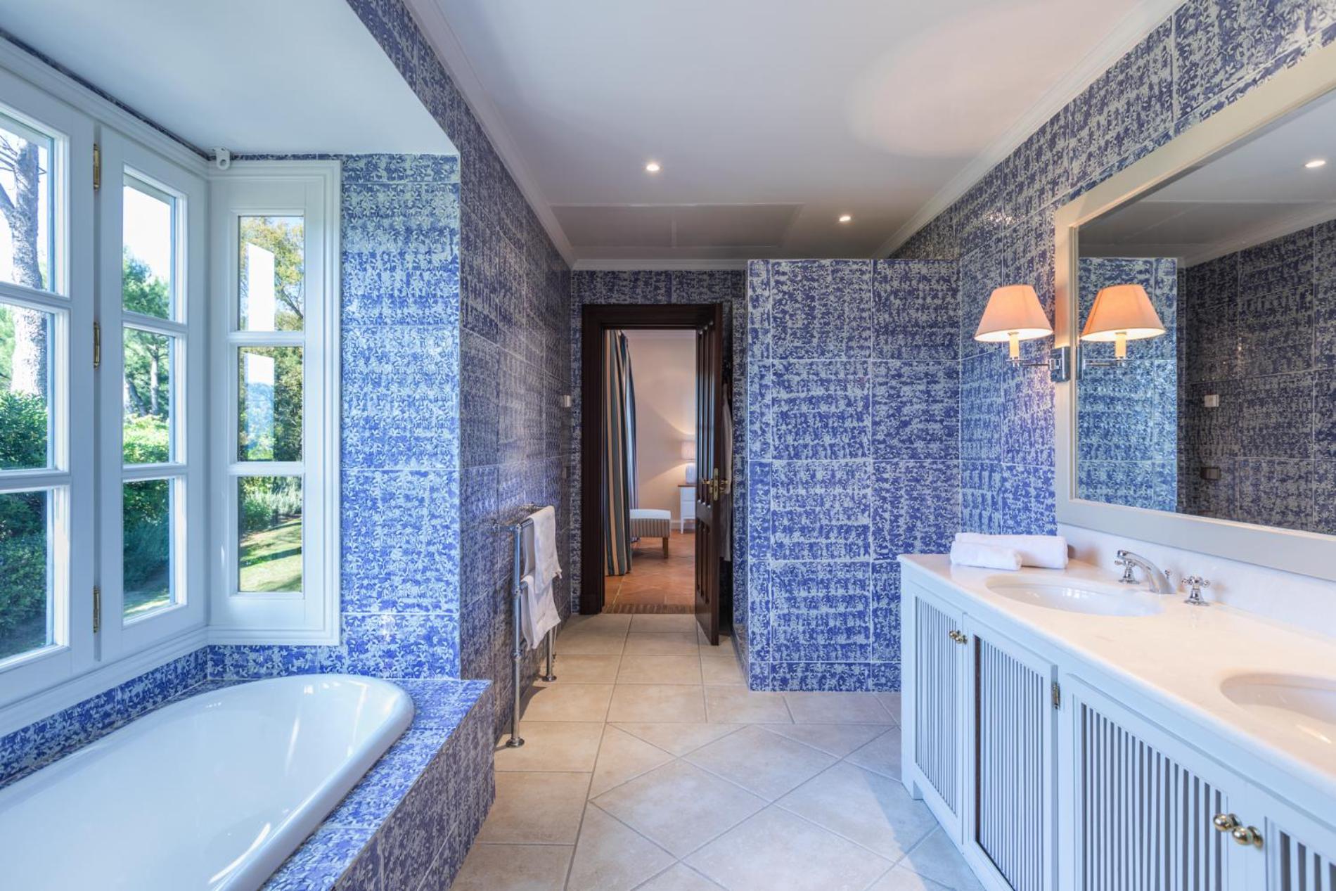Villa Zagala has five bedrooms, all with generous ensuite bathrooms and with simple comfortable interior décor, punctuated by graceful chandeliers and choice antique pieces. Three are on the ground floor, and the two Master Suites are upstairs, with their own private terraces. A striking feature on this floor is the large steam room where you can relax and recover from the stresses of modern life.