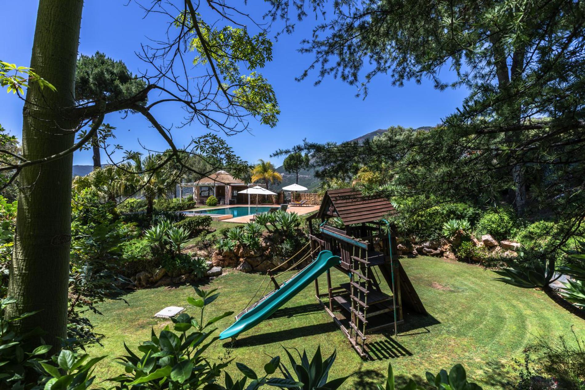 Outside, the large mature landscaped gardens are a true oasis where you can take a dip in the swimming pool, lounge on the sun terraces, or sit in the shade of the palapa whilst the children have fun in the playground. The villa’s southwestern orientation provides the best seats in the house when it comes to watching the spectacular sunsets.
