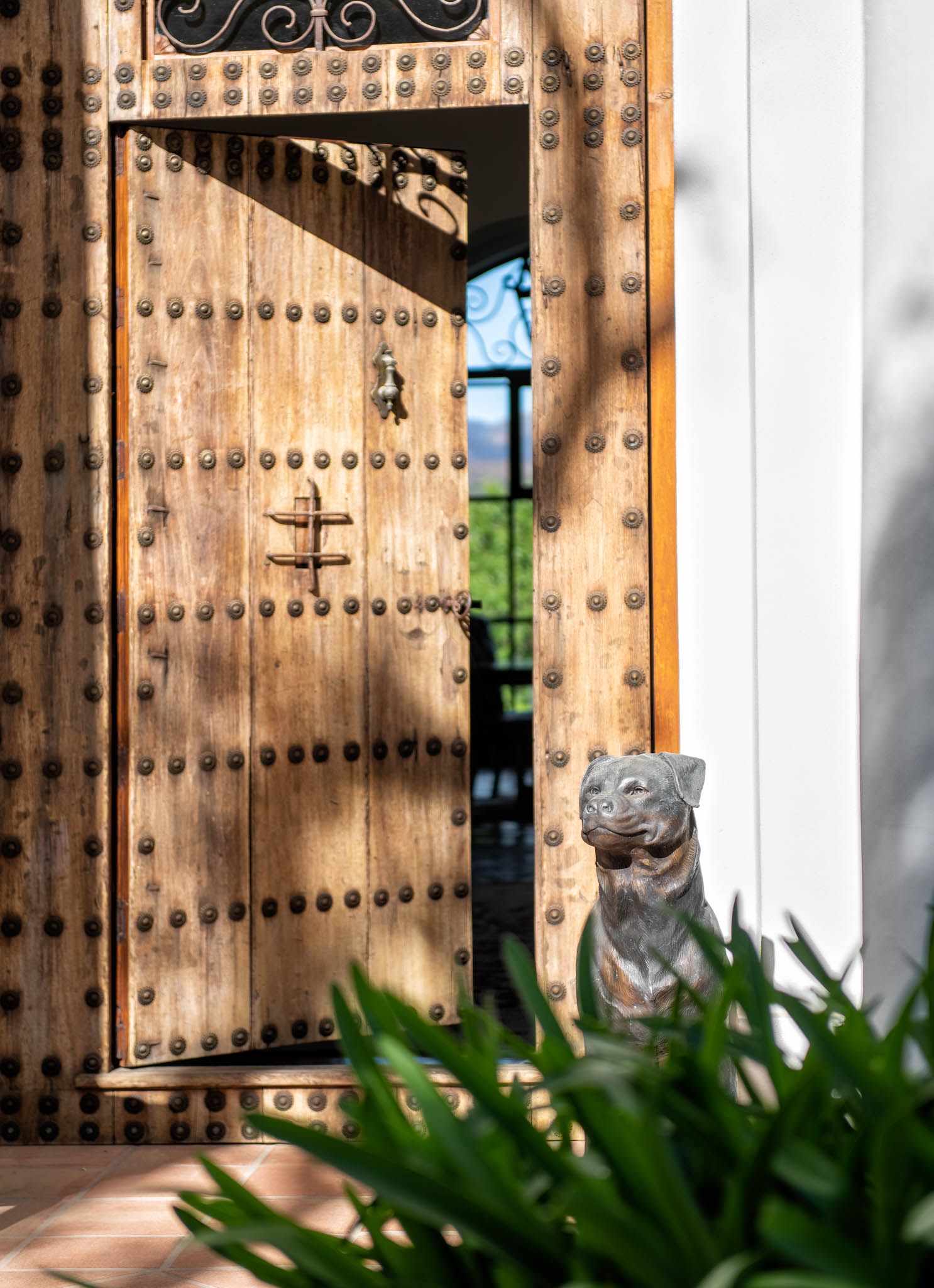 Entering the luxury gated property via a delightful courtyard adorned with water features and ornamental plants, you cannot fail to be enchanted by the Spanish colonial architecture embellished with stately pillars and an impressive iron studded wooden door.