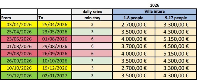 ∙ 3rd bed and 4th bed €100 each per night in the Master Suite (1 in the Villa)