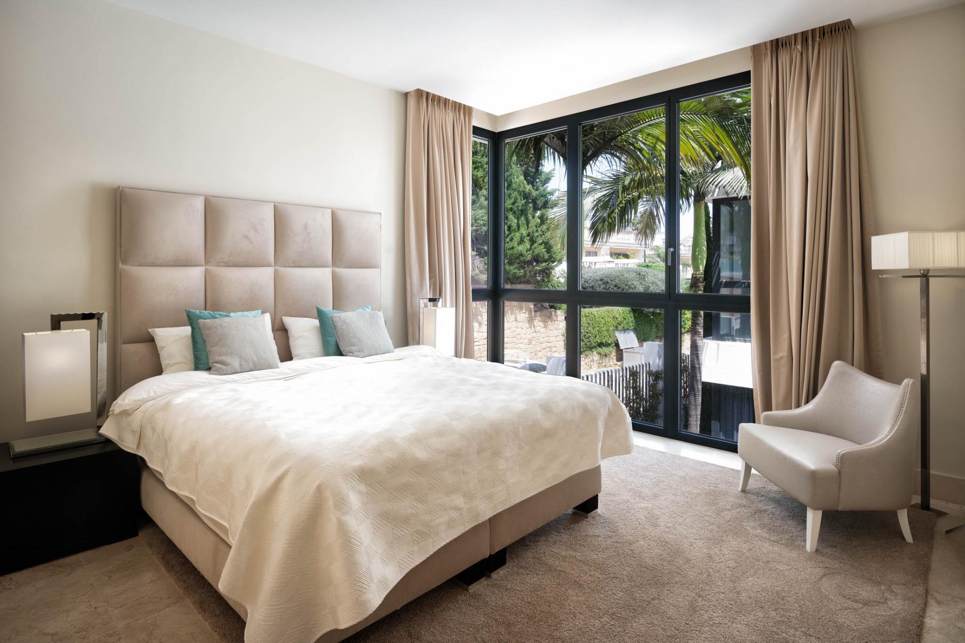The master bedroom with ensuite bathroom has direct access to the terrace and a king size bed with views of the sunset. The second and third bedrooms are on the opposite side of the property with a very generous size and en-suite bathrooms.