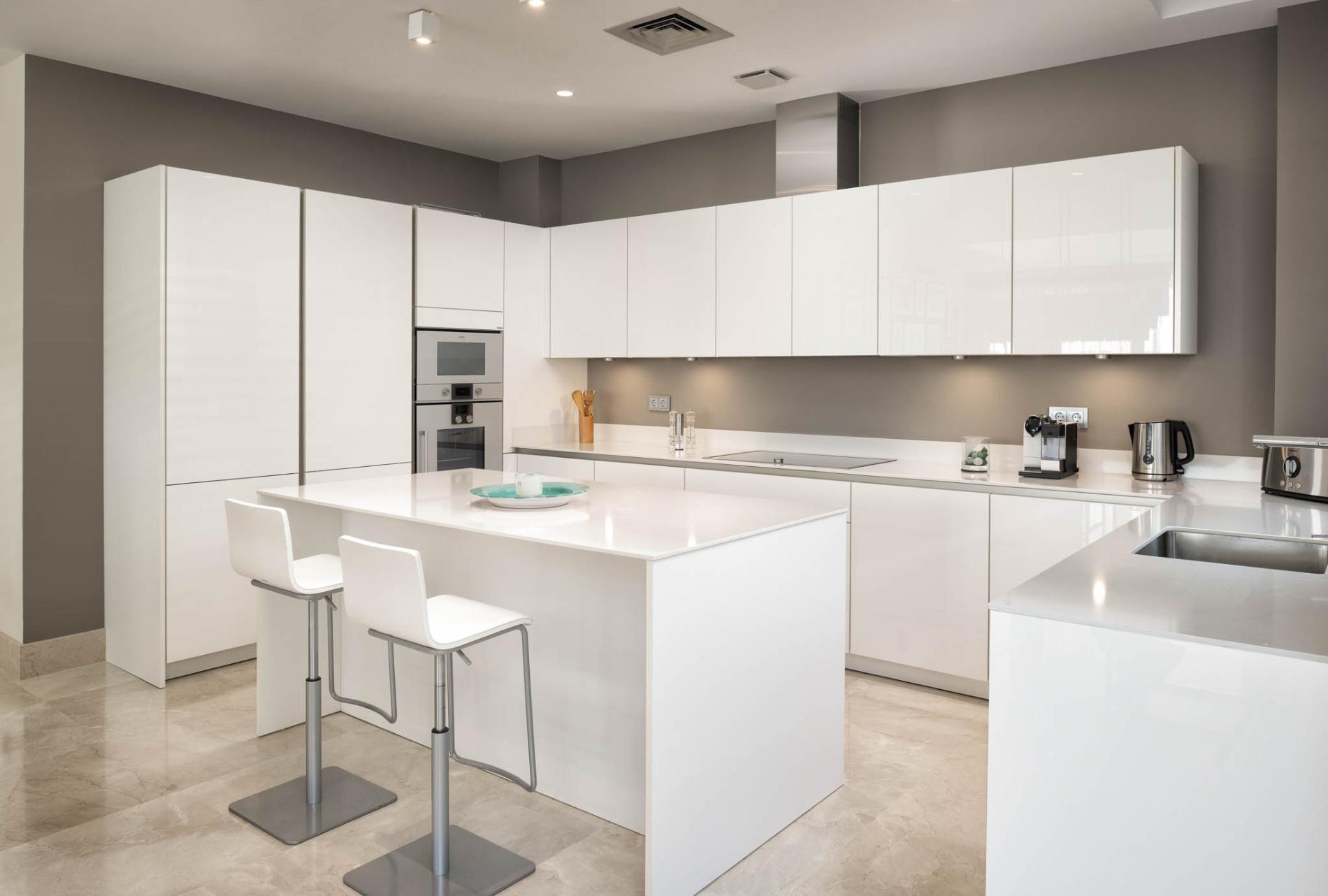 This penthouse offers an open plan living room with high ceilings connecting the kitchen, dining room and one of the terraces. The kitchen is open design with modern appliances.