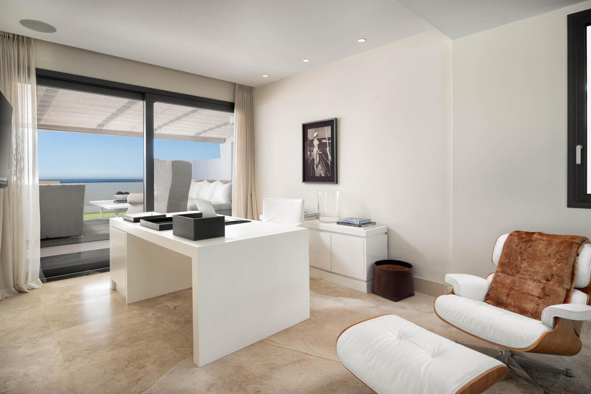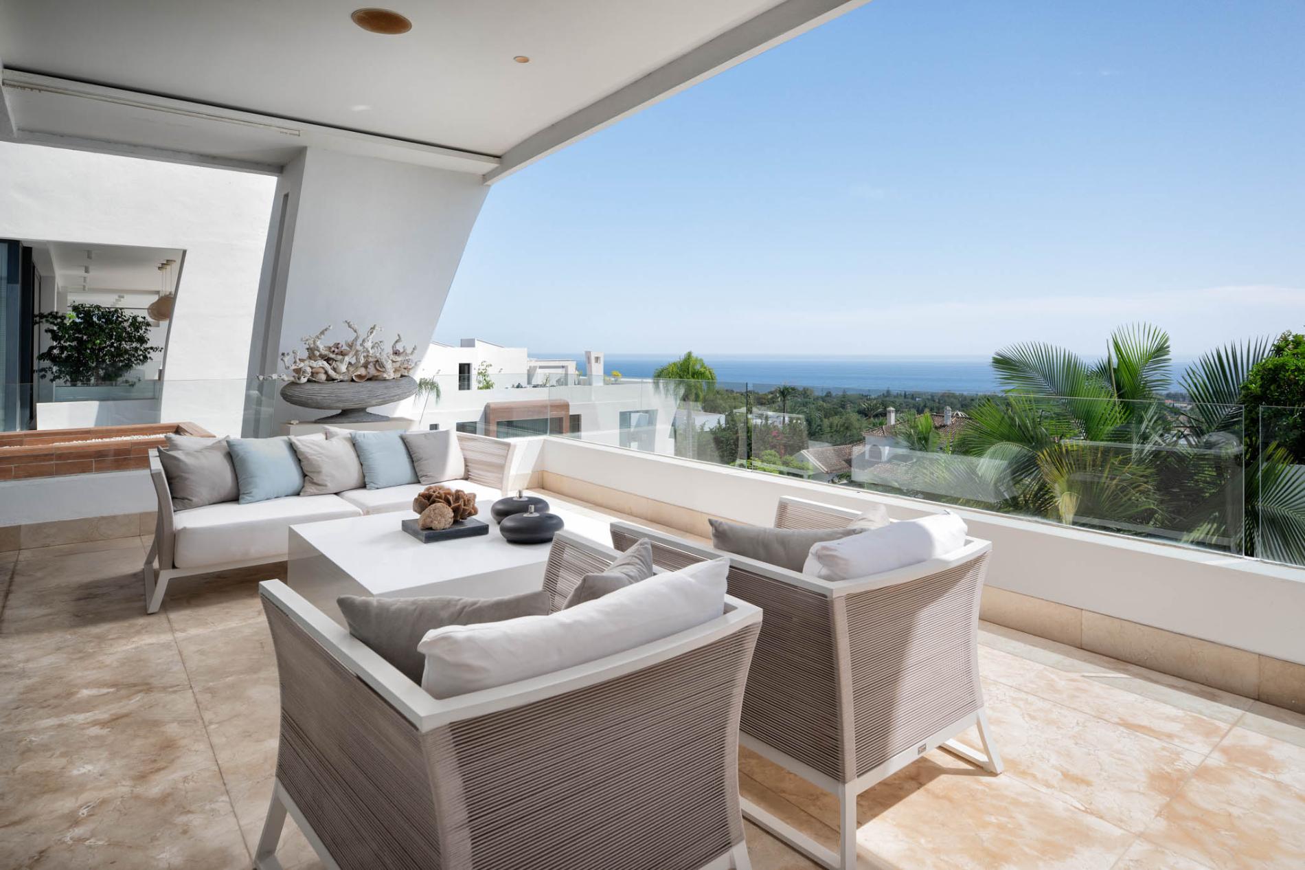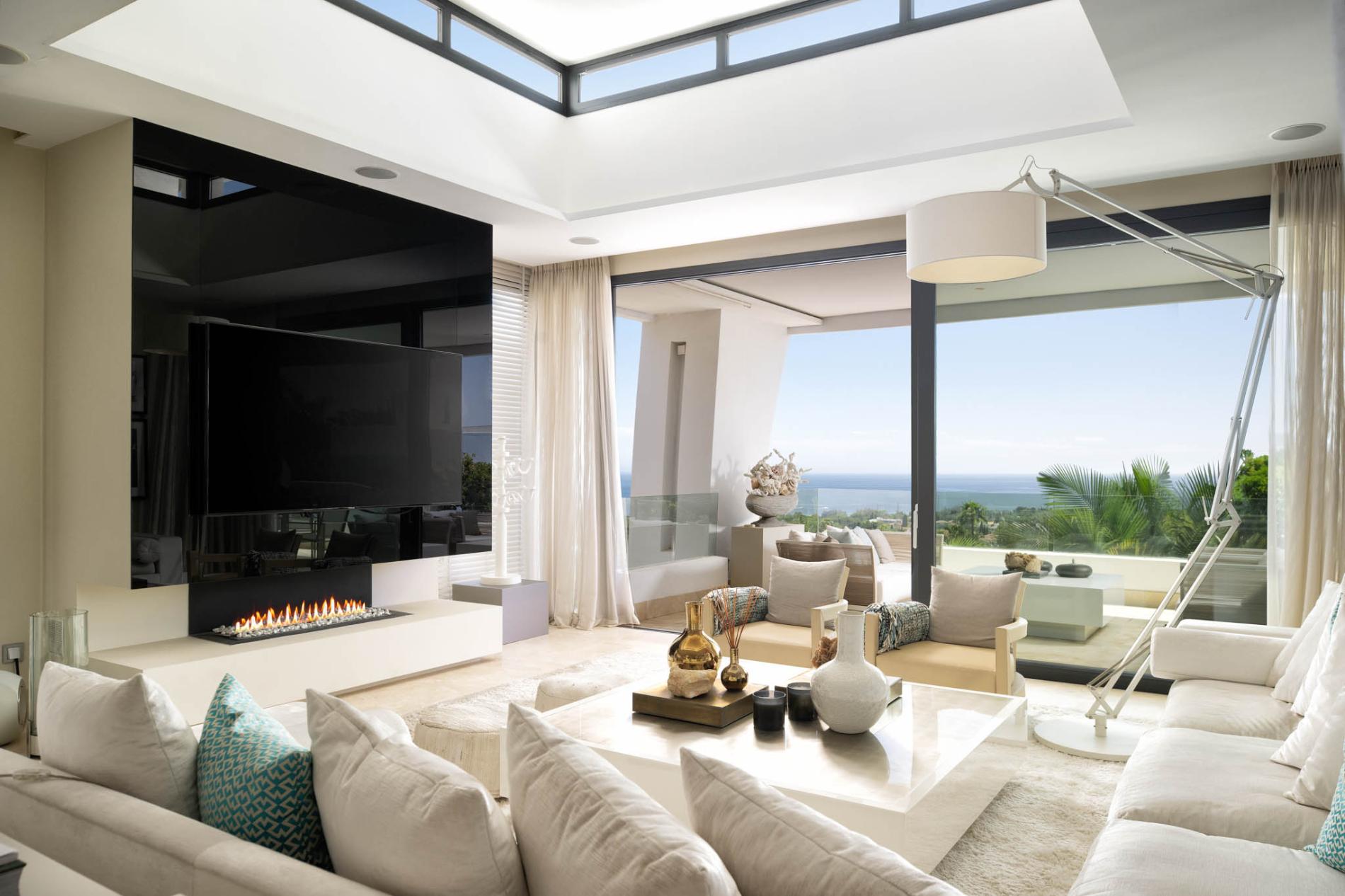 One of the most luxurious duplex penthouse currently on the market in the prestigious resort-like gated community of Sierra Blanca. This duplex penthouse has a light and airy interior along with huge terrace spaces offering views of the Mediterranean Sea and mountain views with all-day sunlight.