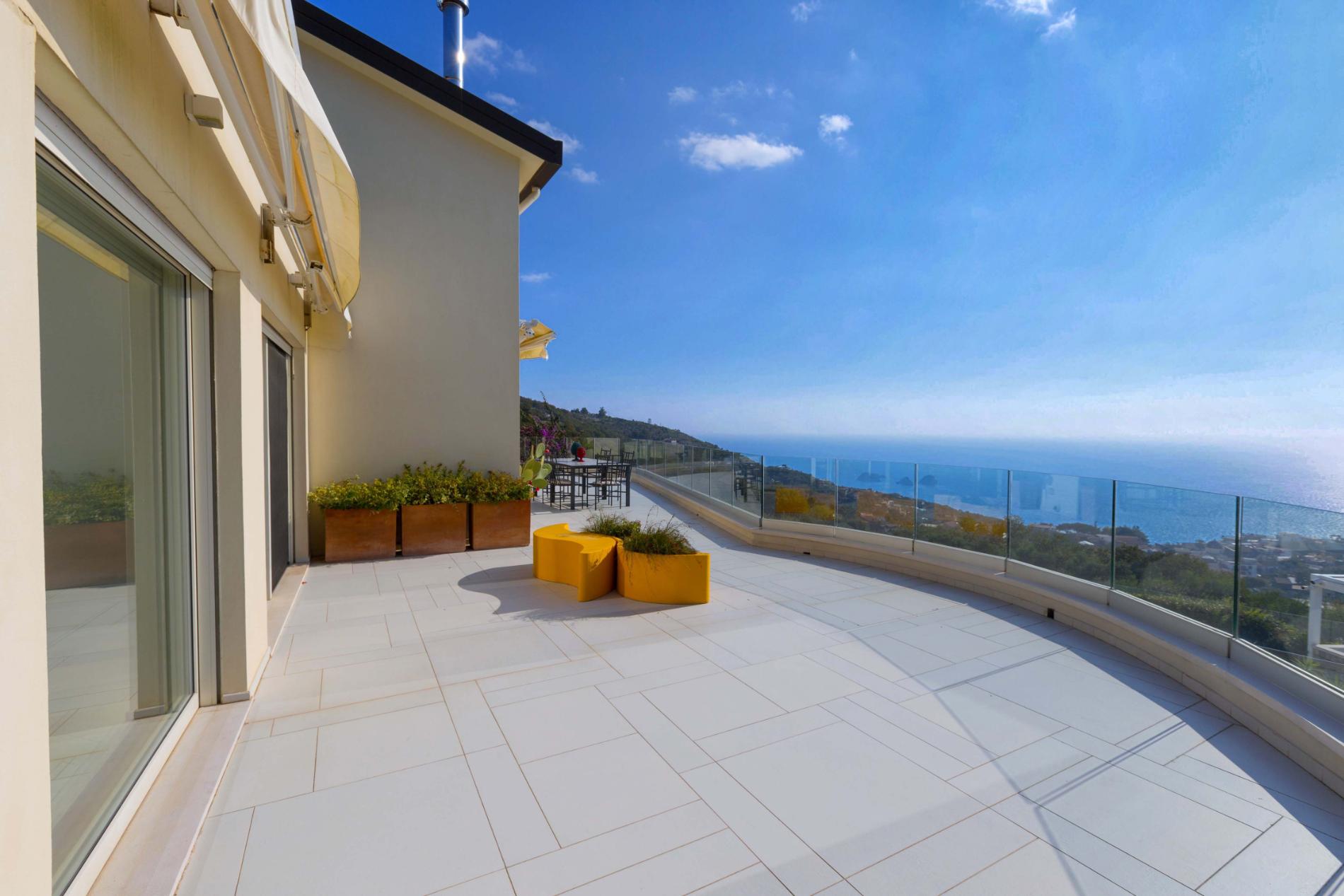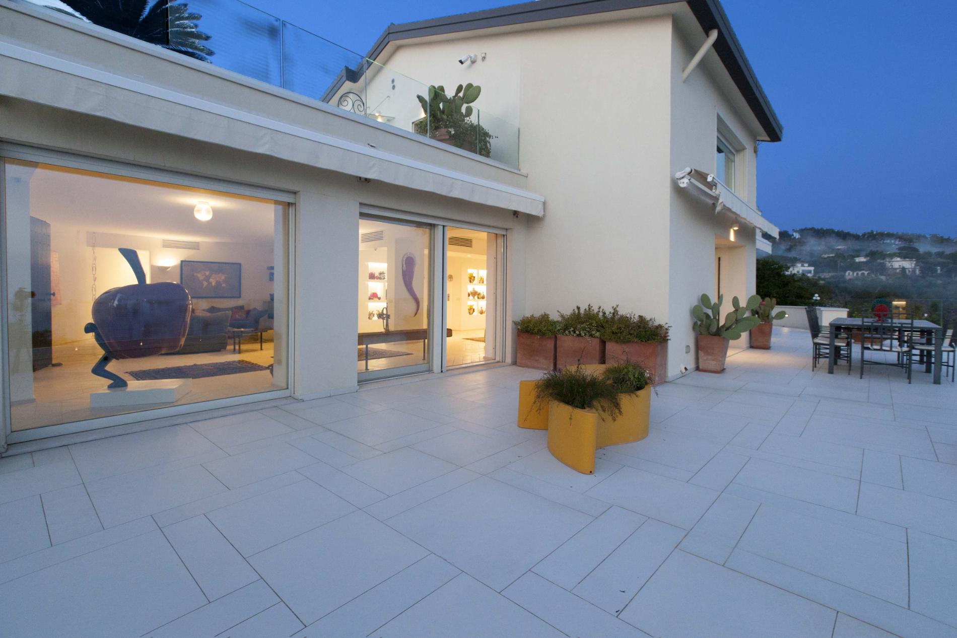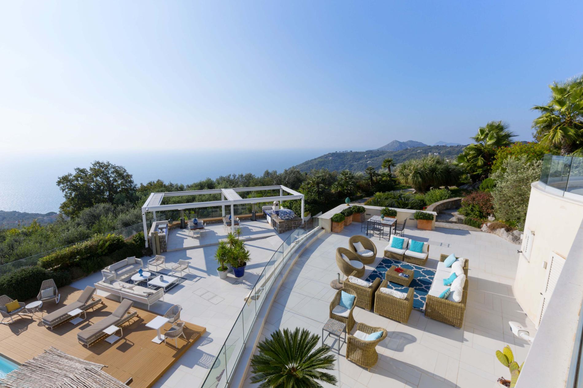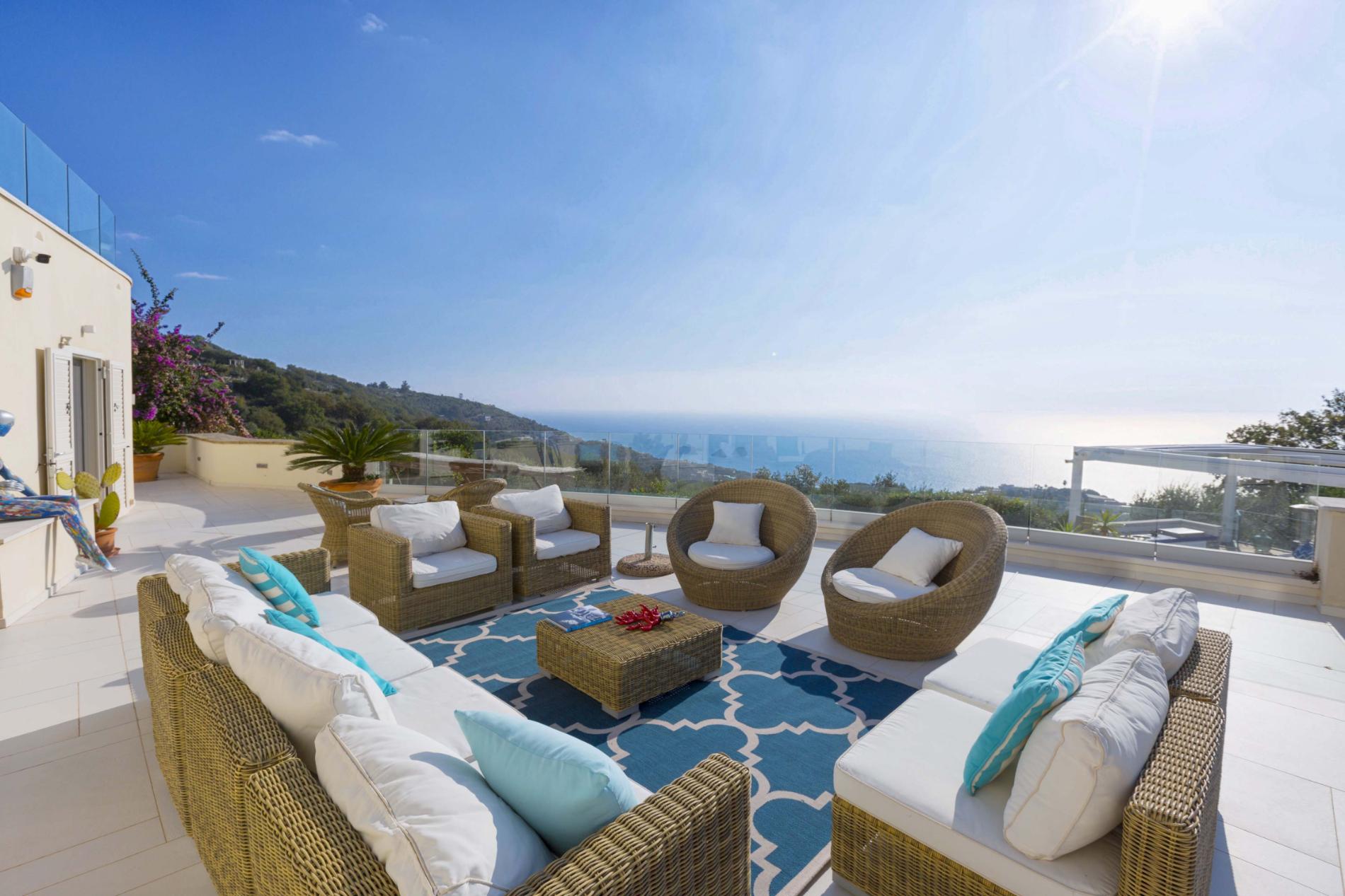 Occupying a massive 450m² and designed to make the most of its panoramic position, the villa extends over 4 floors, each with its own well-proportioned terrace that overlooks the extensive grounds and the ocean below. In between lie the verdant hillsides that slip down to the sea, carpeted with vineyards and splashed with dazzling bougainvillea.