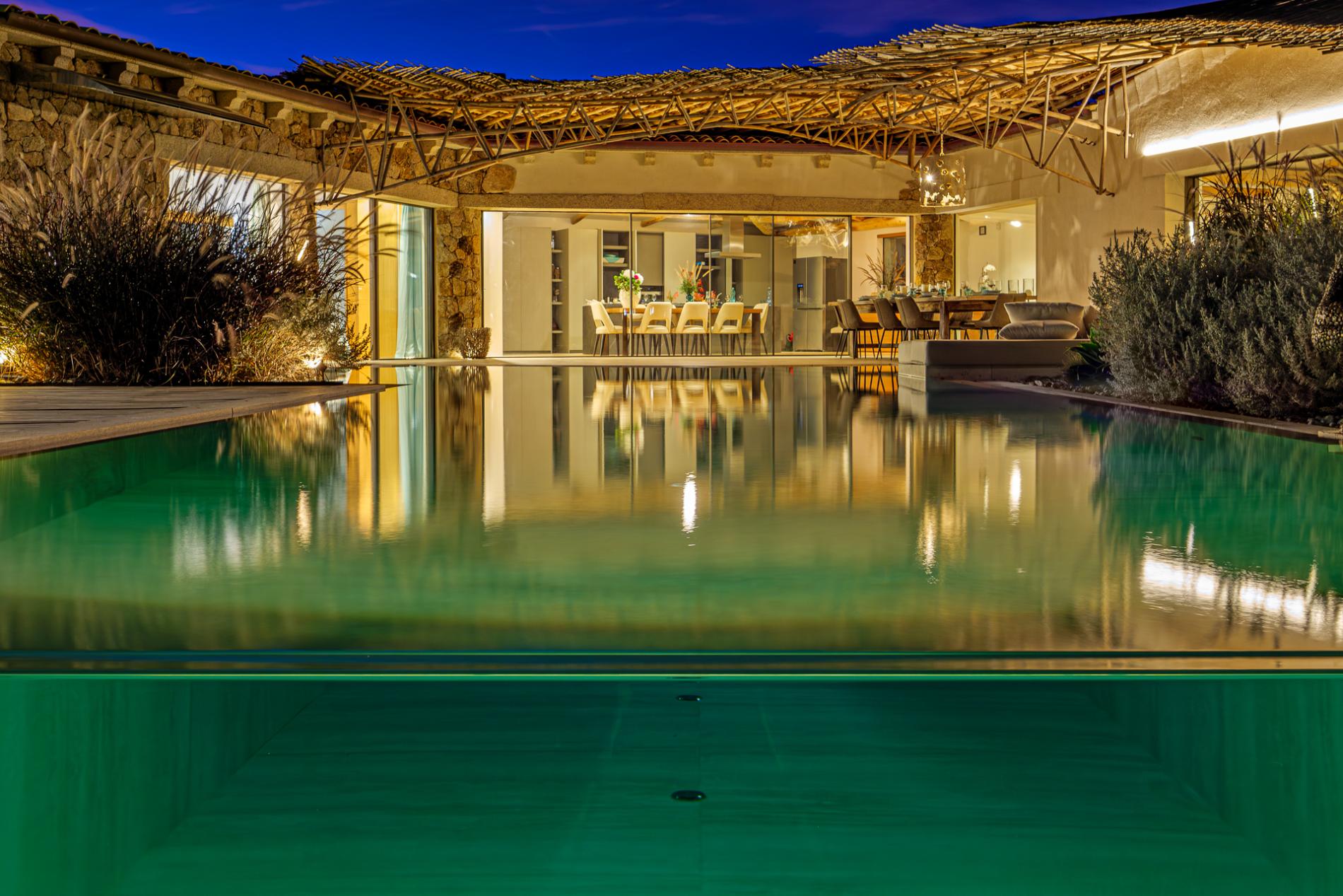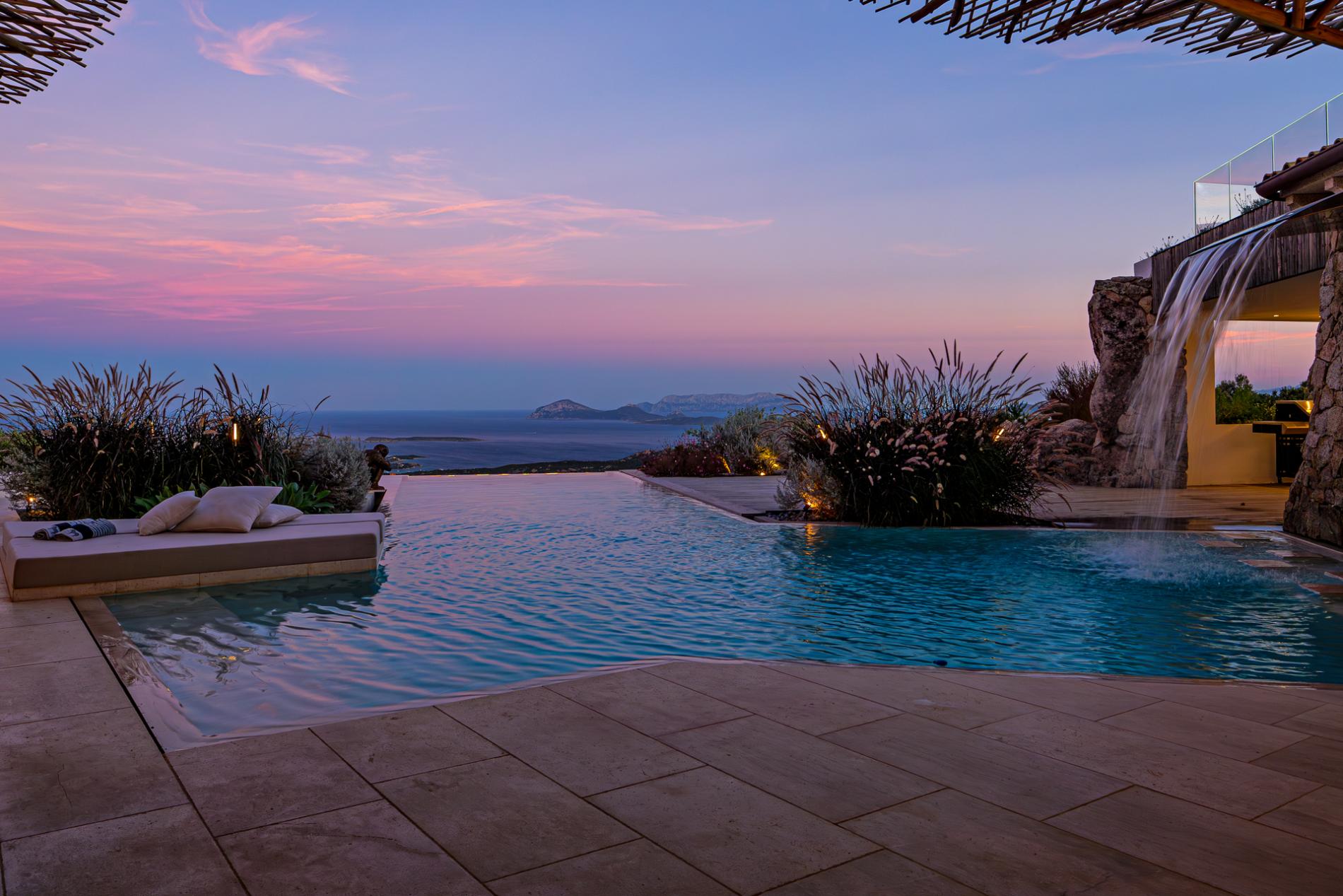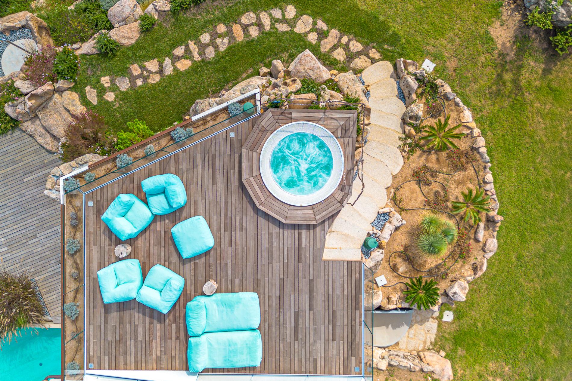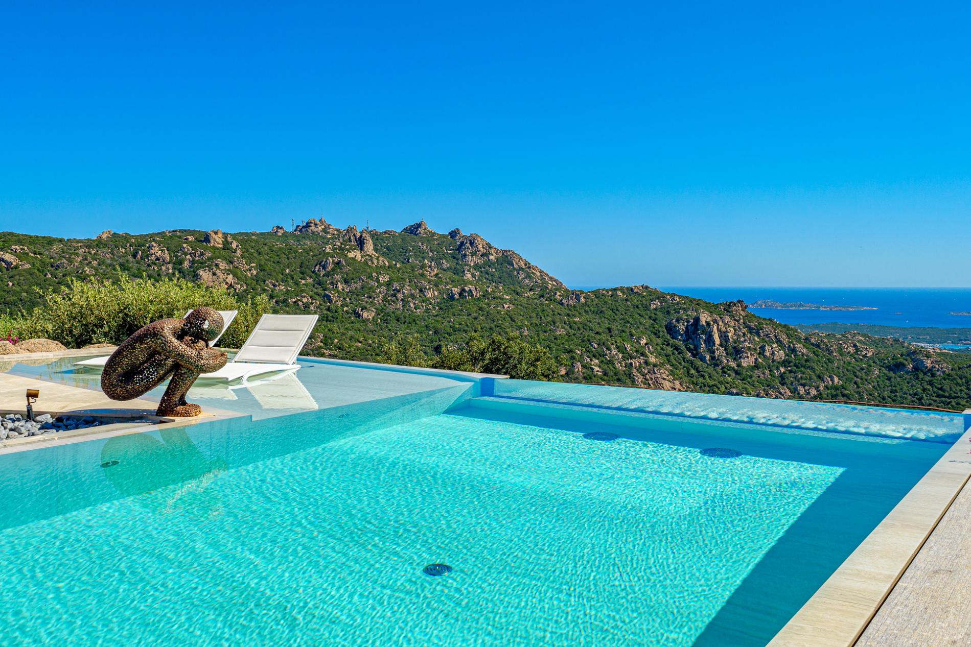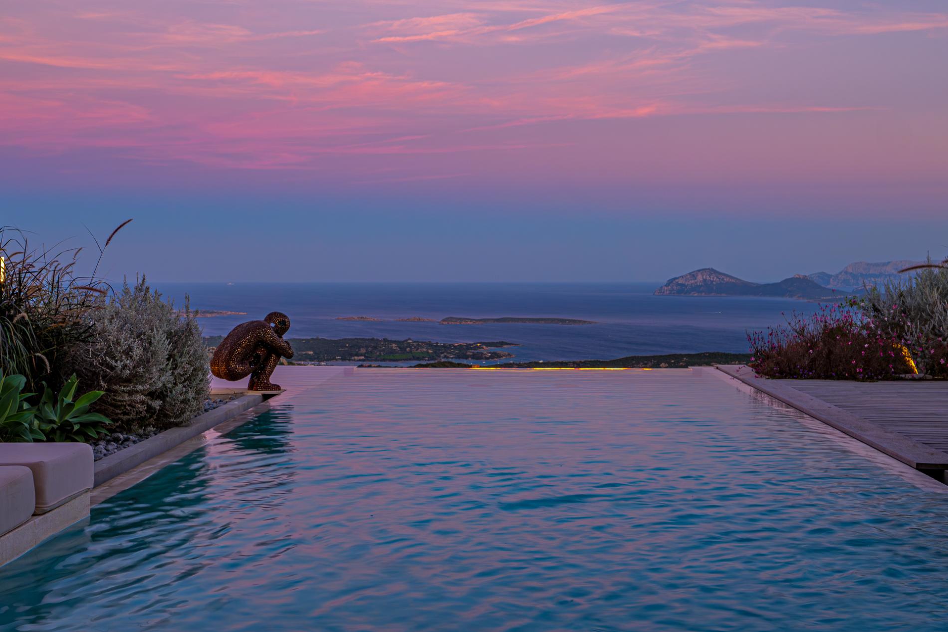 For those seeking a captivating sunset experience over the Mediterranean, Villa The Dreamer offers a panoramic Belvedere with an infinity jacuzzi, providing breathtaking views over the entire archipelago, from Maddalena to Corsica and the white cliffs of Bonifacio. In this elevated, private setting, guests can watch as evening lights sparkle along the coast and enjoy the chance to witness summer fireworks displays from afar.