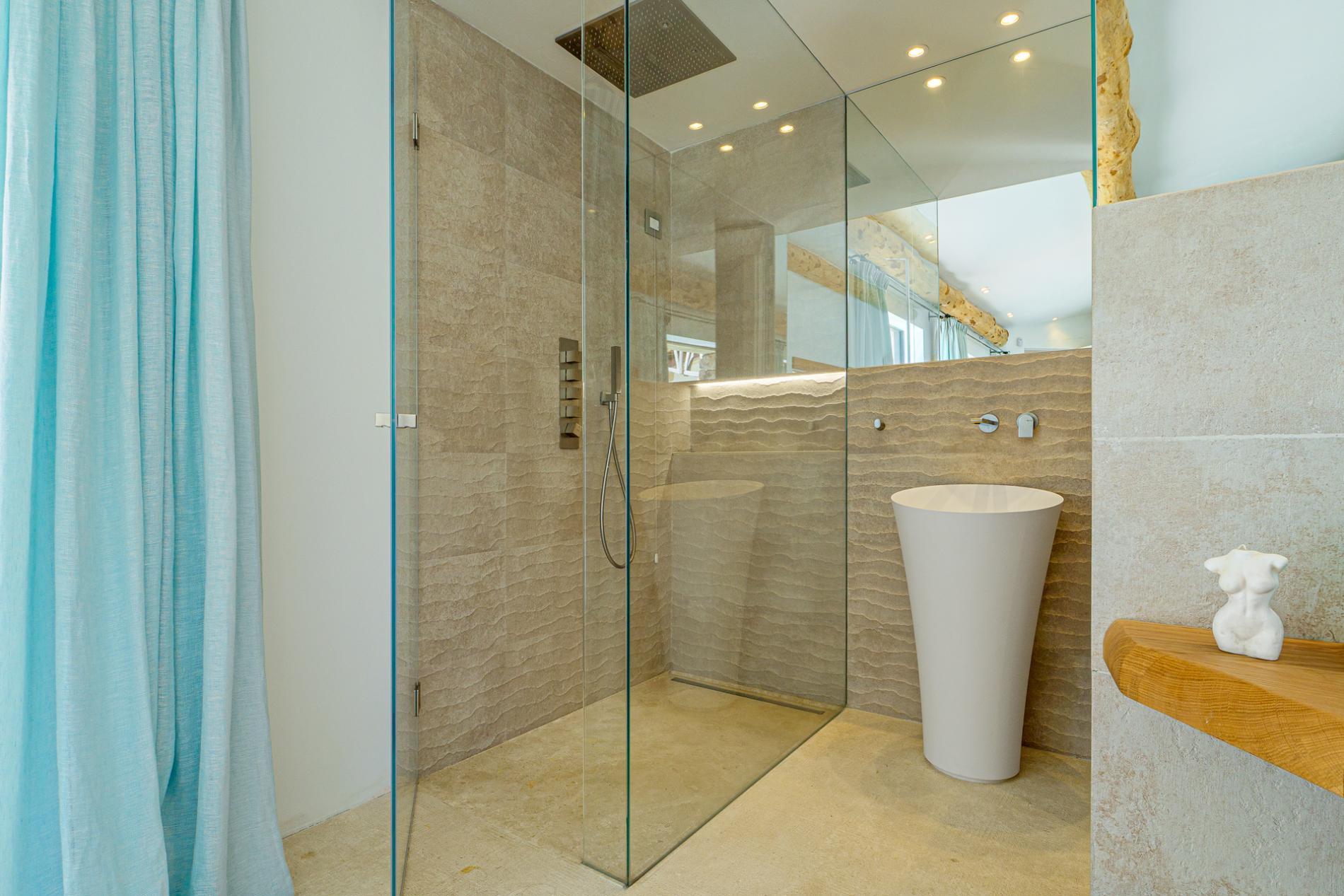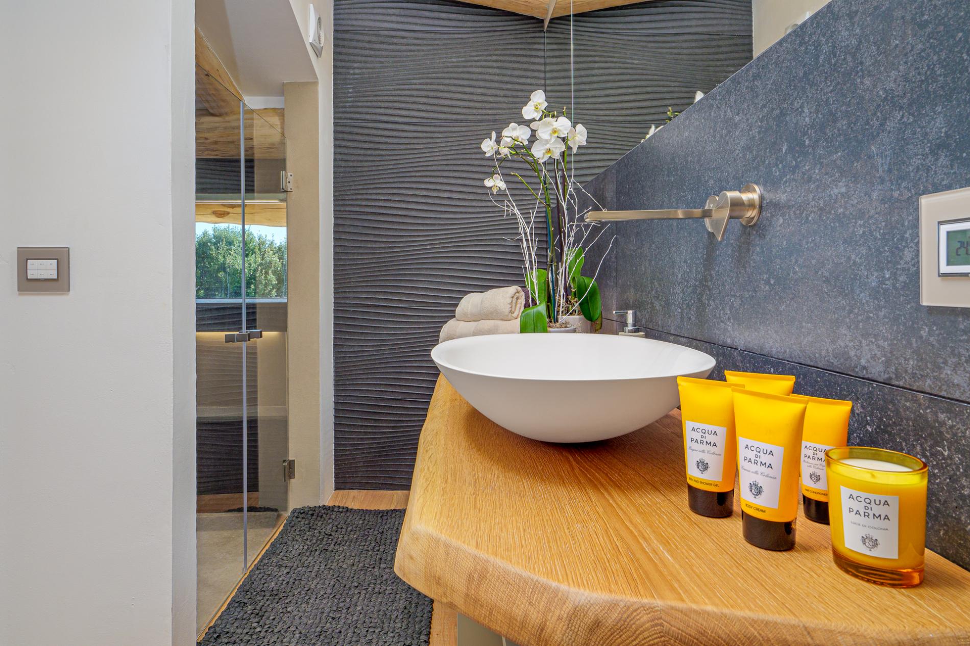 Villa The Dreamer also comes with the latest in home automation technology, including air conditioning, underfloor heating, a personalized audio system in each room, and advanced security with alarm and video surveillance, ensuring guests a comfortable and secure stay.