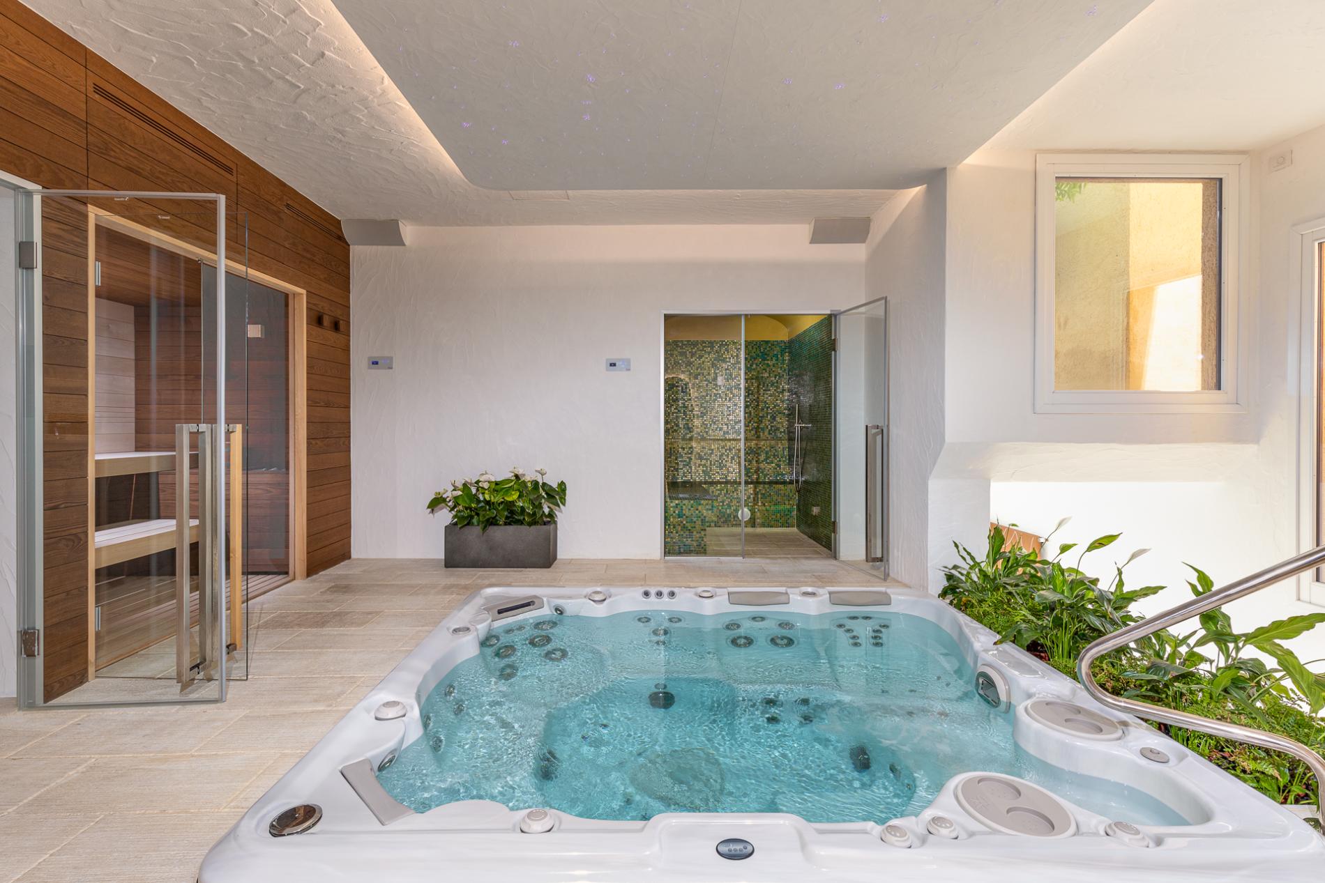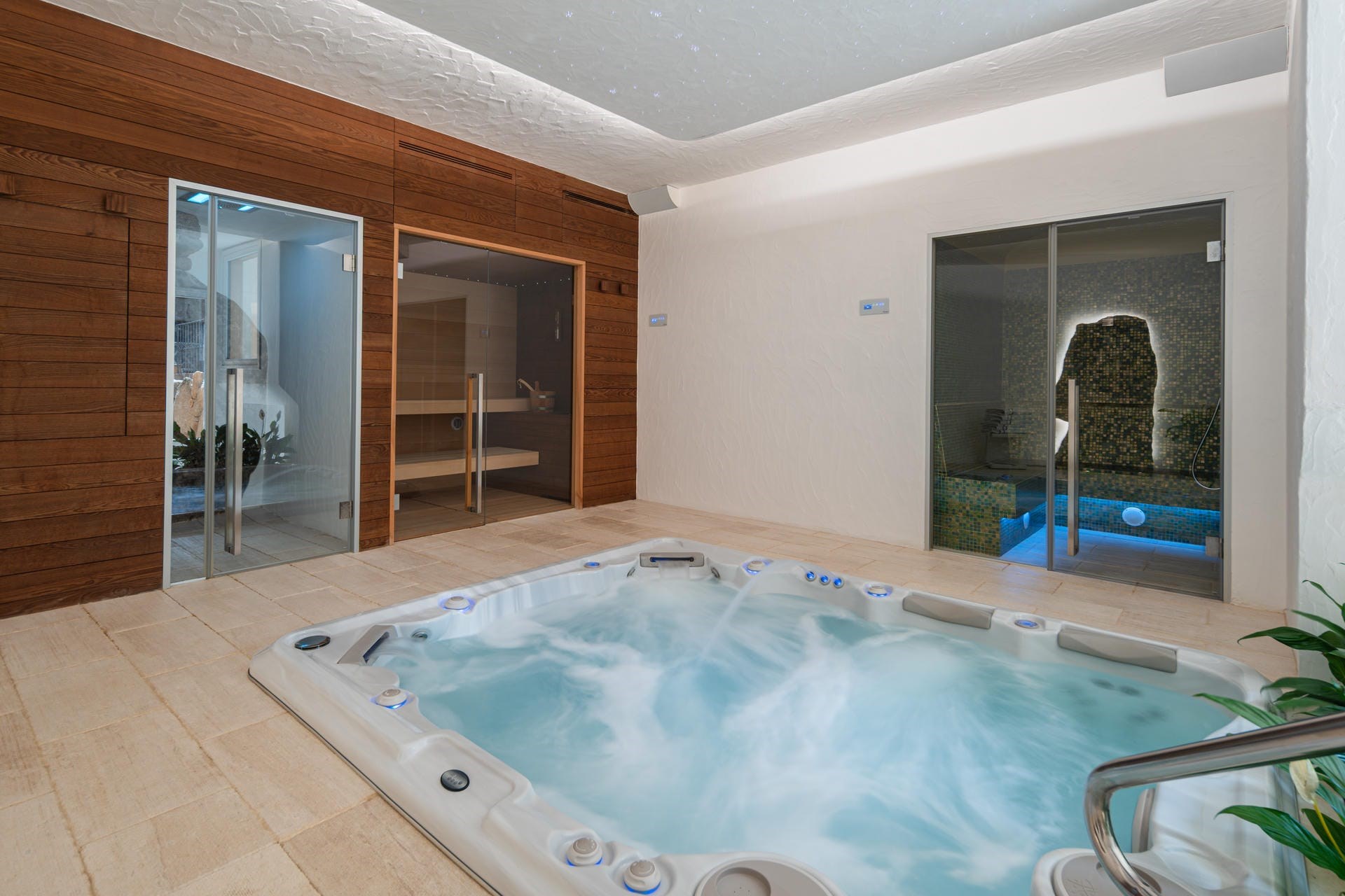 Private Spa with emotional Shower, Bio- Sauna, Steam bath – Fitness Technogym pool.