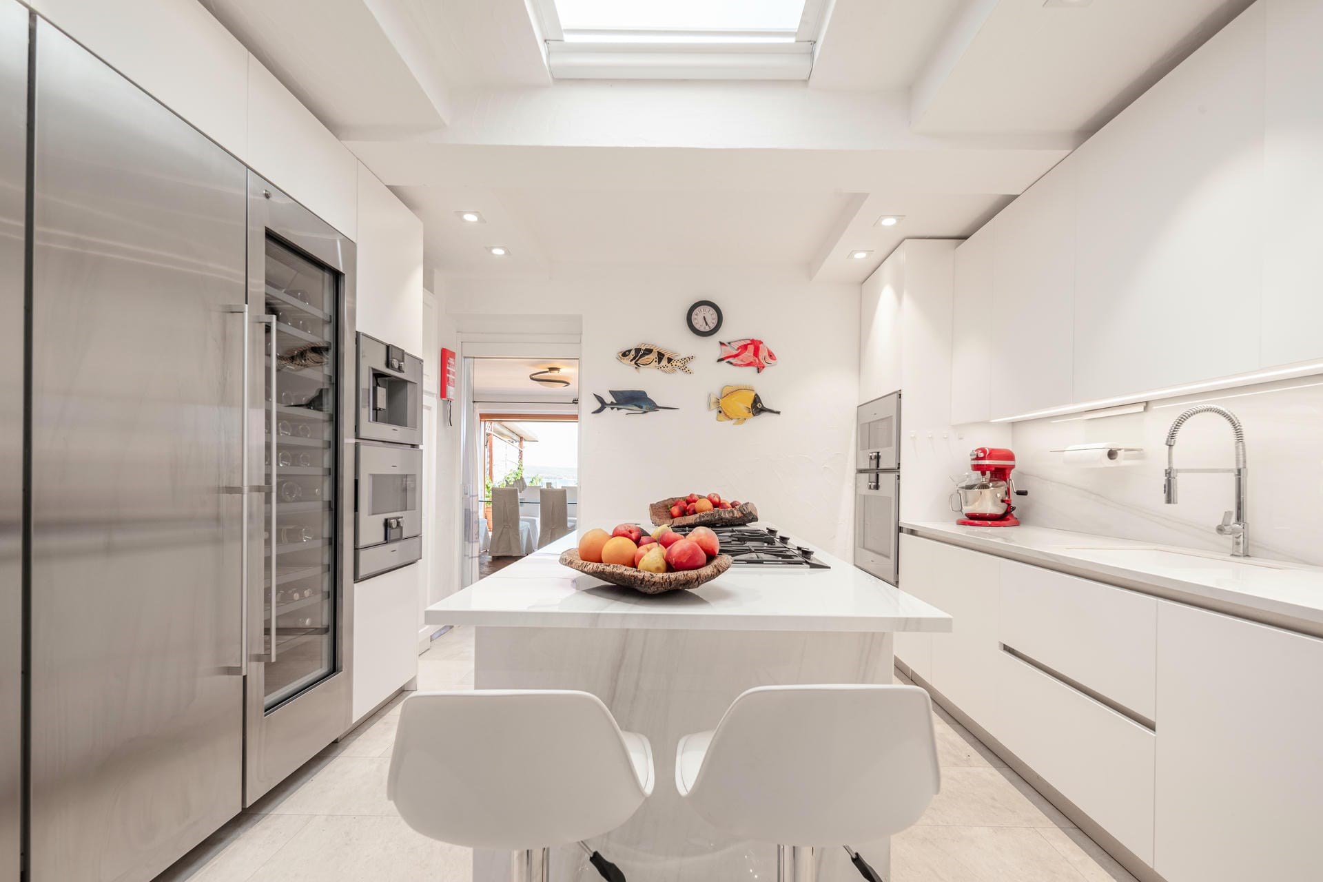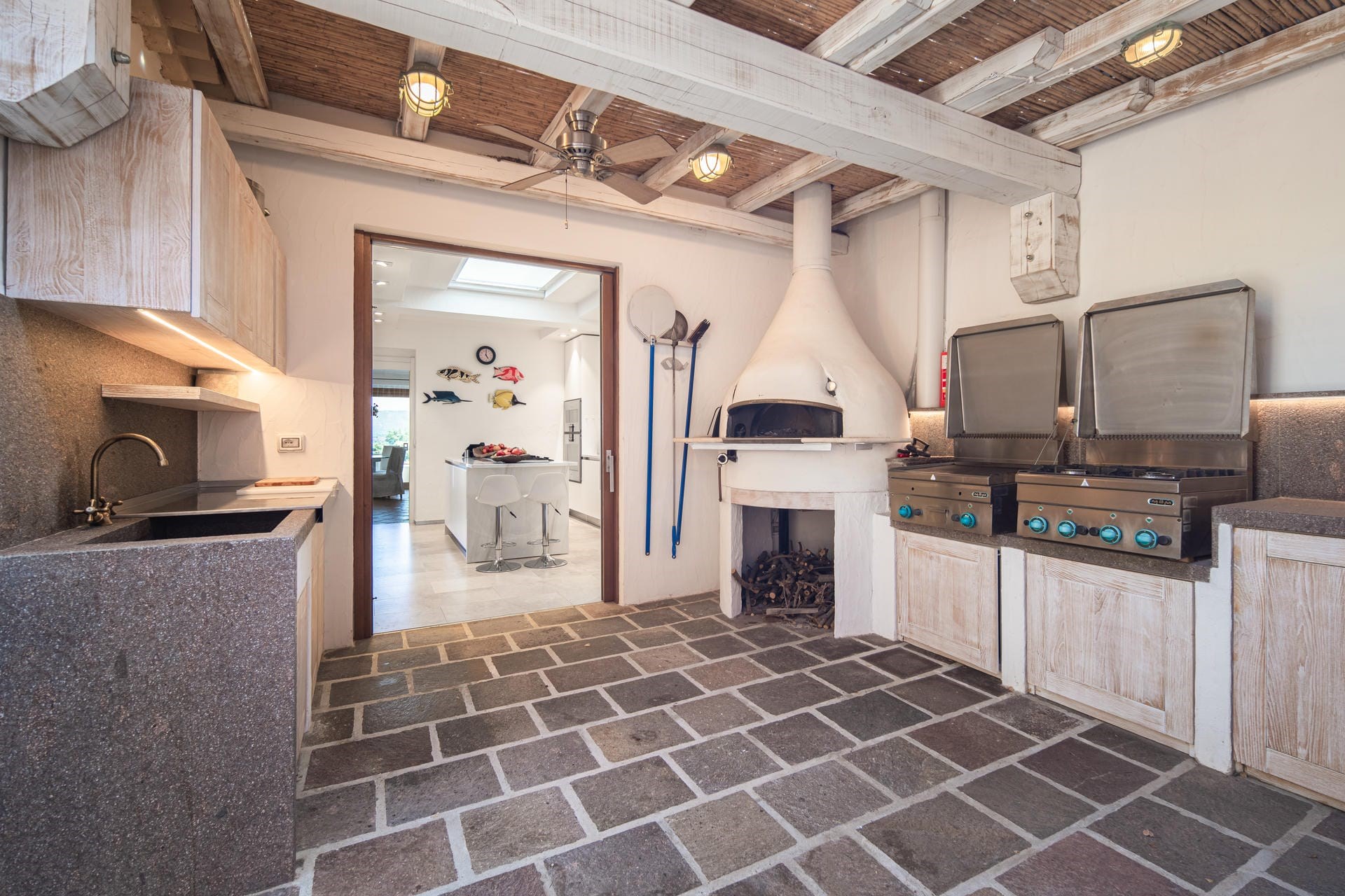 Kitchen with direct exit to outdoors and BBQ in the backyard. Wide sea view veranda with sofas and chairs, and an outdoor table and chairs for ‘Al Fresco’ meals.