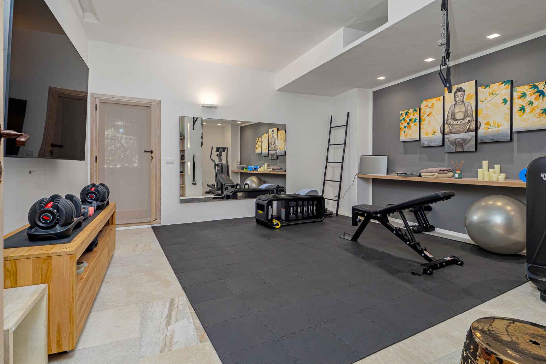 1 gym with Technogym equipment. 1 cinema room.