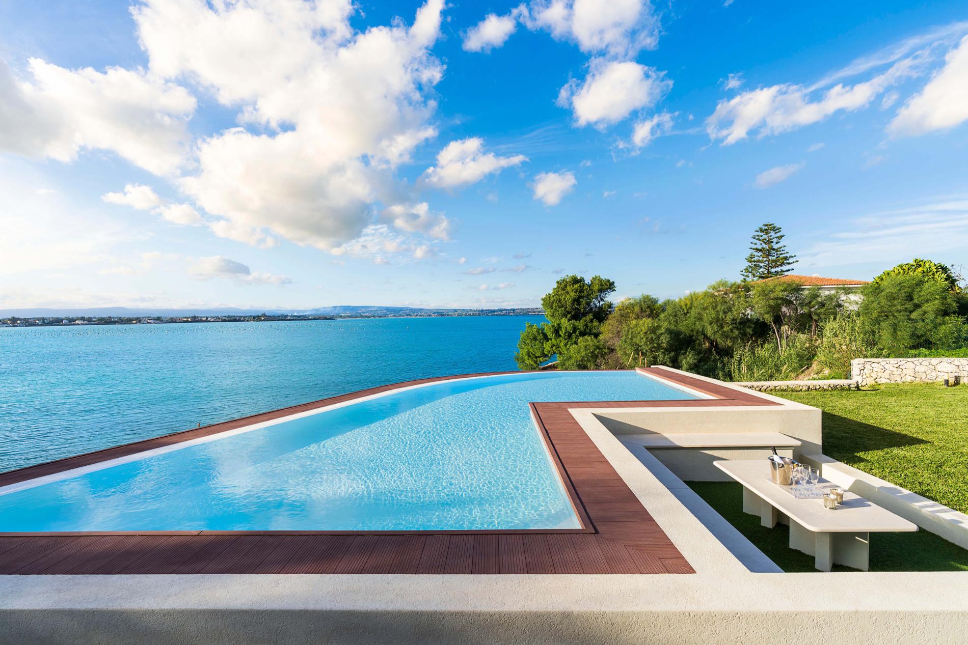 Sicily Villa Matilde is a prestigious seafront 280 m2 villa with private pool and jacuzzi, Terrace and Garden, just a few kilometres away from Ortigia’s old town with 4 bedrooms, sleeps up to 8 and only 50 meter from the beach.