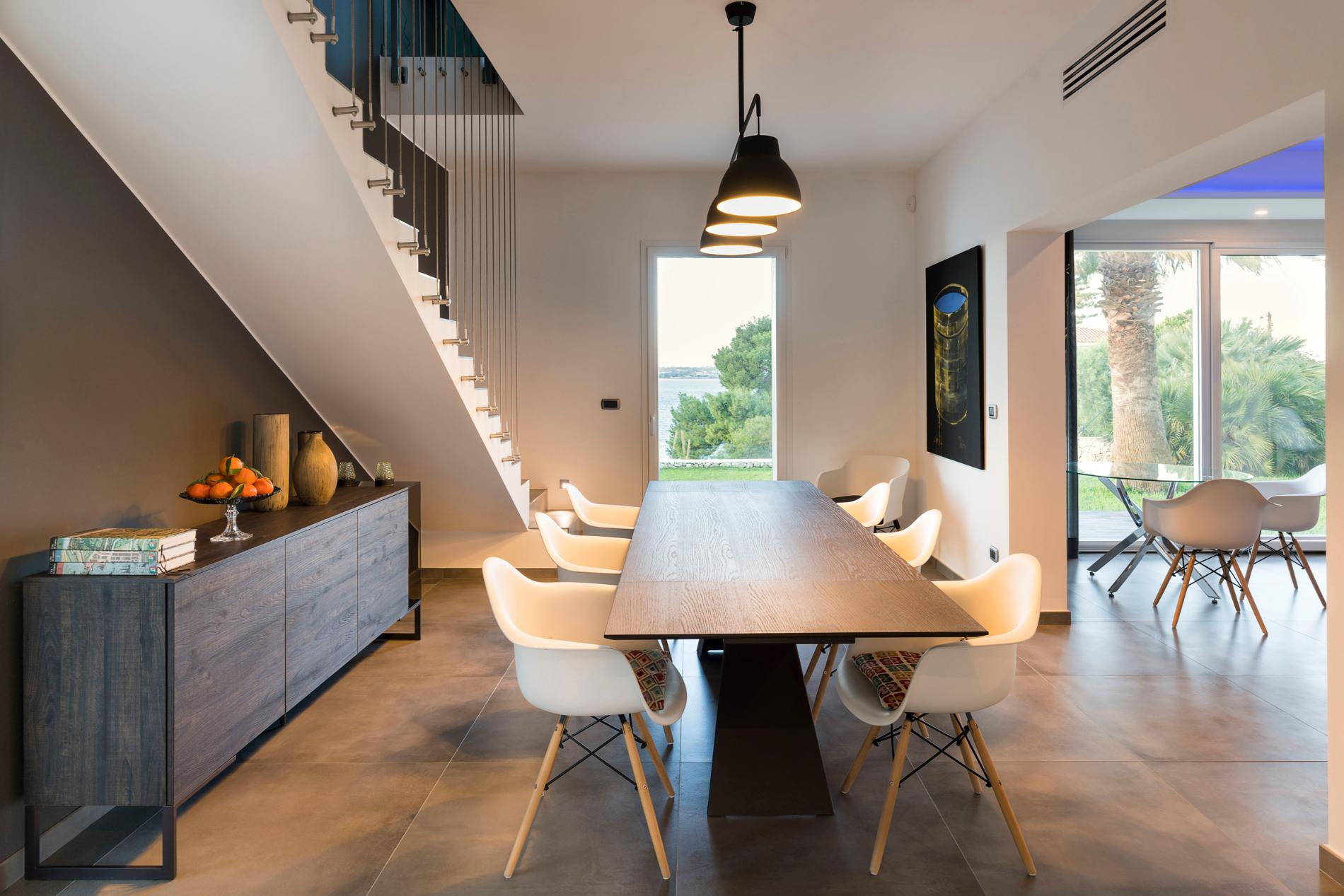 It is situated on the Maddalena peninsula, along one of the most beautiful stretches of coastline of eastern Sicily. Its exclusive infinity pool and spacious terraces offer gorgeous vistas of the Bay of Syracuse. Recently built, this contemporary villa features large, refined interiors with authentic designer furniture and pieces. Its comfortable rooms spread over two floors and include a living area with lounge, dining area, kitchen and a guest bathroom, a study, three double bedrooms with en-suite bathrooms and a master bedroom with en-suite tub and shower.