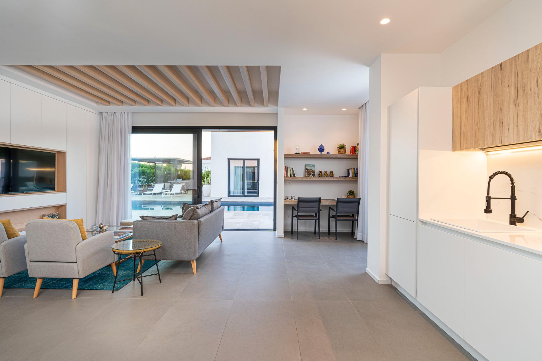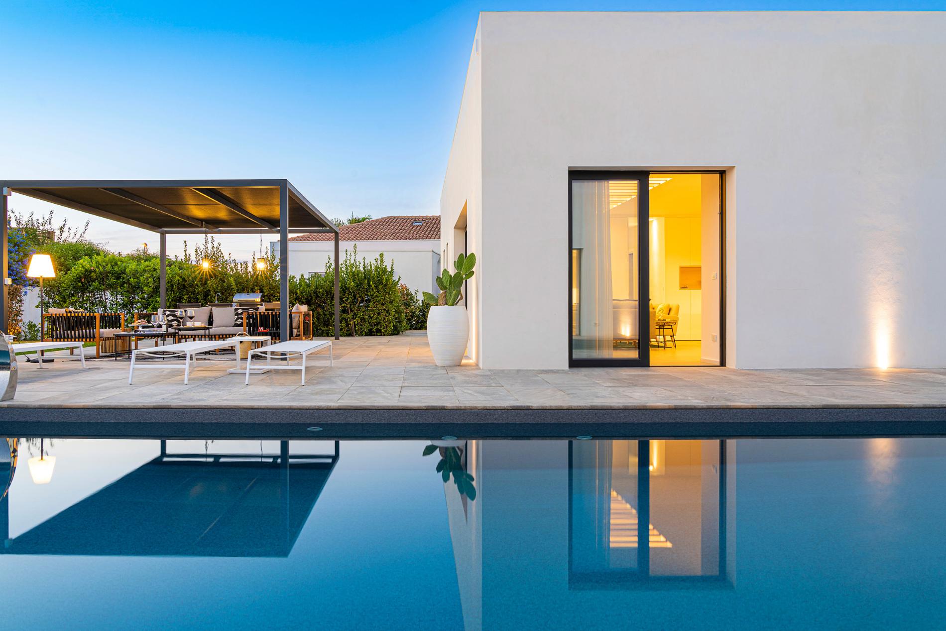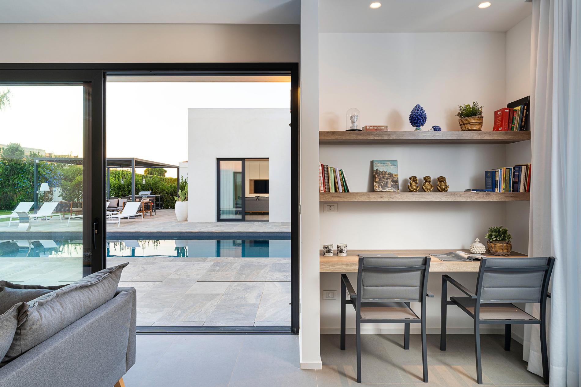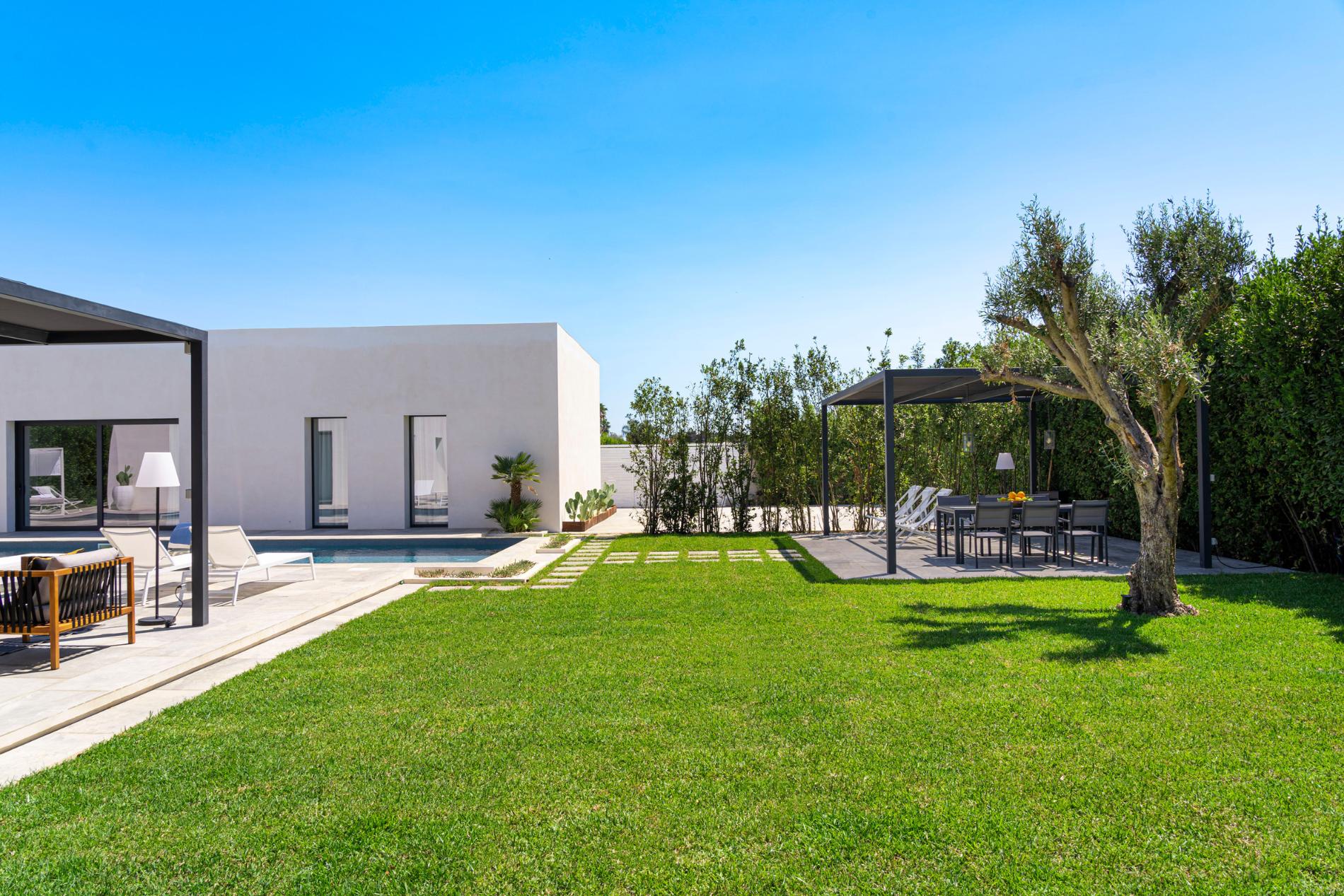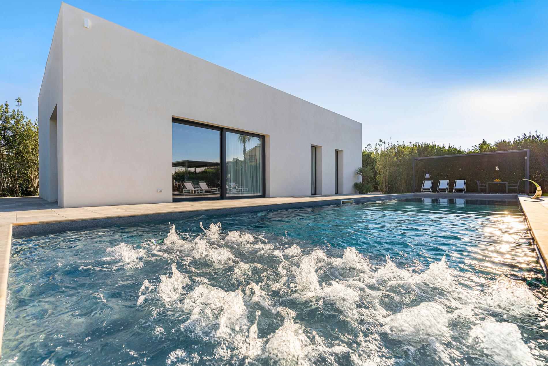 Seaside Villa Basile Syracusa is an exclusive villa with a sandy beach close , private pool in Syracuse and internal villa size of 240 m2 and terrace 200 m2 Set in a quiet residential area with 1000 m2 garden magnificient location on eastern part of Sicily, this villa features relaxing outdoor spaces and a beautiful salt water pool with whirlpool. It consists of two adjacent units and offers welcoming, well-proportioned interiors, which can comfortably accommodate up to twelve people.