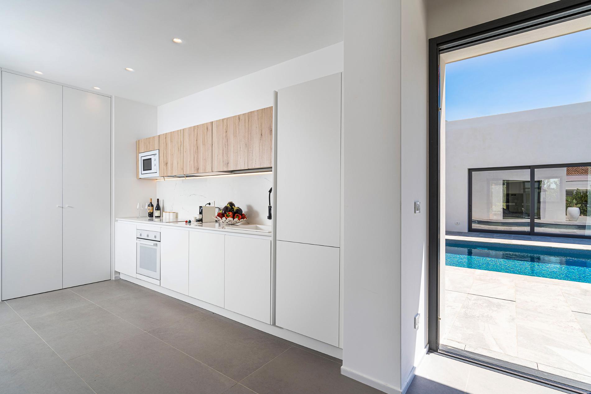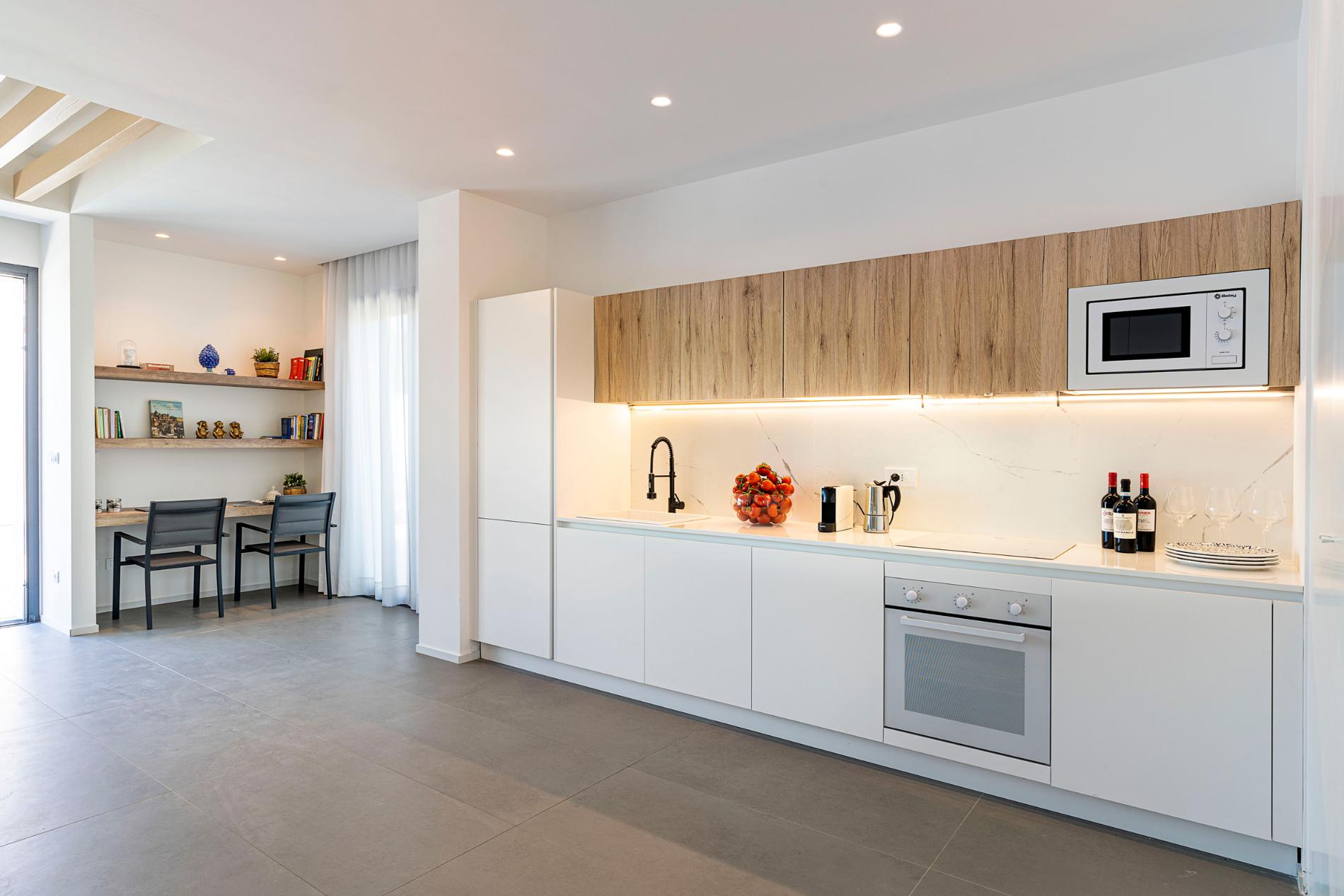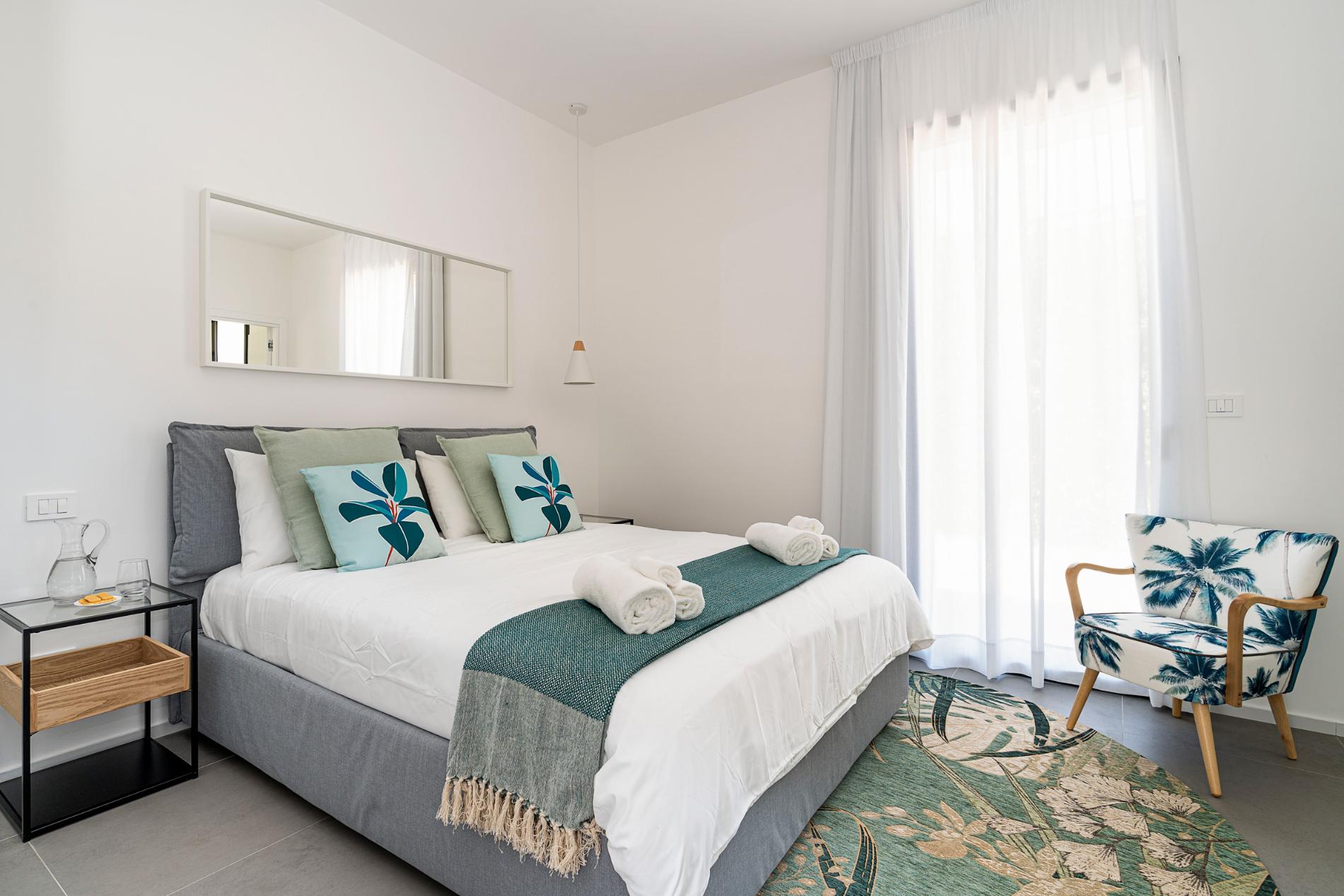 VILLA B: Ground Floor: living/dining room, kitchen, 1 double bedroom (bed cm 160 x 200) with en-suite shower, 2 double bedrooms (beds cm 160 x 200), 1 bathroom with shower.