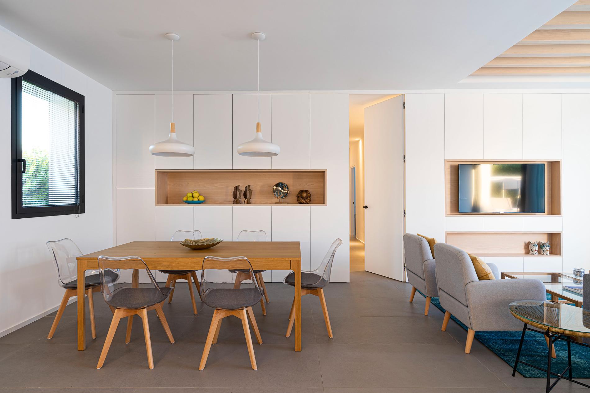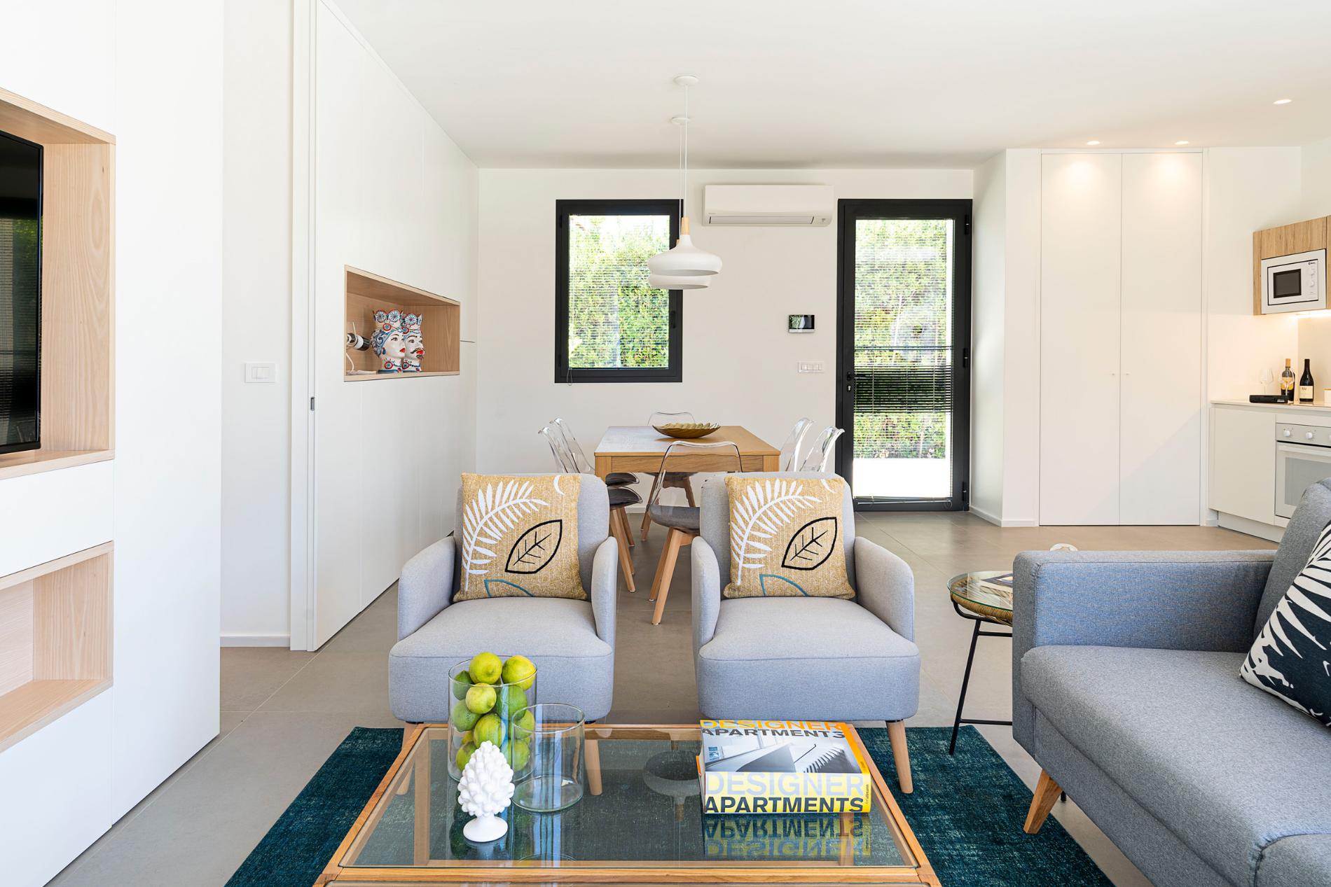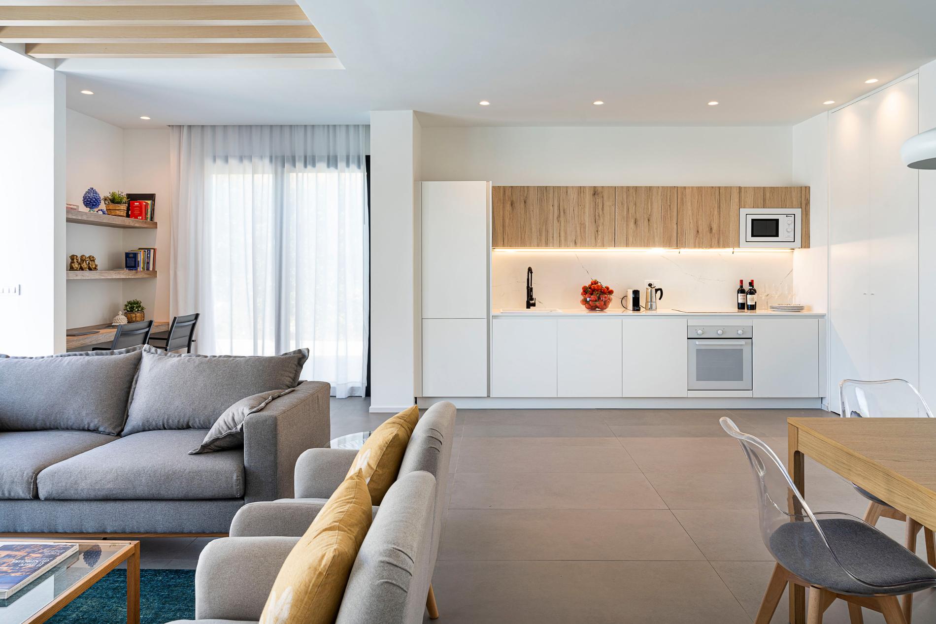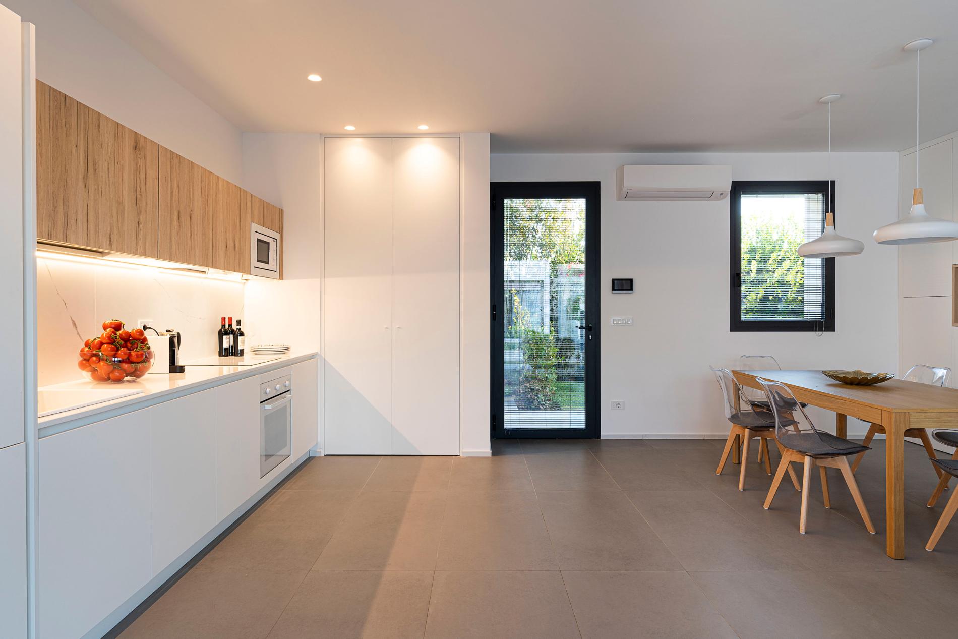 Stylishly furnished with a contemporary touch, each housing unit includes a living area with dining room and kitchen, a double bedroom with en-suite bathroom, two further double bedrooms and a bathroom with shower.