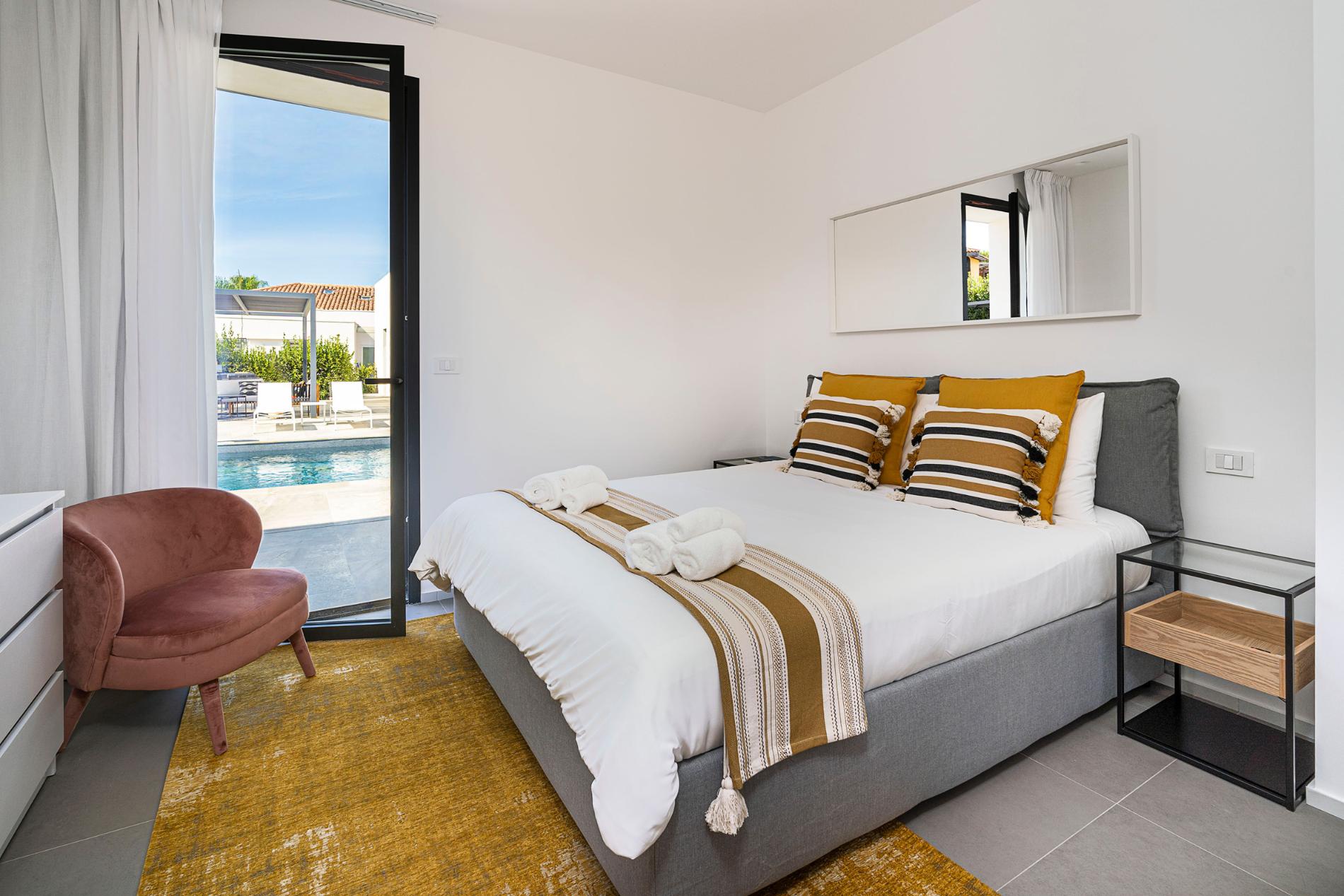 VILLA A: Ground Floor: living/dining room, kitchen, 1 double bedroom (bed cm 160 x 200) with en-suite shower, 2 double bedrooms (beds cm 160 x 200) , 1 bathroom with shower.