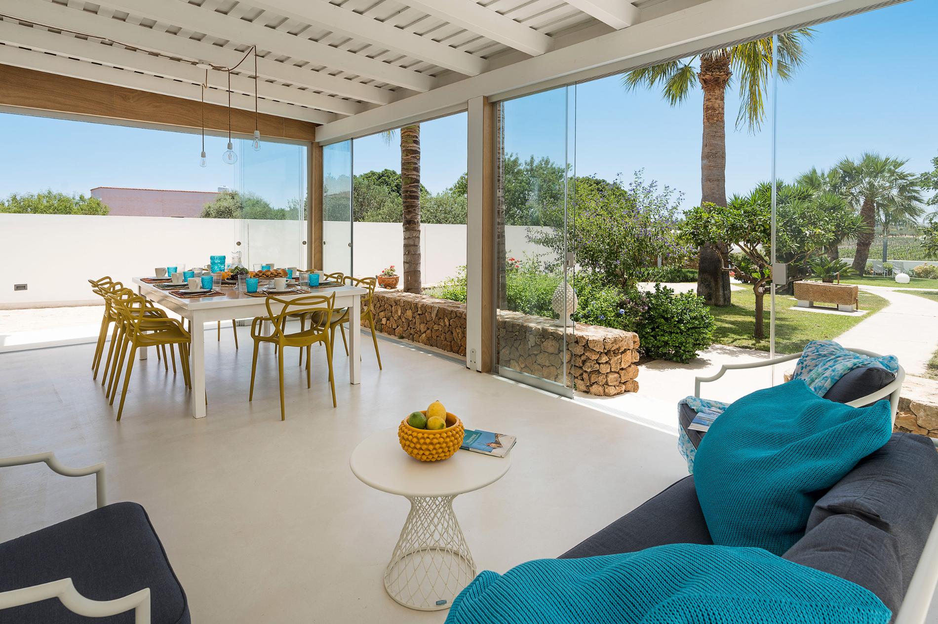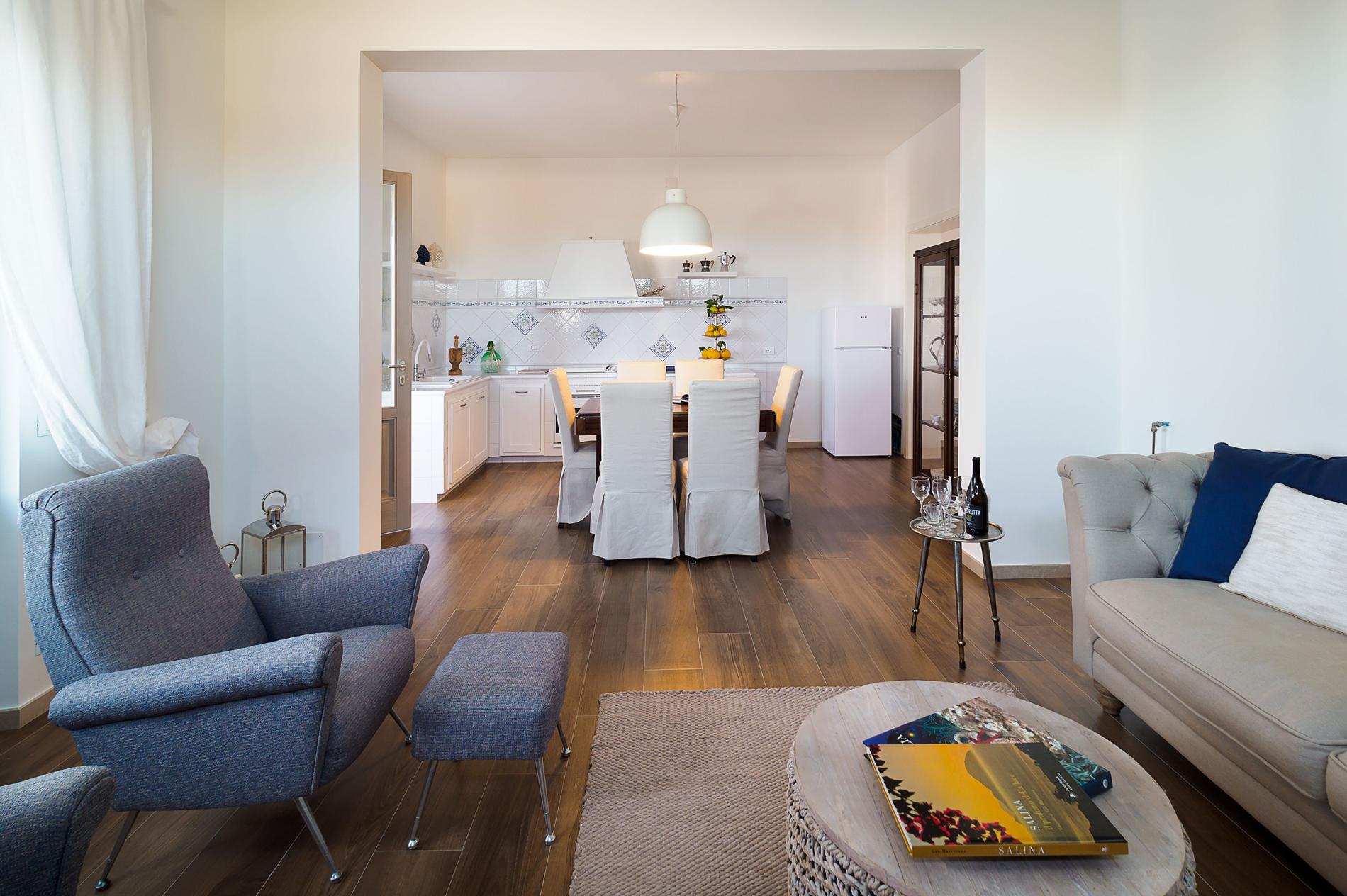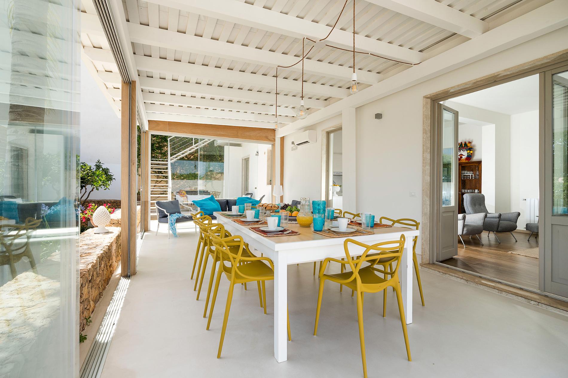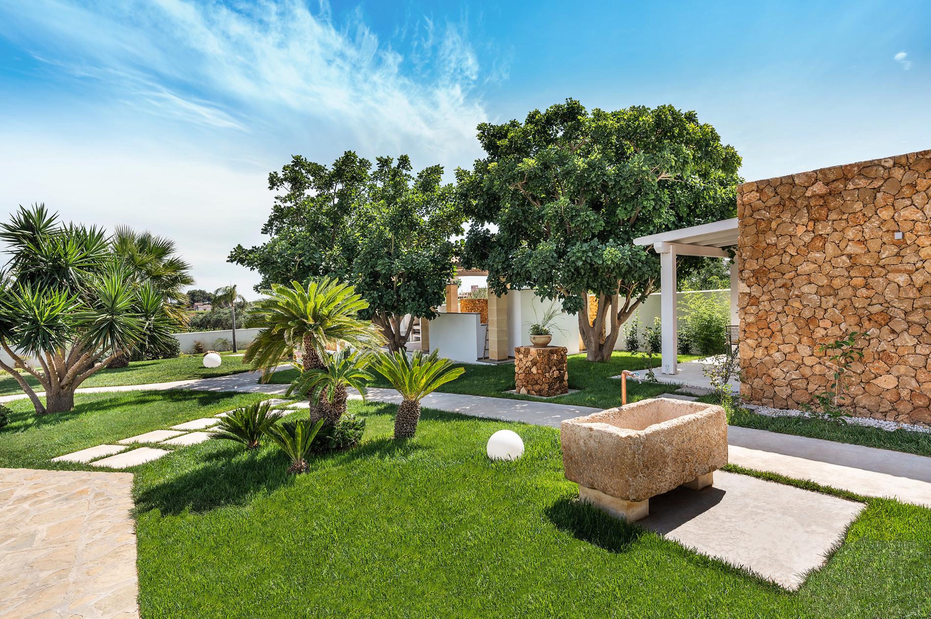 Consisting of a main building and two annexes, the villa boasts large, comfortable rooms furnished in a refined contemporary style equipped with all mod cons, such as air conditioning, Wi-Fi, Sat-TV, wireless home sound system and washing machine. The main house includes the living area, consisting of a lounge, a living/dining room, a kitchen and a guest bathroom, and three bedrooms, all with en-suite bathroom and one of which has a king size bed. The two annexes house the fourth and fifth bedroom, both with en-suite bathroom and king size bed.