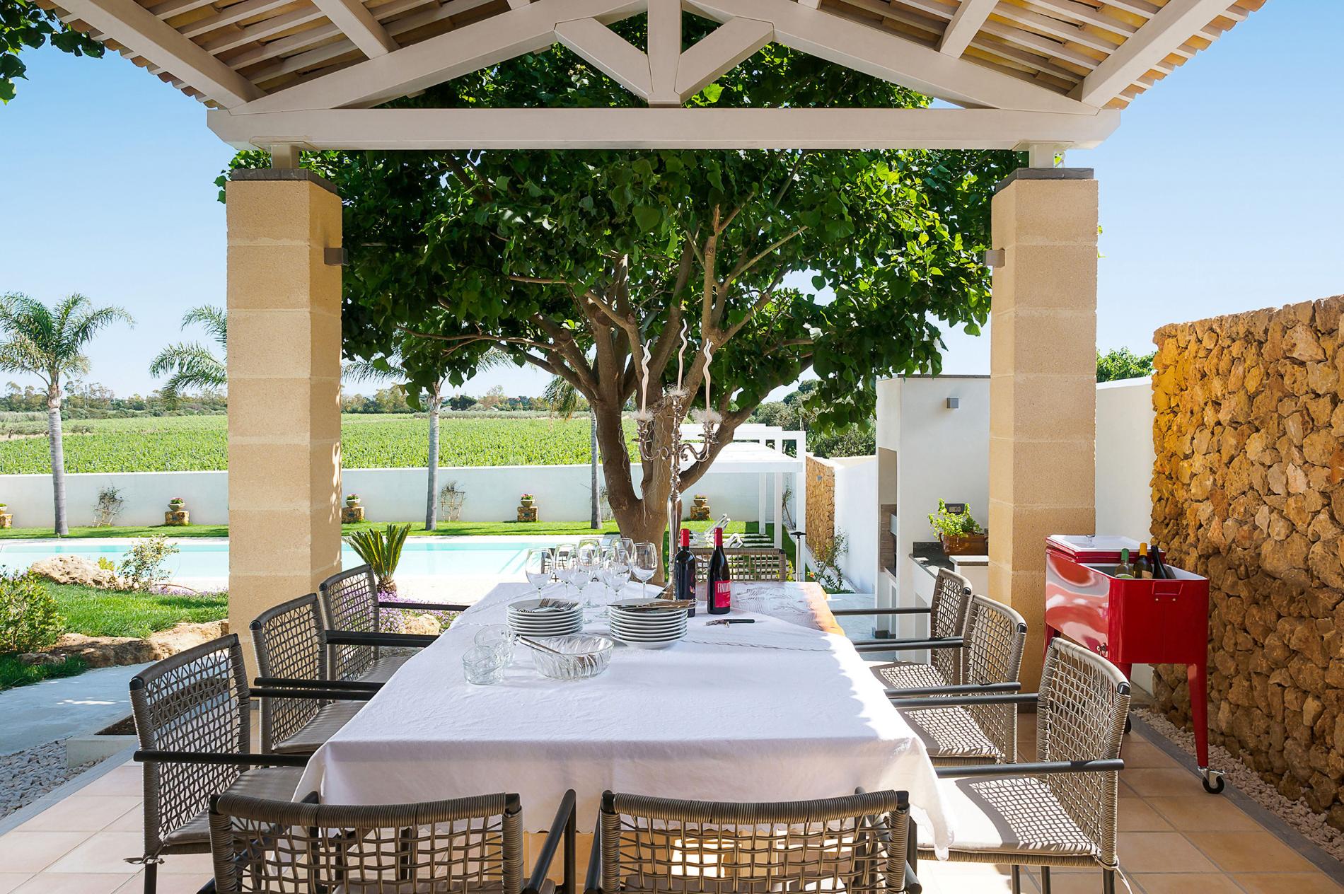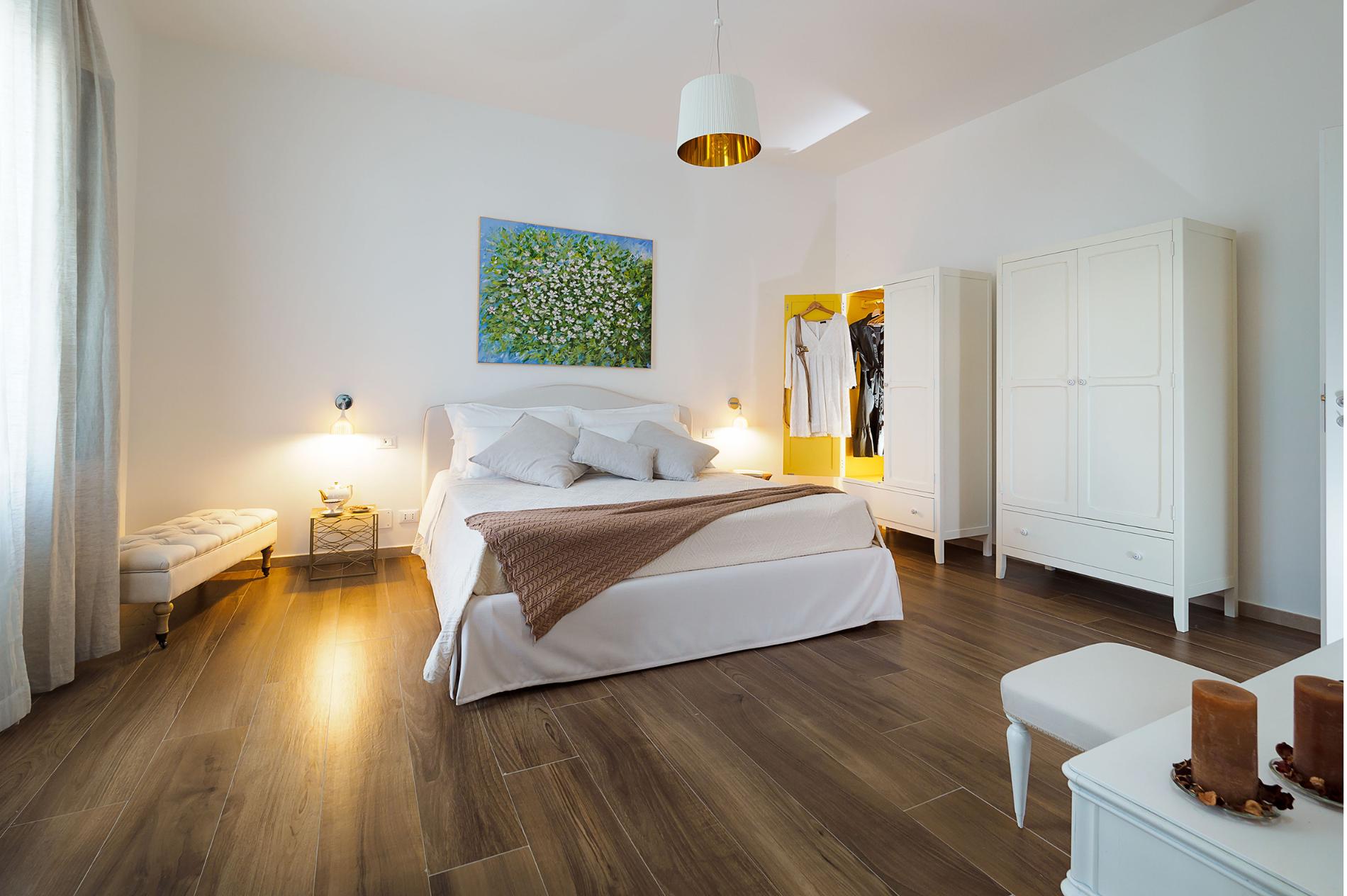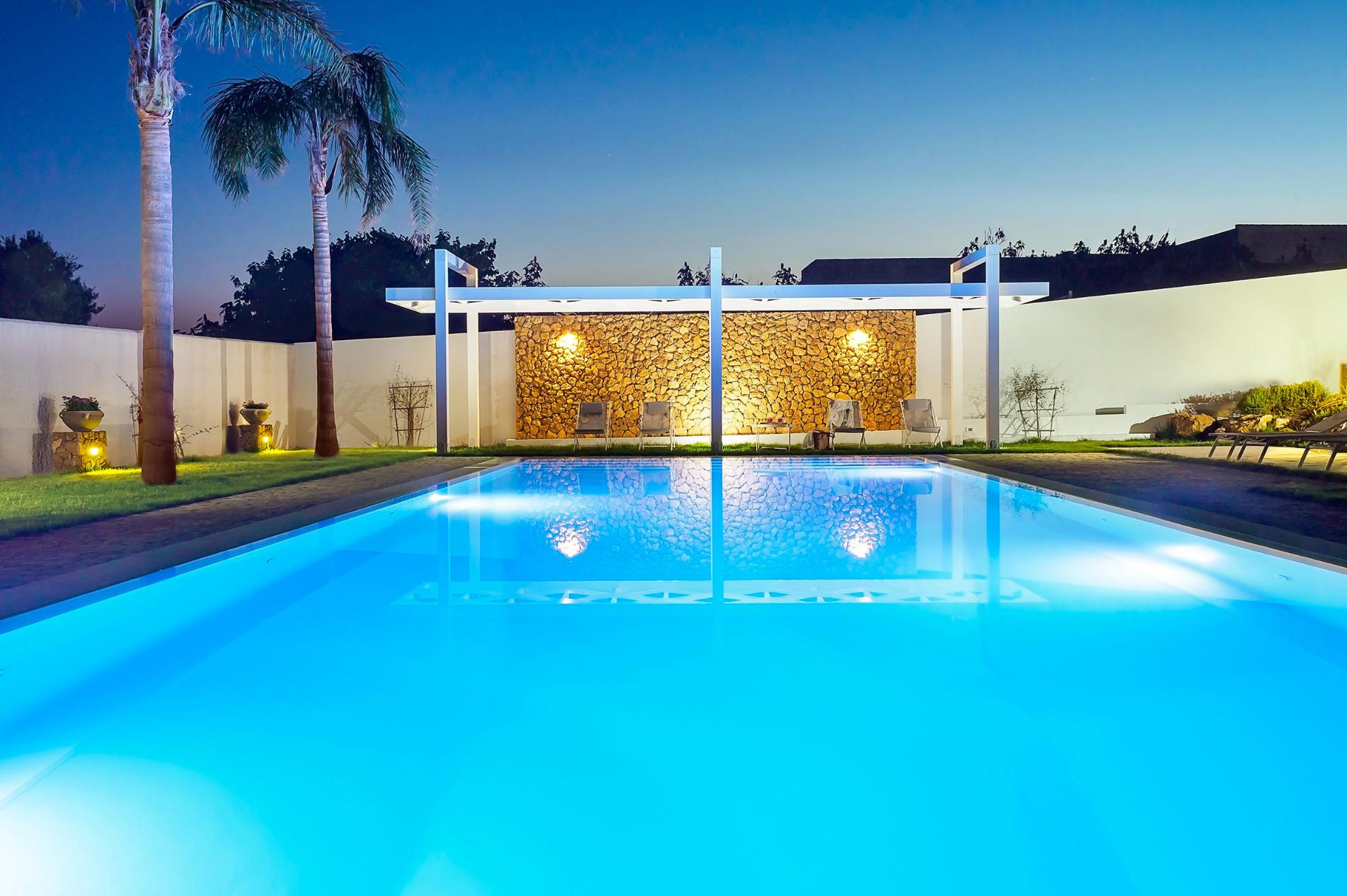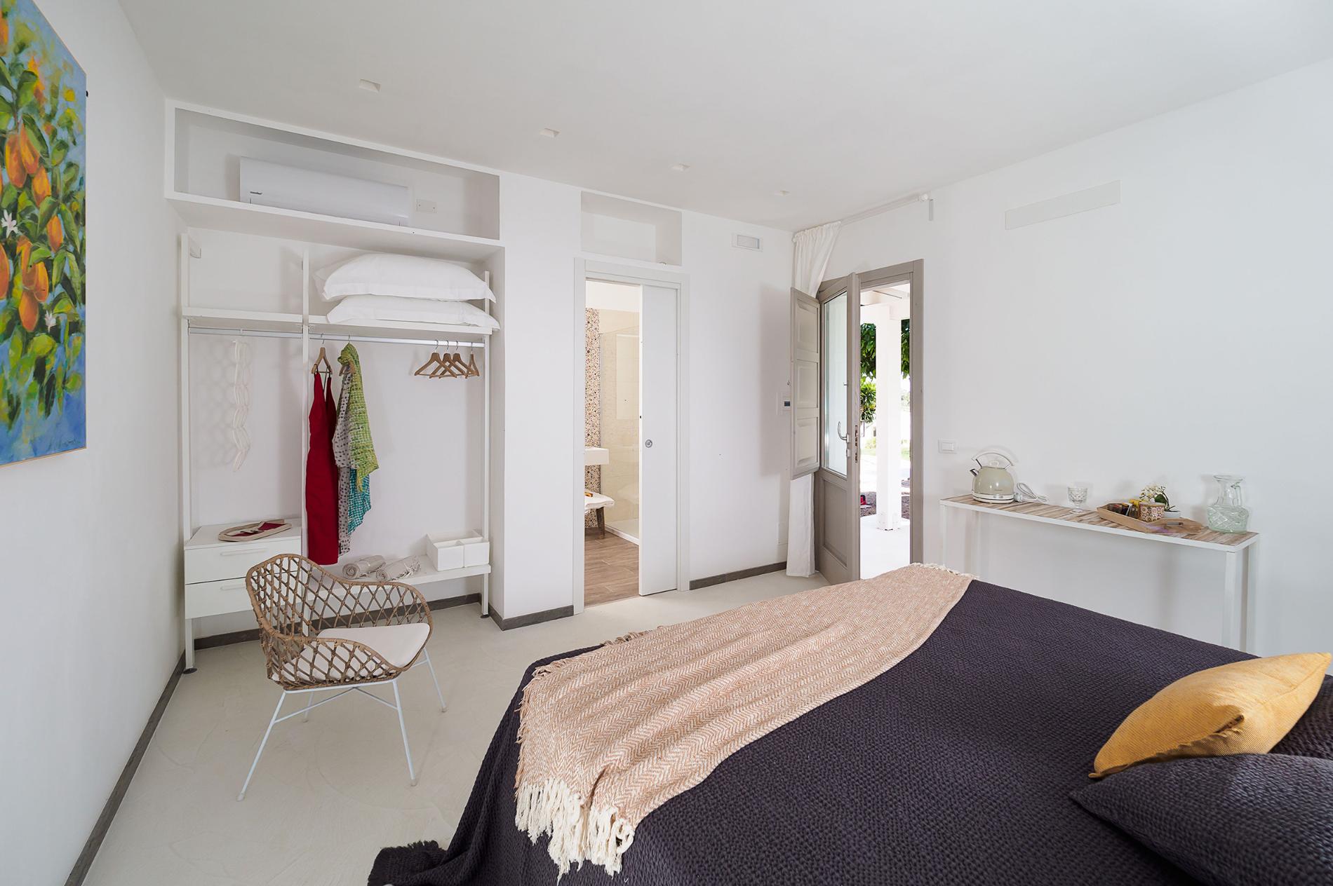 Consisting of a main building and two annexes, the villa boasts large, comfortable rooms furnished in a refined contemporary style equipped with all mod cons, such as air conditioning, Wi-Fi, Sat-TV, wireless home sound system and washing machine. The main house includes the living area, consisting of a lounge, a living/dining room, a kitchen and a guest bathroom, and three bedrooms, all with en-suite bathroom and one of which has a king size bed. The two annexes house the fourth and fifth bedroom, both with en-suite bathroom and king size bed.