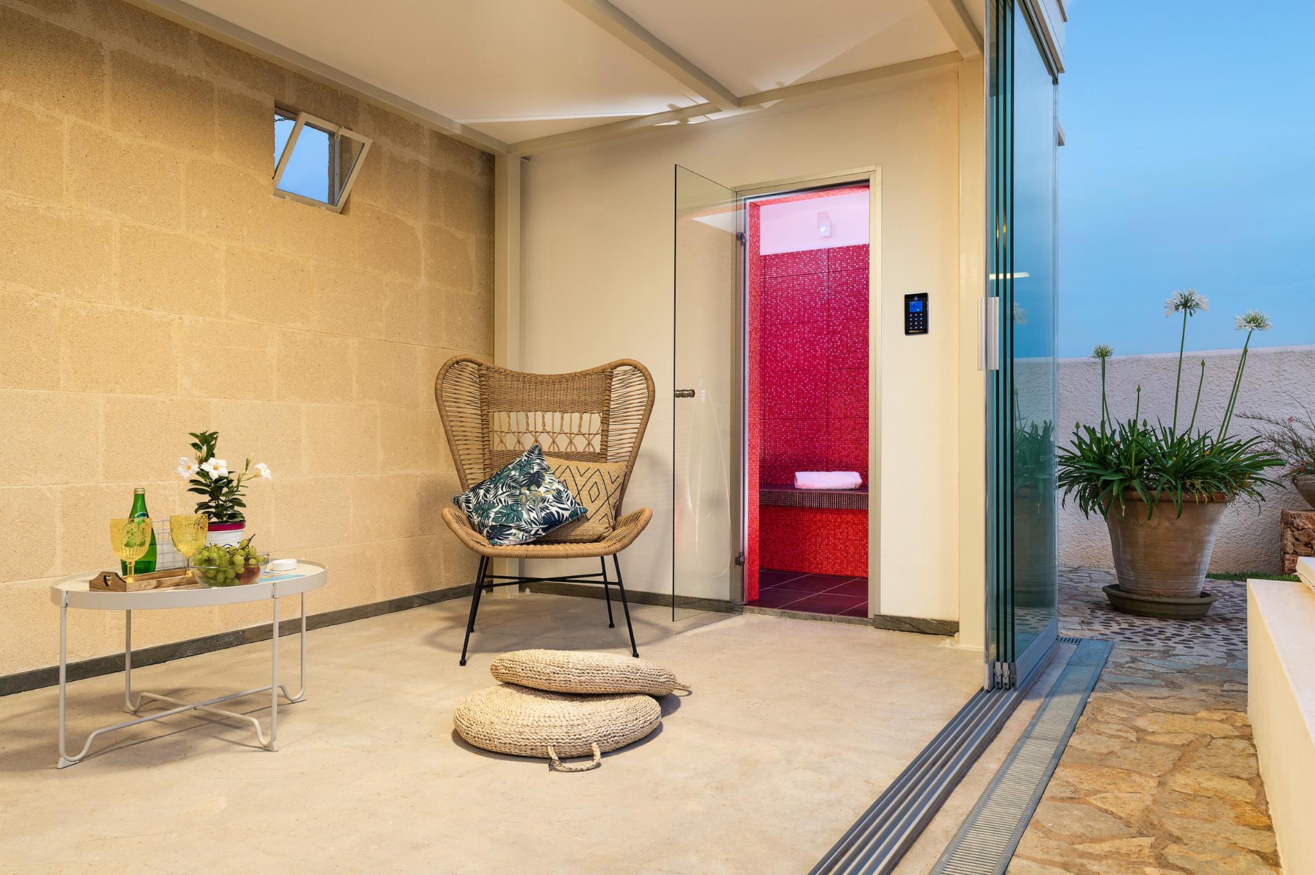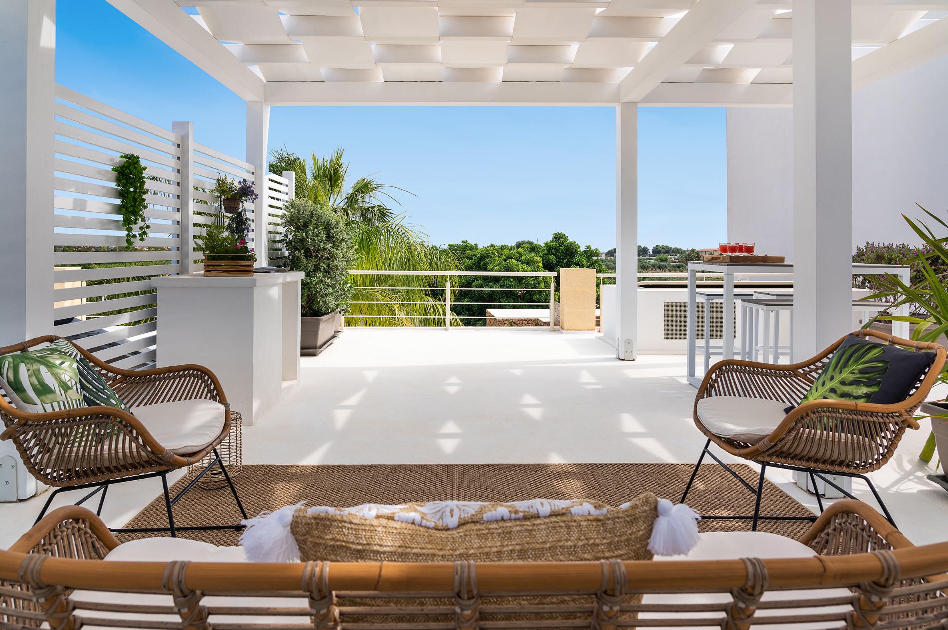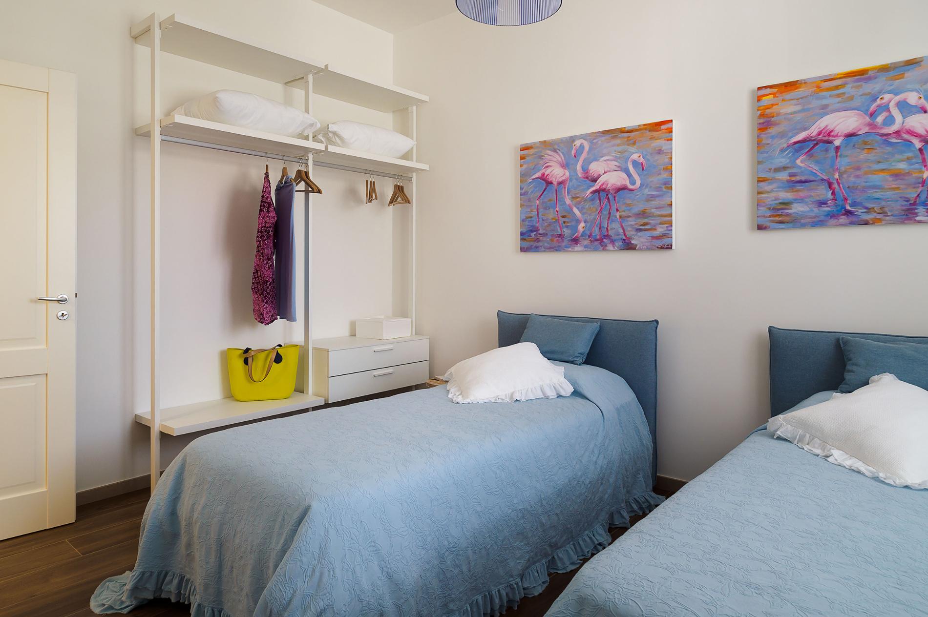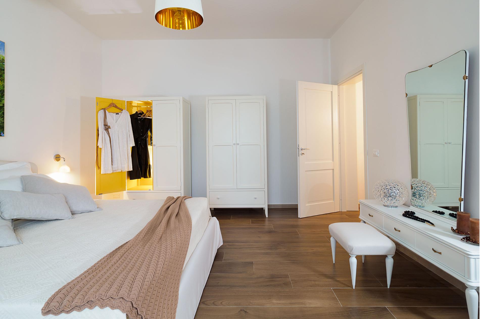 Consisting of a main building and two annexes, the villa boasts large, comfortable rooms furnished in a refined contemporary style equipped with all mod cons, such as air conditioning, Wi-Fi, Sat-TV, wireless home sound system and washing machine. The main house includes the living area, consisting of a lounge, a living/dining room, a kitchen and a guest bathroom, and three bedrooms, all with en-suite bathroom and one of which has a king size bed. The two annexes house the fourth and fifth bedroom, both with en-suite bathroom and king size bed.