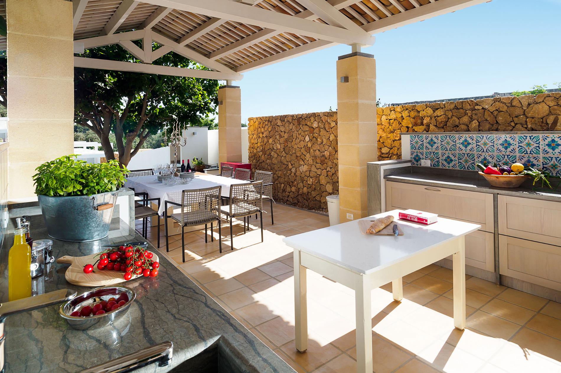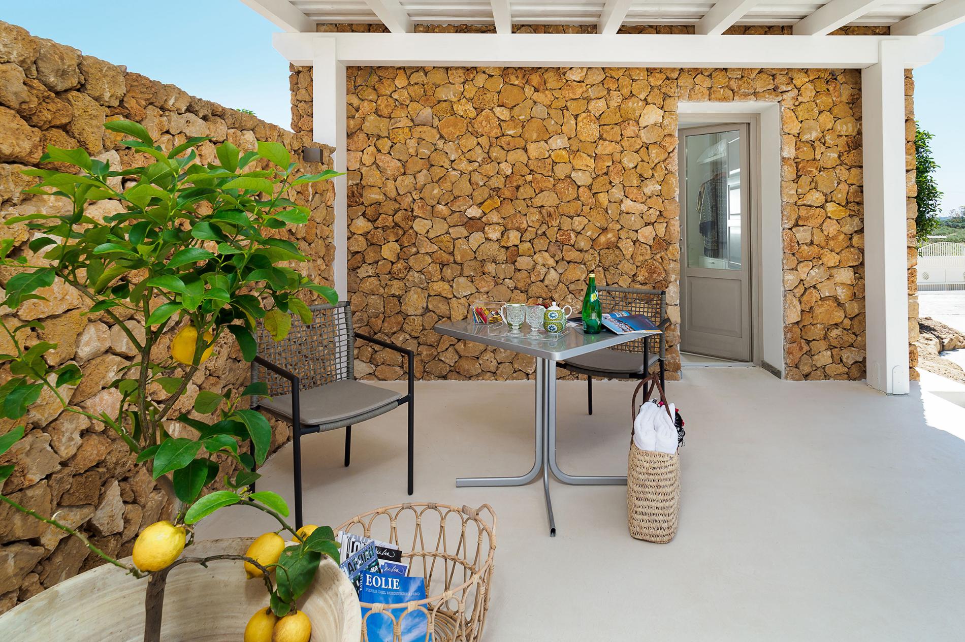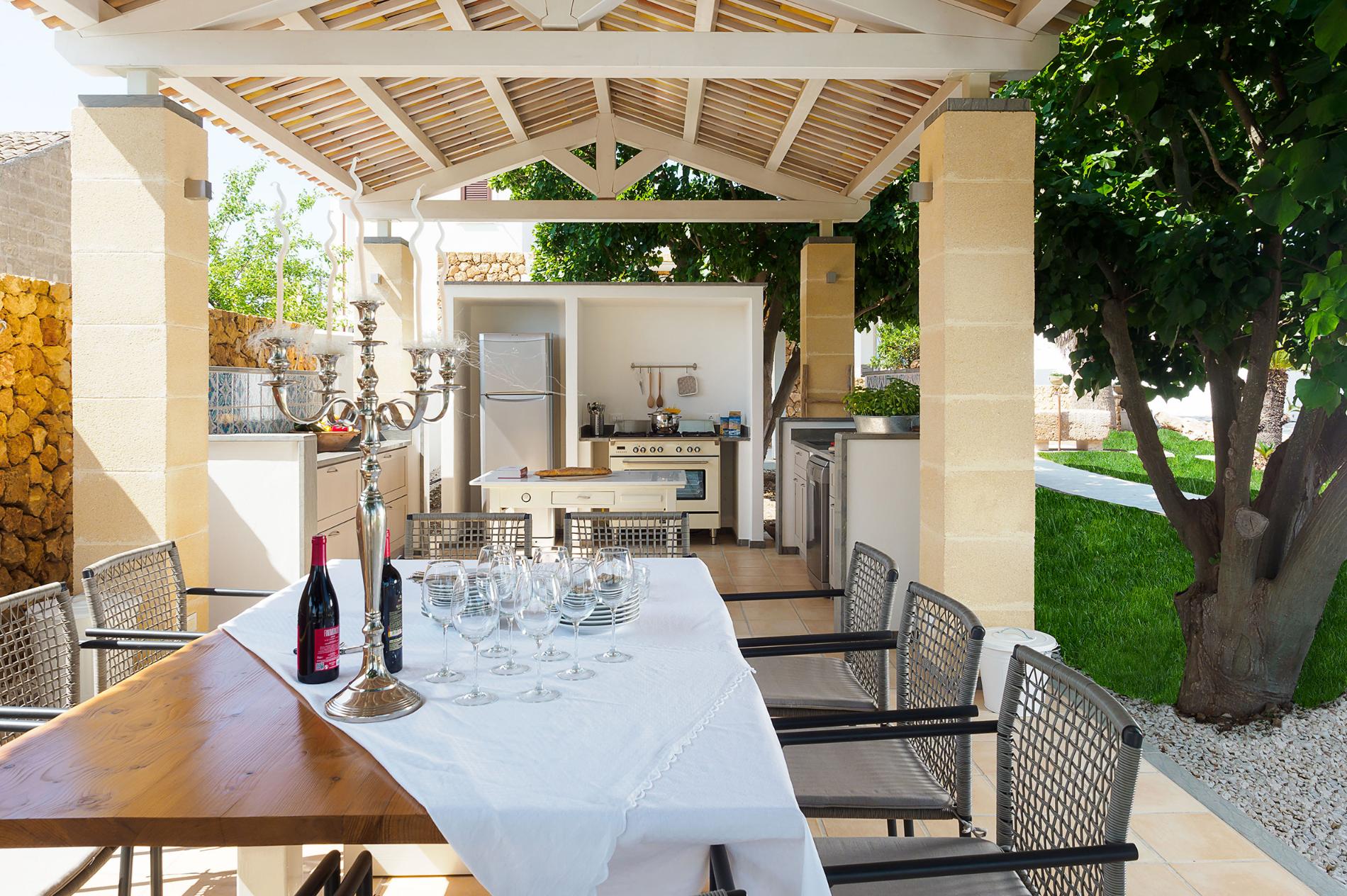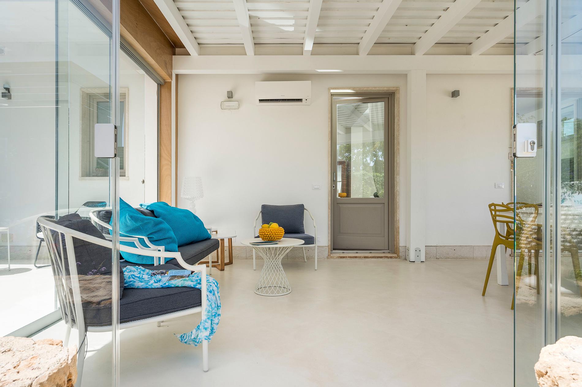 Surrounded by a lovely garden with lawn, ornamental and aromatic plants, Pietra del Sole offers a large saltwater infinity pool (chlorine-free) together with a Turkish bath, a fitness area and a bathroom with shower, a veranda equipped with a dining area and an external kitchen (cooking corner, oven, fridge, dishwasher and bbq).