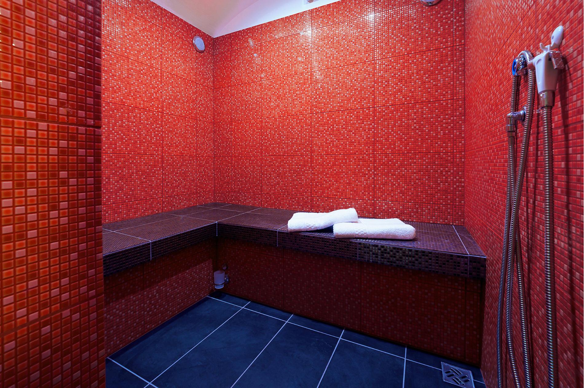 Veranda, terraces, garden, covered terrace with kitchen, bbq and dining area, 1 bathroom with shower, swimming pool, sun terrace, fitness area, Turkish bath.