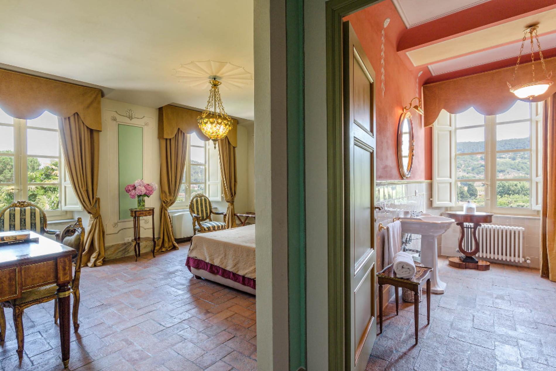 Villa Villa Coselli Lucca, located under Monte Pisano, is a historic 19th-century villa set in an estate of olive trees, gardens and hills. The villa was built as a summer residence of the Nobel family, noble merchants of the seventeenth century. The elegant and charming villa offers the possibility to accommodate up to 24 people and also has a private chapel and an ancient oil mill, with a garden from which you can enjoy wonderful views of the valley and the city of Lucca.