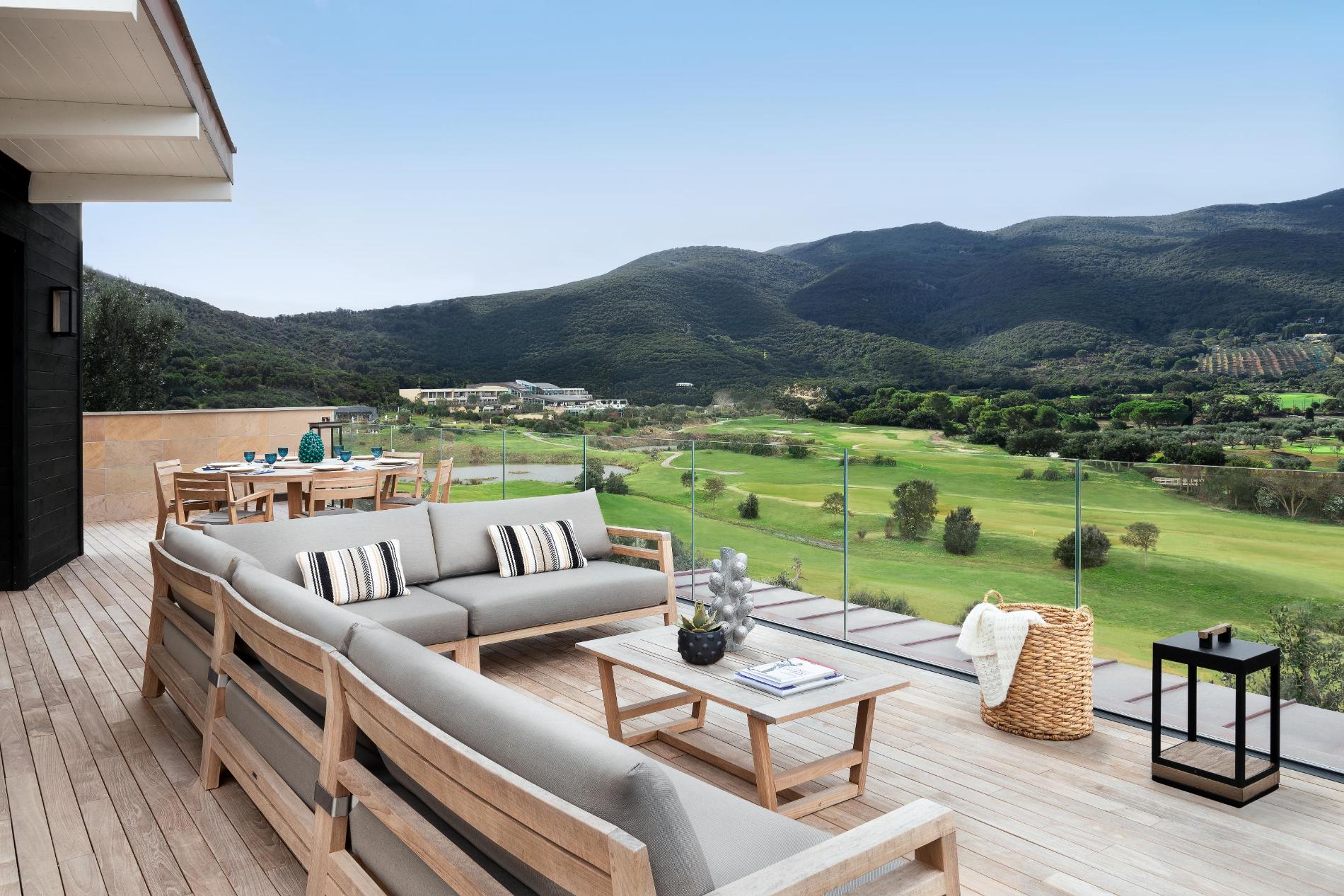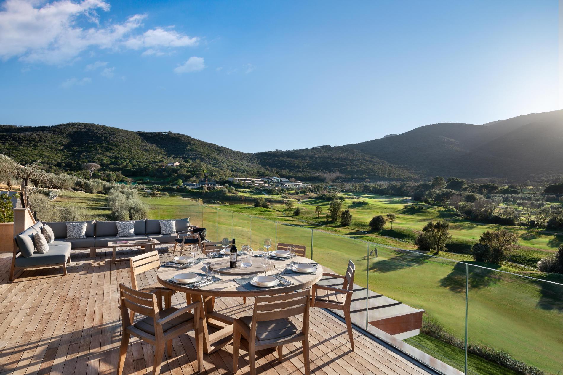 The 5-star design hotel organizes tailor-made private or group activities such as wine tasting, cooking classes, boat excursions, horse riding and bike tours. The resort also offers real estate opportunities through Golf Villas, featuring newly built luxury villas for sale on the hills overlooking the course, the sea and the lagoon.