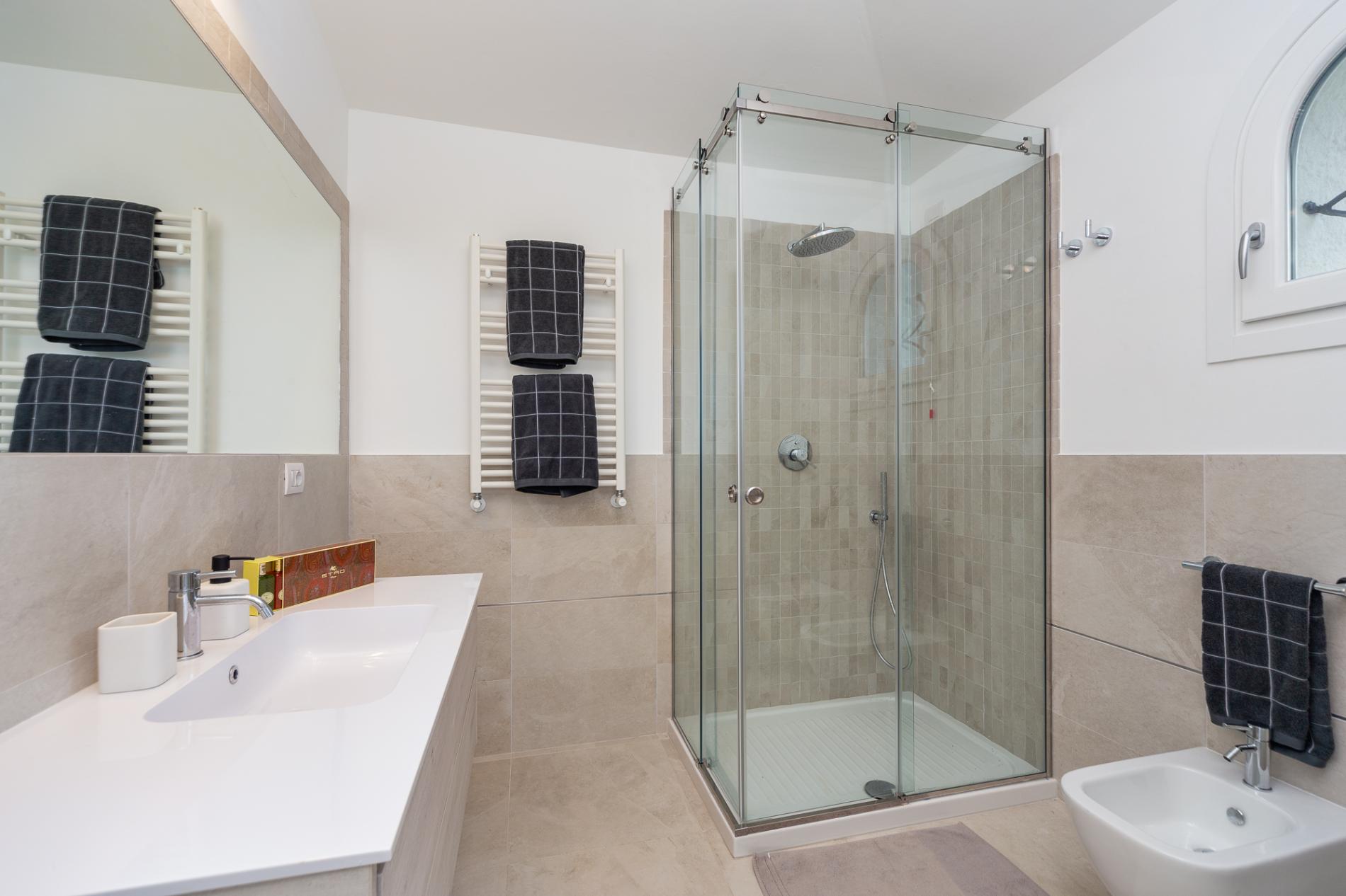 Bedroom 4: Bedroom with a queen-size bed (can be converted to two single beds), A/C and en-suite bathroom with shower, vanity and WC. 2 guests maximum.